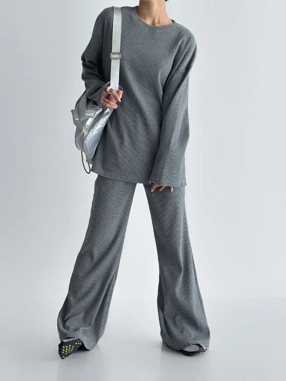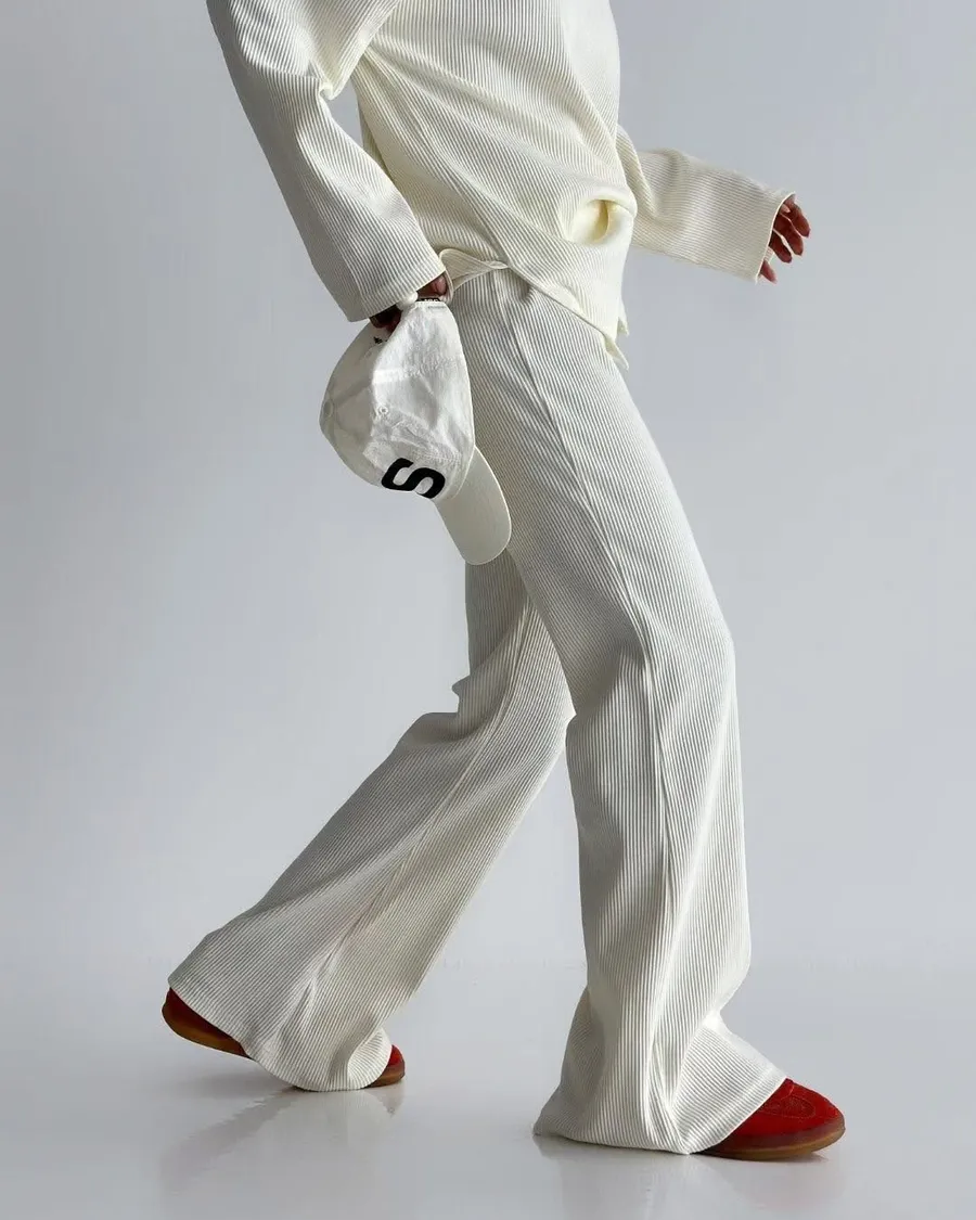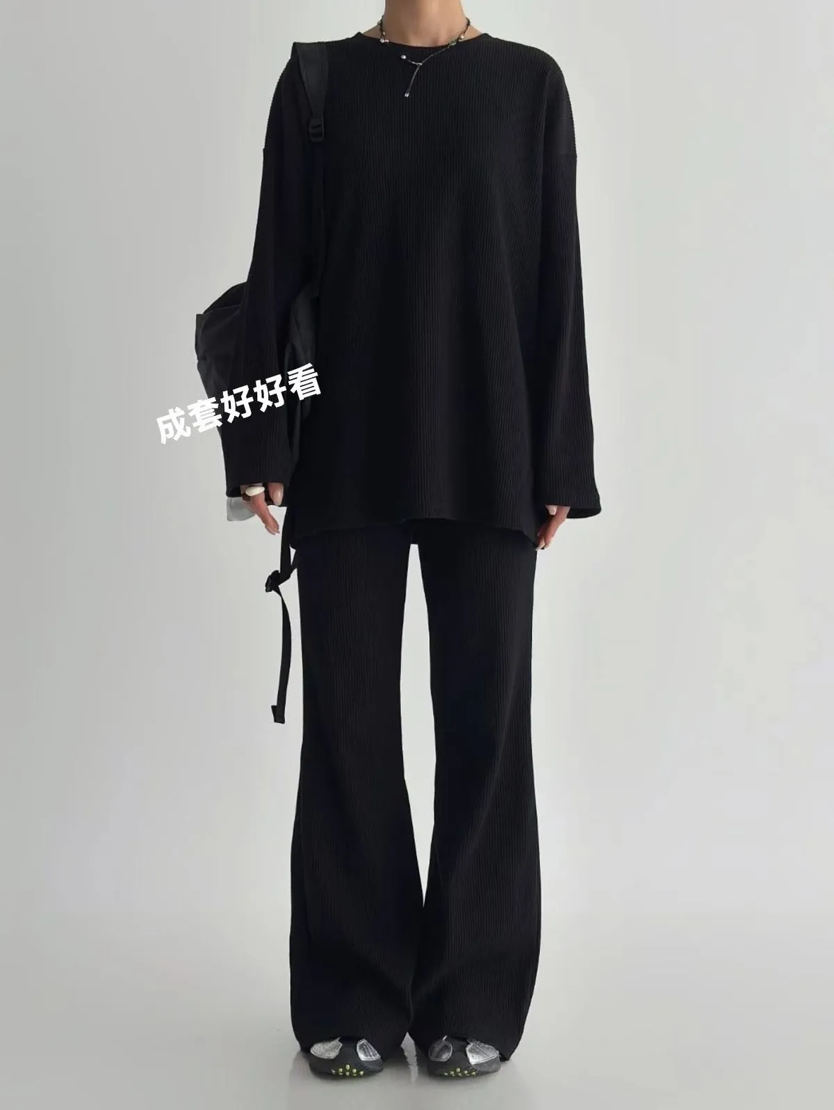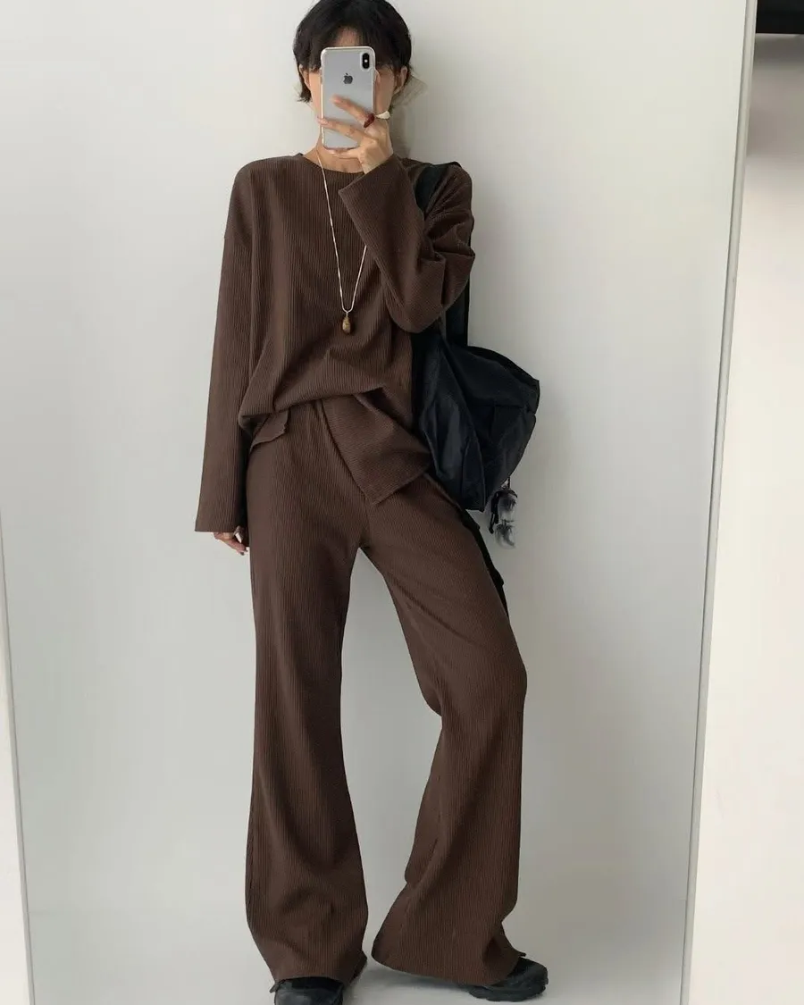Alog 成套 坑條紋 超級顯瘦 開叉踢+超彈喇叭褲非常舒服又好穿 沒有刷毛~適合寒流以外的天氣🥳🥳社團超級熱賣款 有姐妹已經賣了三四套了 每個顏色都超好看🤩🤩🤩模特兒 S號身形空媽168/70 XL身形 尺寸Free XL以下之身形 可以 ㄣ ㄣ ㄢ