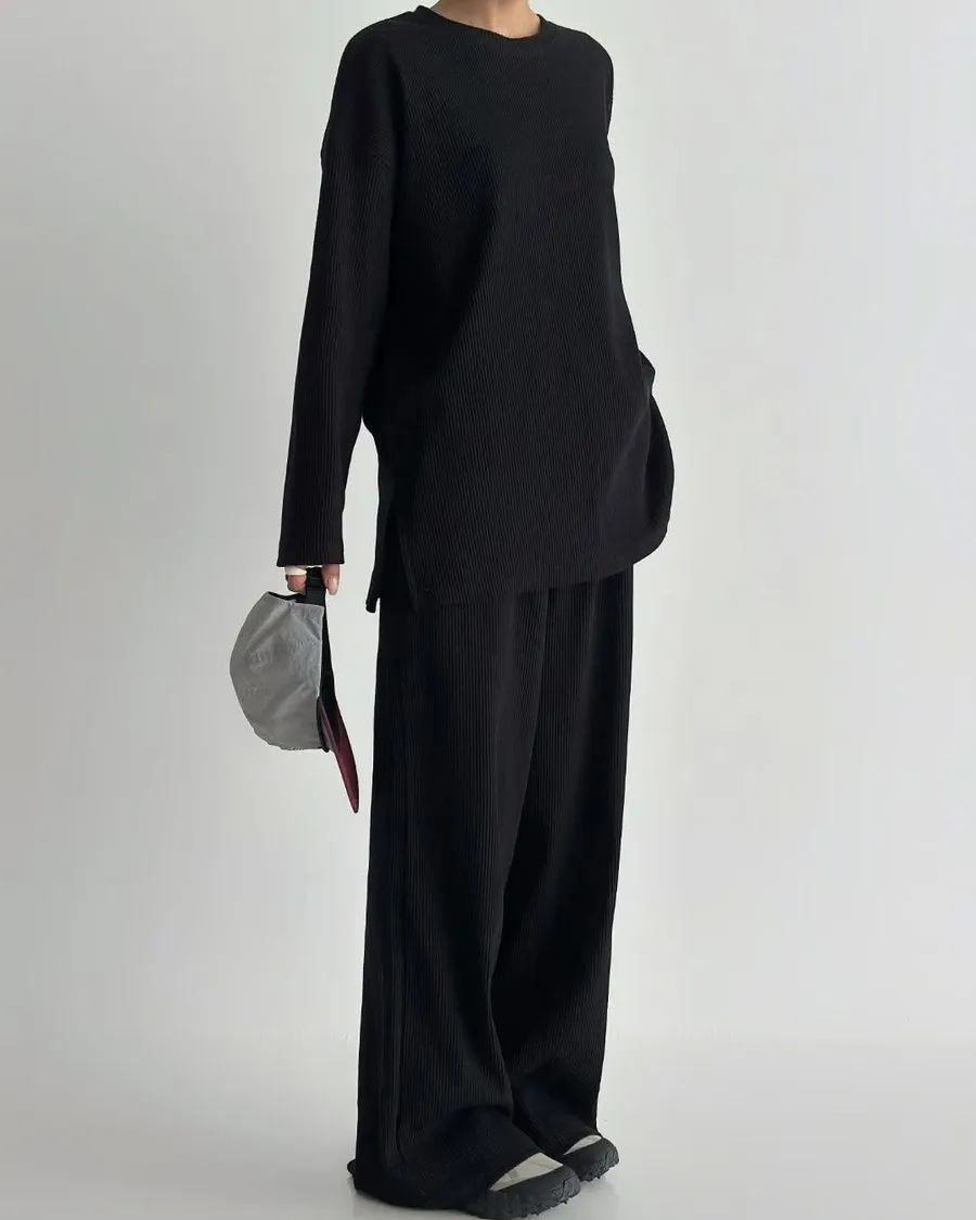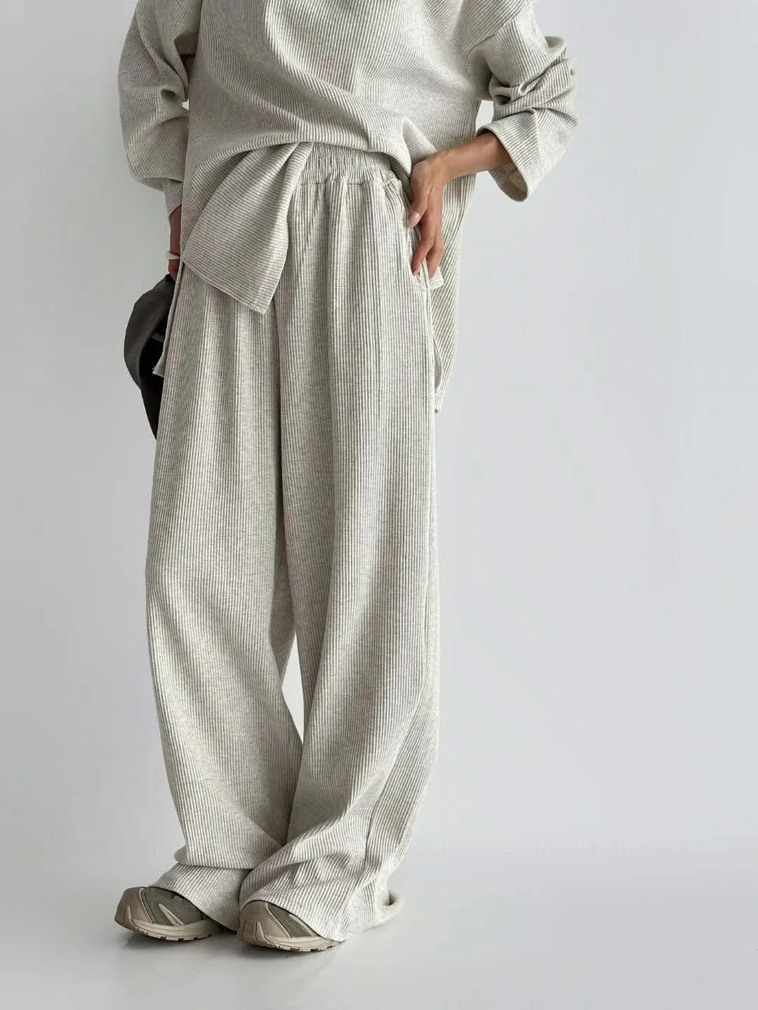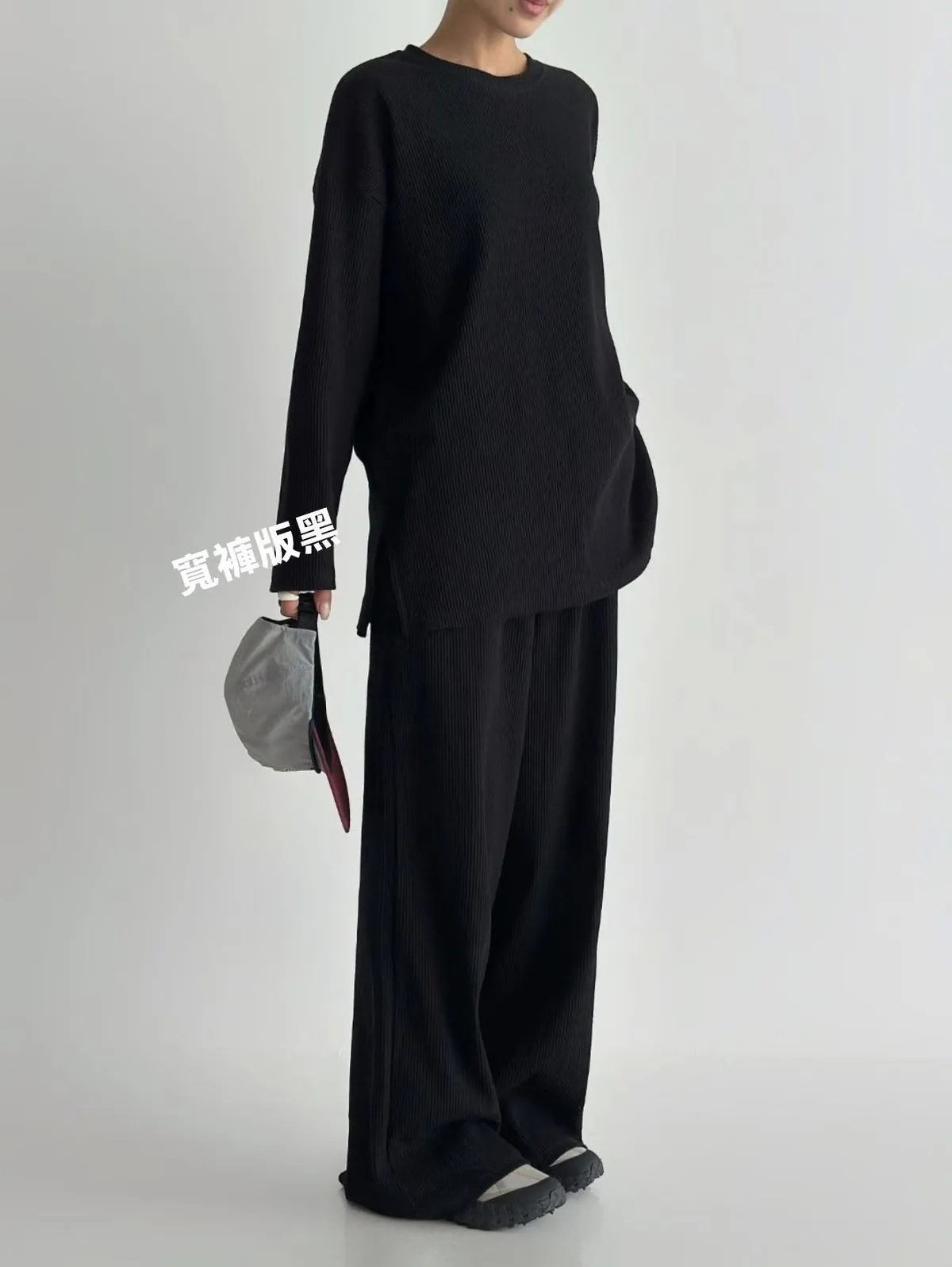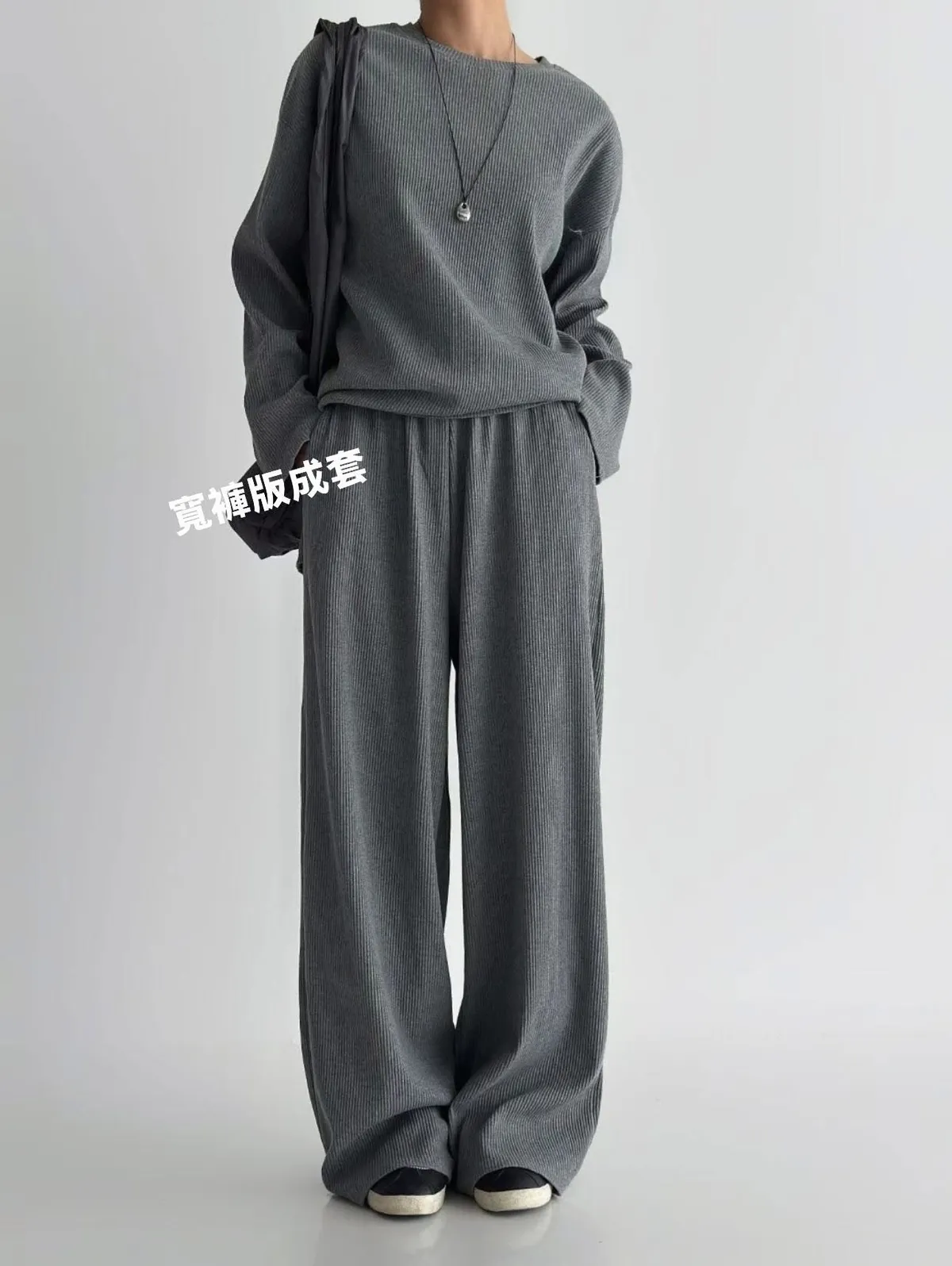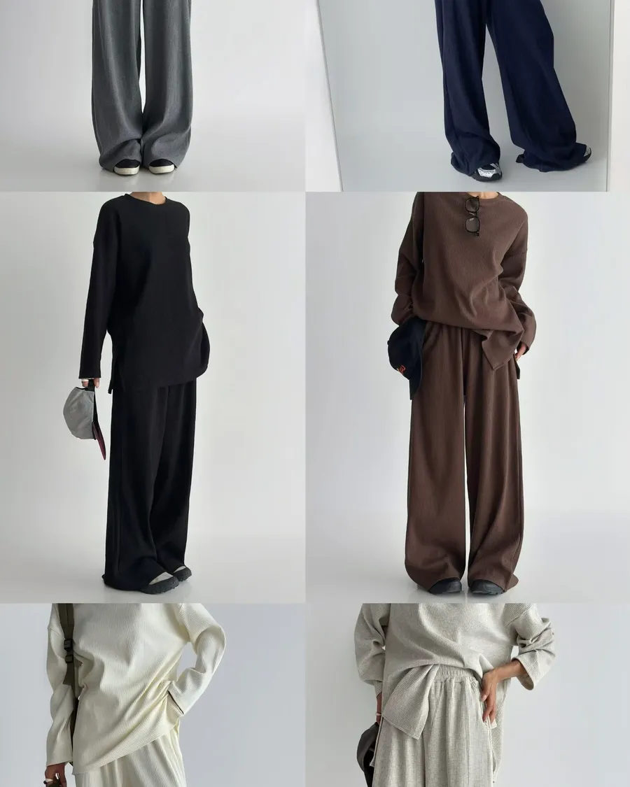 Alog 成套 坑條紋 超級顯瘦 開叉踢+超彈wide 寬褲非常舒服又好穿 沒有刷毛~適合寒流以外的天氣🥳🥳社團超級熱賣款 每個顏色都超好看🤩🤩🤩Boxy fit 適合2XL以下 模特兒 S號身形空媽168/70 XL身形 尺寸Free 2XL以下之身形