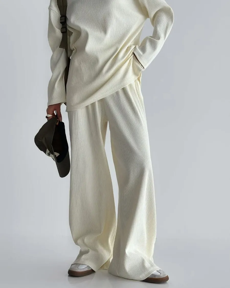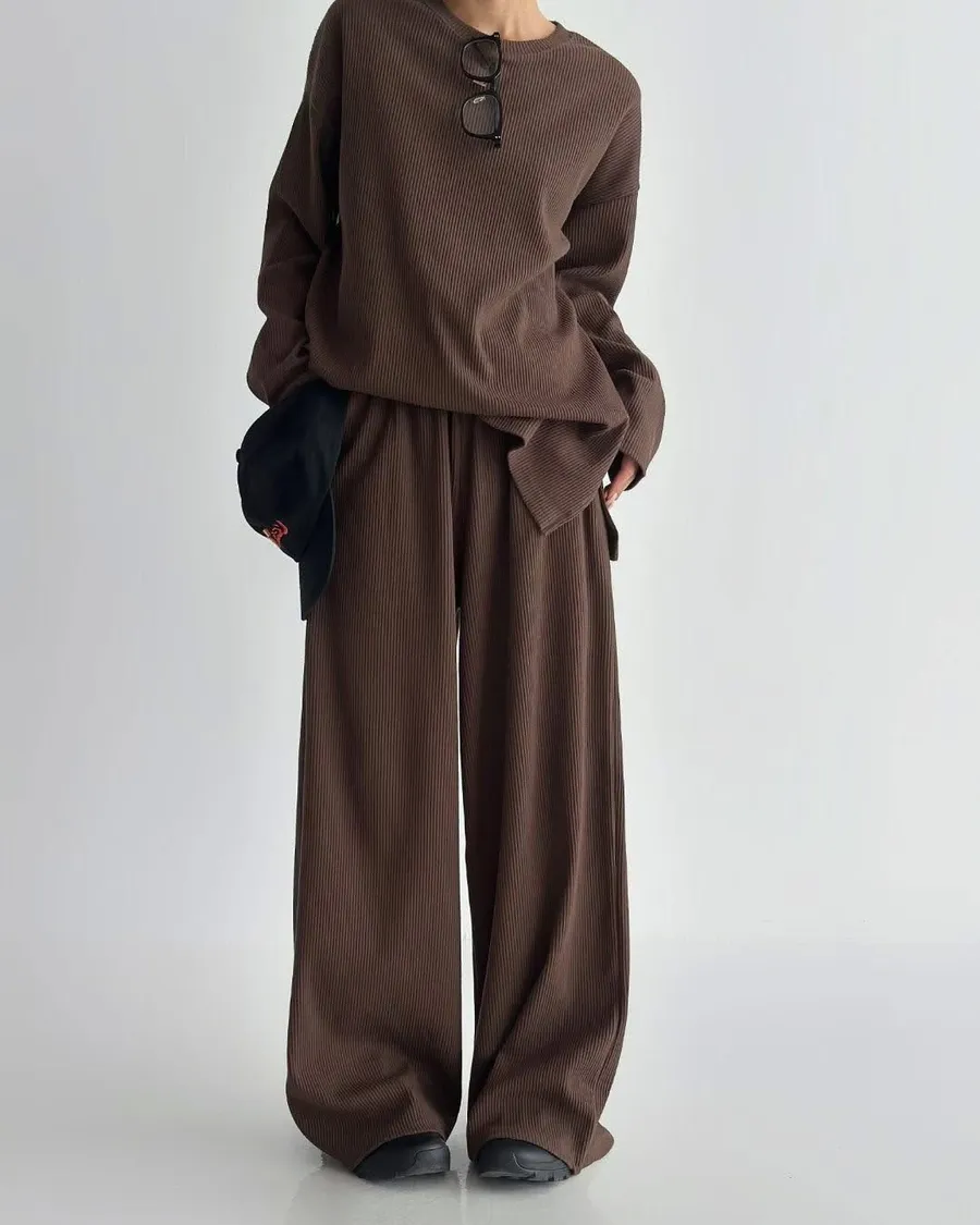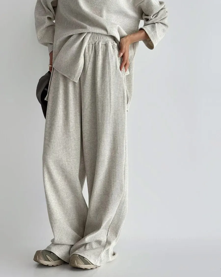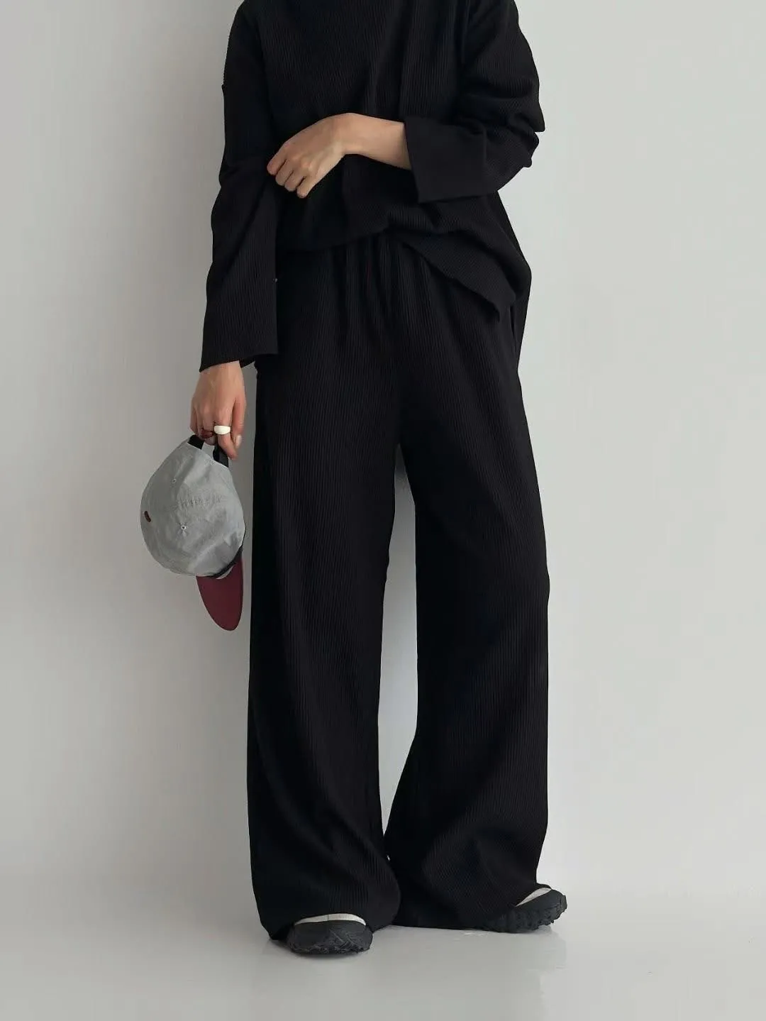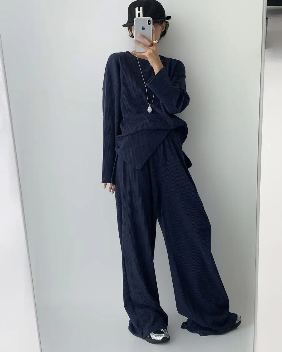 Alog 成套 坑條紋 超級顯瘦 開叉踢+超彈wide 寬褲非常舒服又好穿 沒有刷毛~適合寒流以外的天氣🥳🥳社團超級熱賣款 每個顏色都超好看🤩🤩🤩Boxy fit 適合2XL以下 模特兒 S號身形空媽168/70 XL身形 尺寸Free 2XL以下之身形