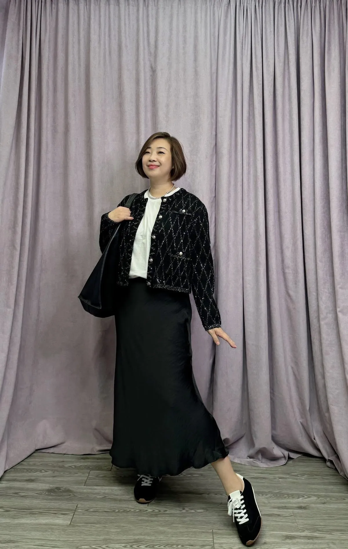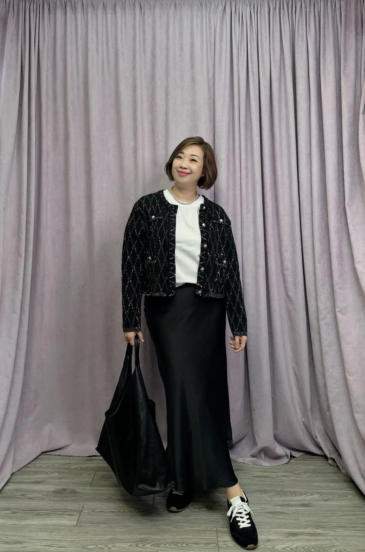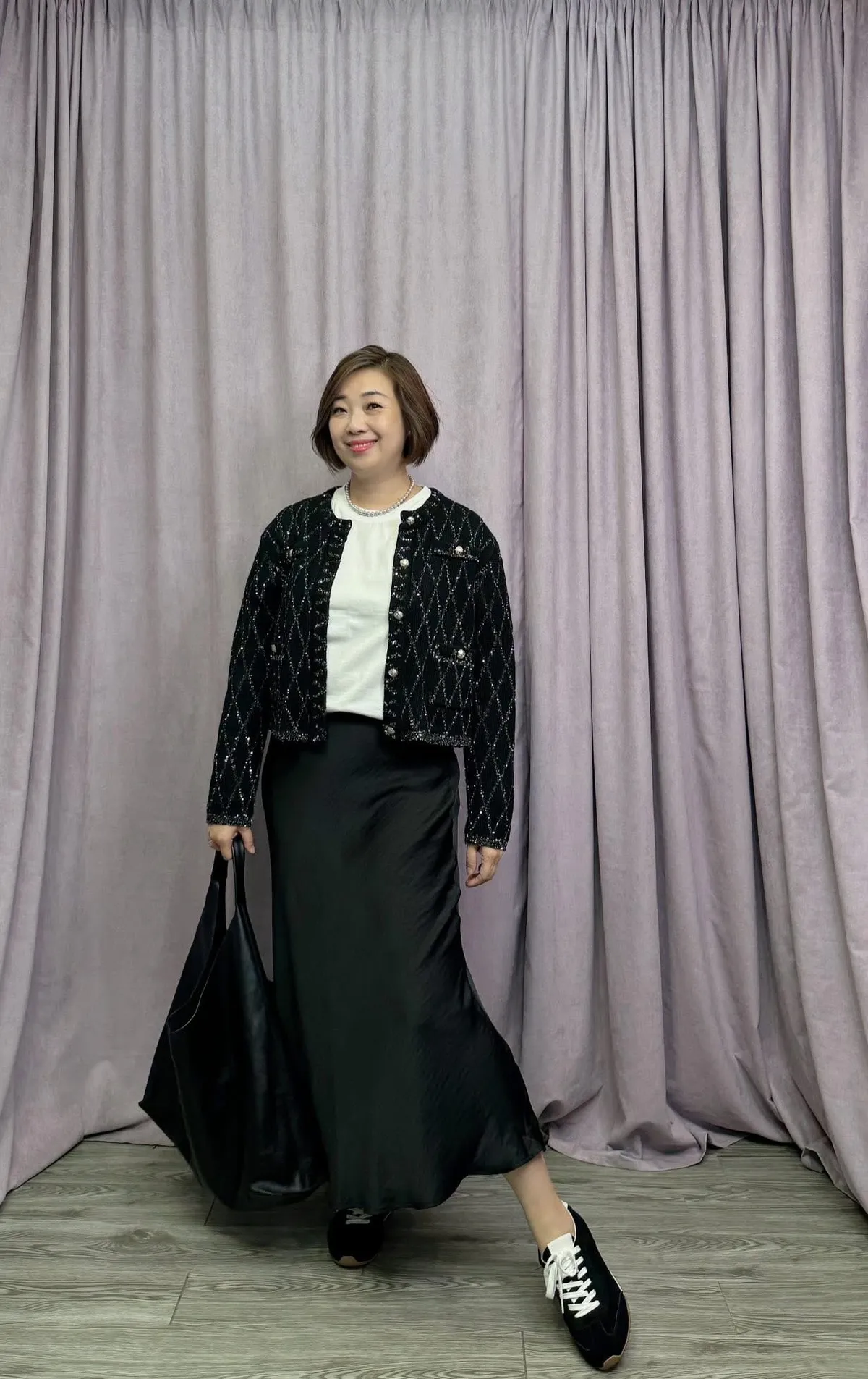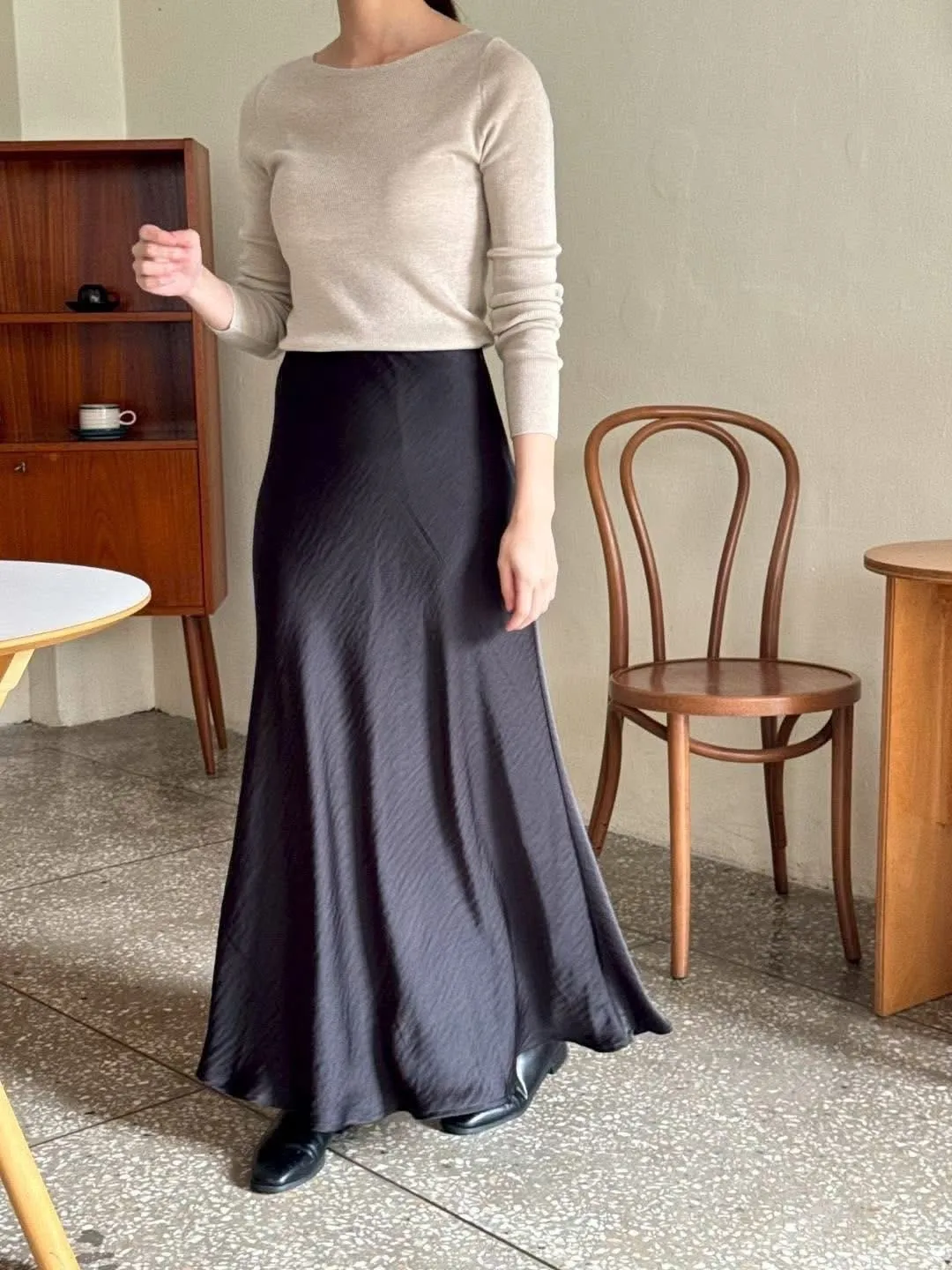 Silky flare SK緞面彈性A line裙 A line版型剪裁的長裙再配上貴氣的緞面材質舒服彈性的腰圍設計好穿又典雅的氣質單品尺寸free sizeL尺寸以下都可以穿#模特兒為S號身材#空媽現在為XL身材168/70可以穿