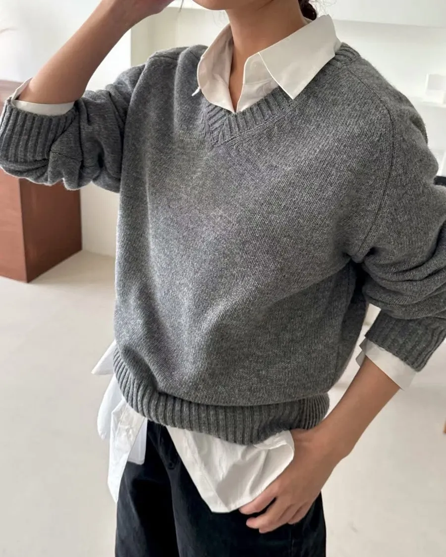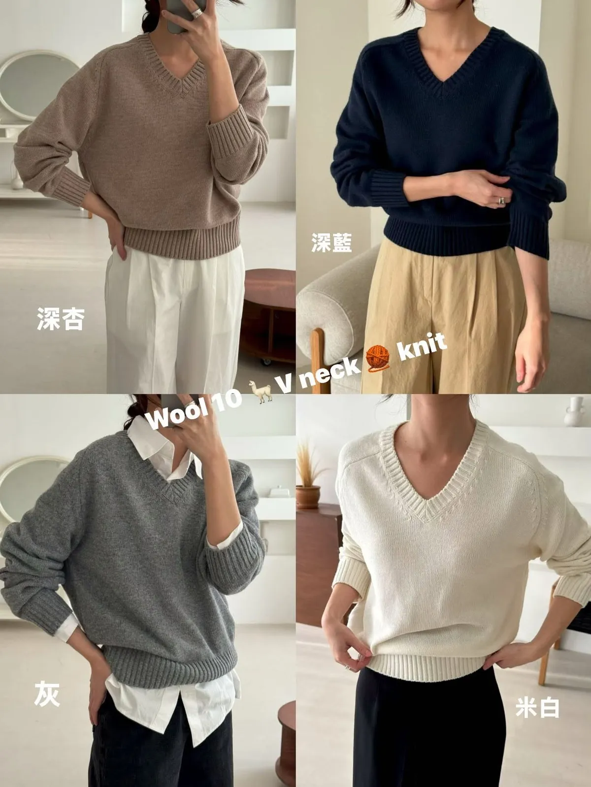 Wool 10% V neck knit羊毛10%V領針織上衣