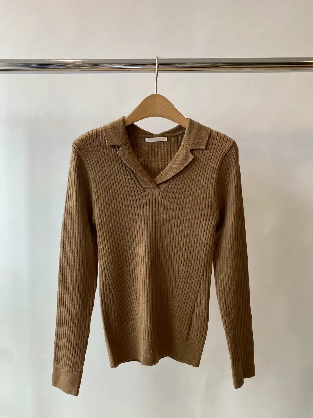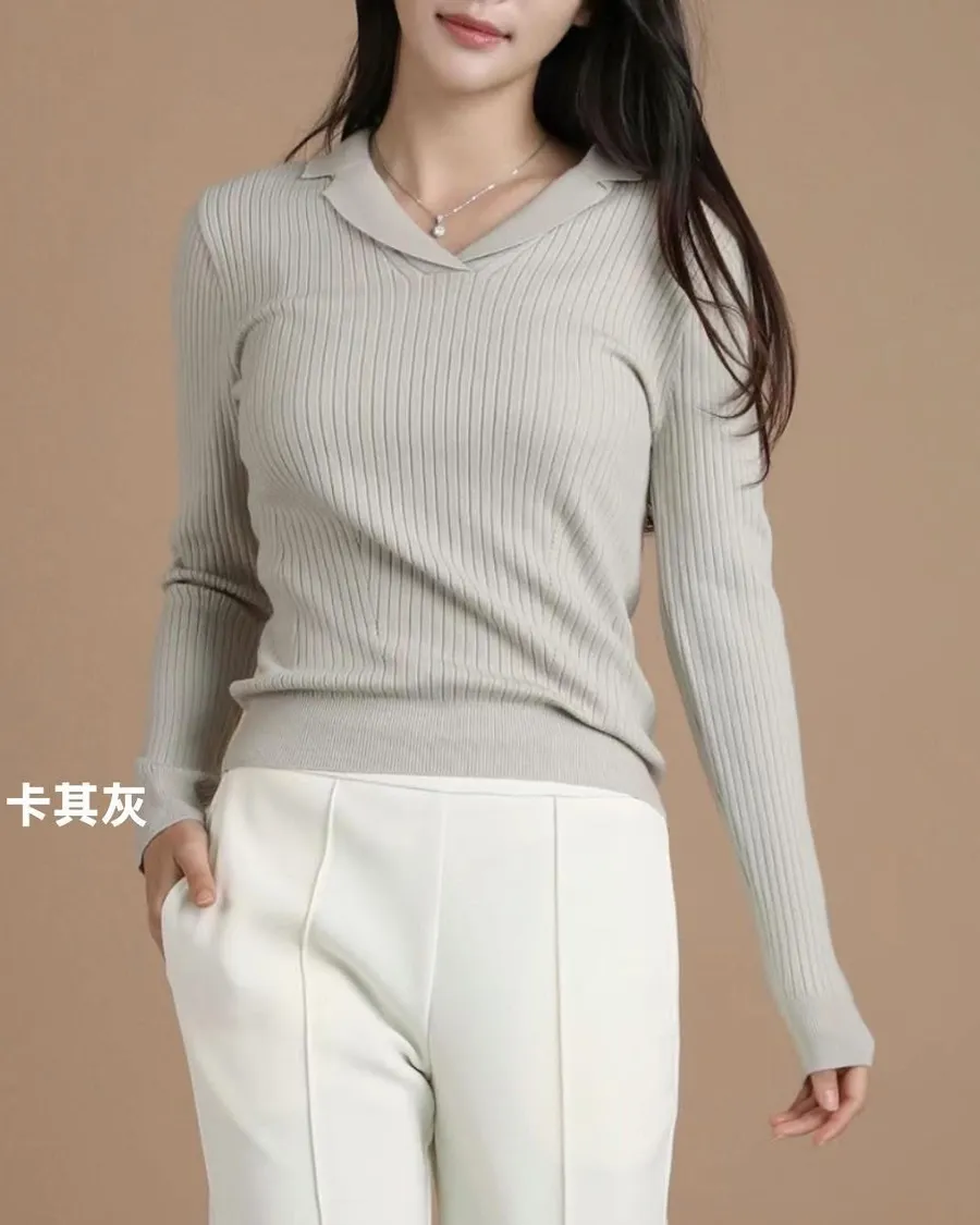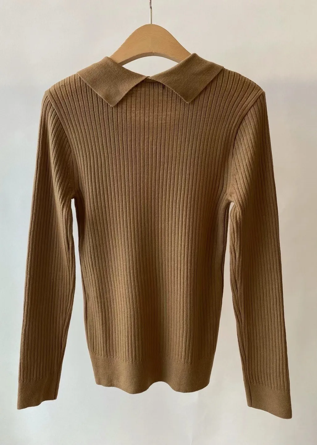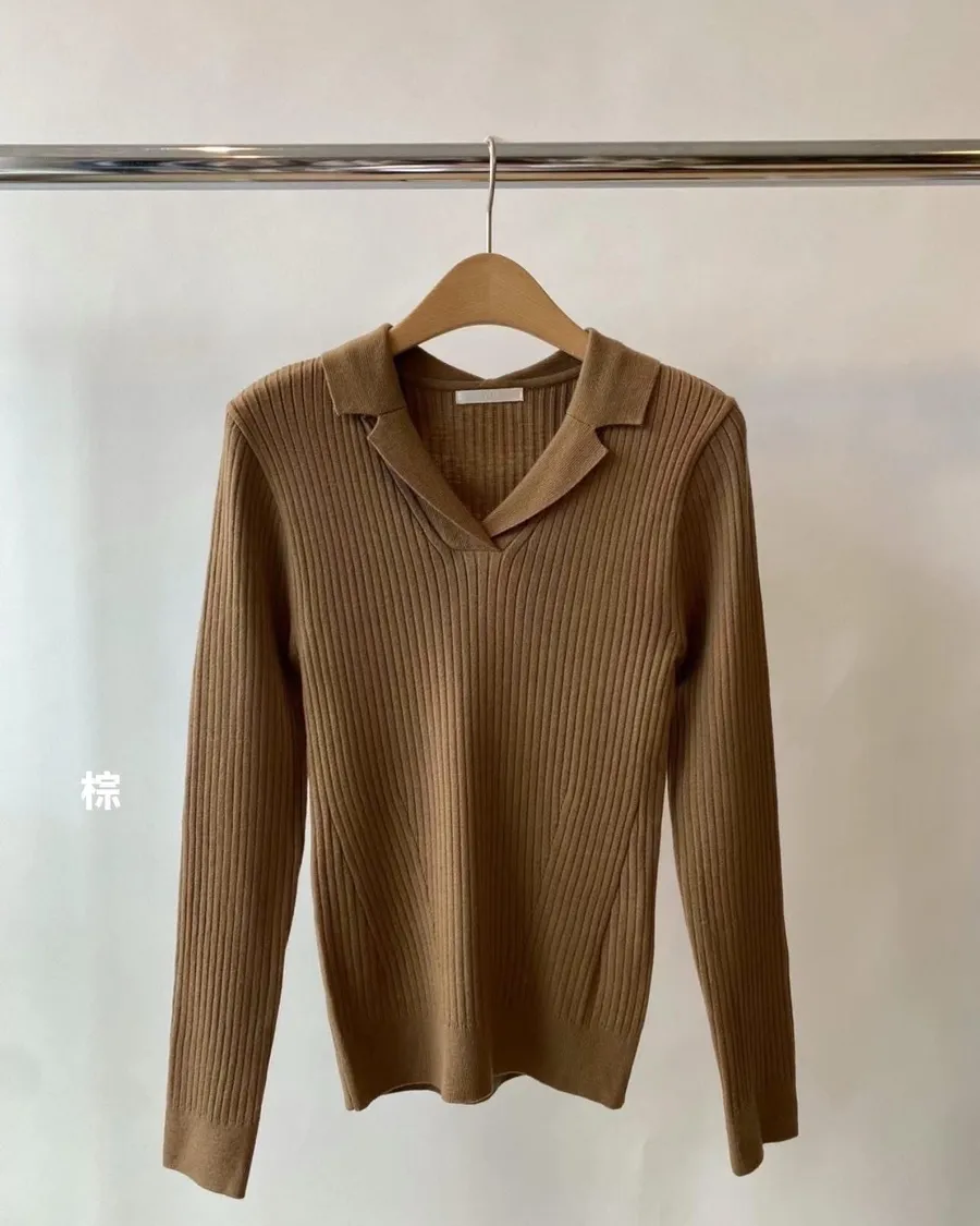 原價1280特價🉐690 只有卡其灰1 棕1 尺寸 free size 胸圍約45公分 適合S~M 合身版型 質感很棒的 領子針織衫 合身版型適合S~瘦L 顯瘦典雅 ❤️❤️❤️百搭必備款🥳🥳🥳 模特身高164 S尺寸身形