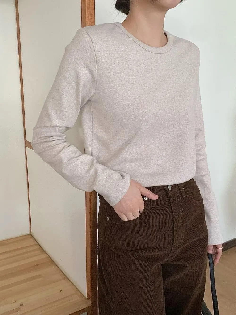 Chico Uni peach Tee高磅彈性圓領踢秋冬打底衣(薄刷毛)有磅數peach刷毛保暖不悶熱質感舒服、挺版材質經典簡約的圓領款式可以完美搭配任何秋冬服飾及外套顏色多樣可依個人喜好選擇任選三件🉐特價1260