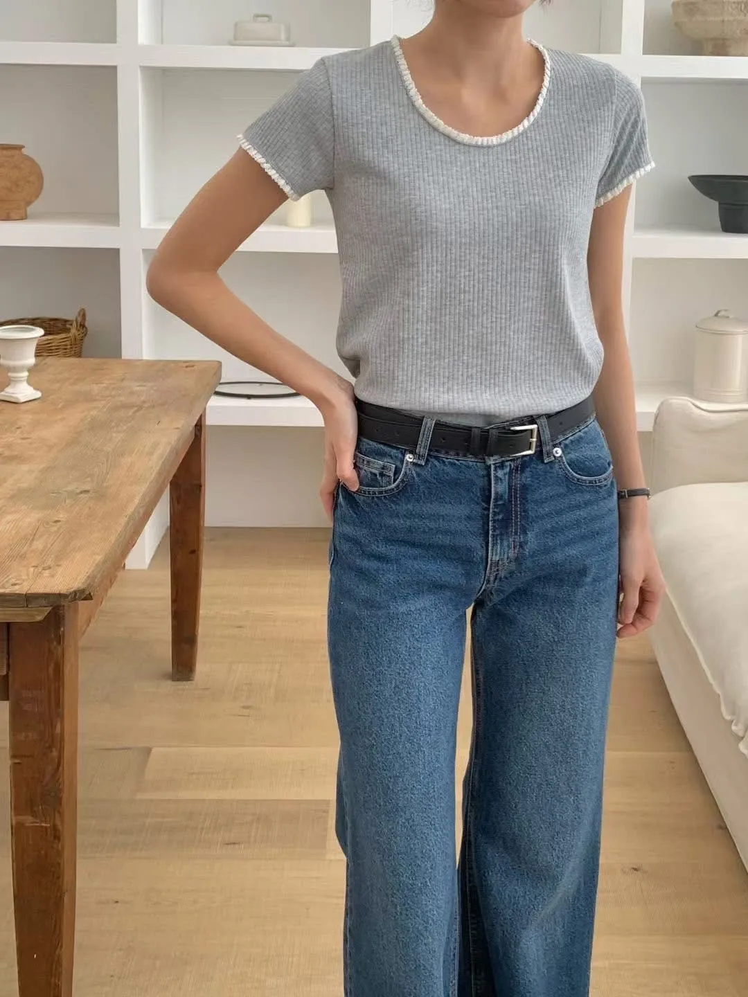 簡約舒服蕾絲邊踢