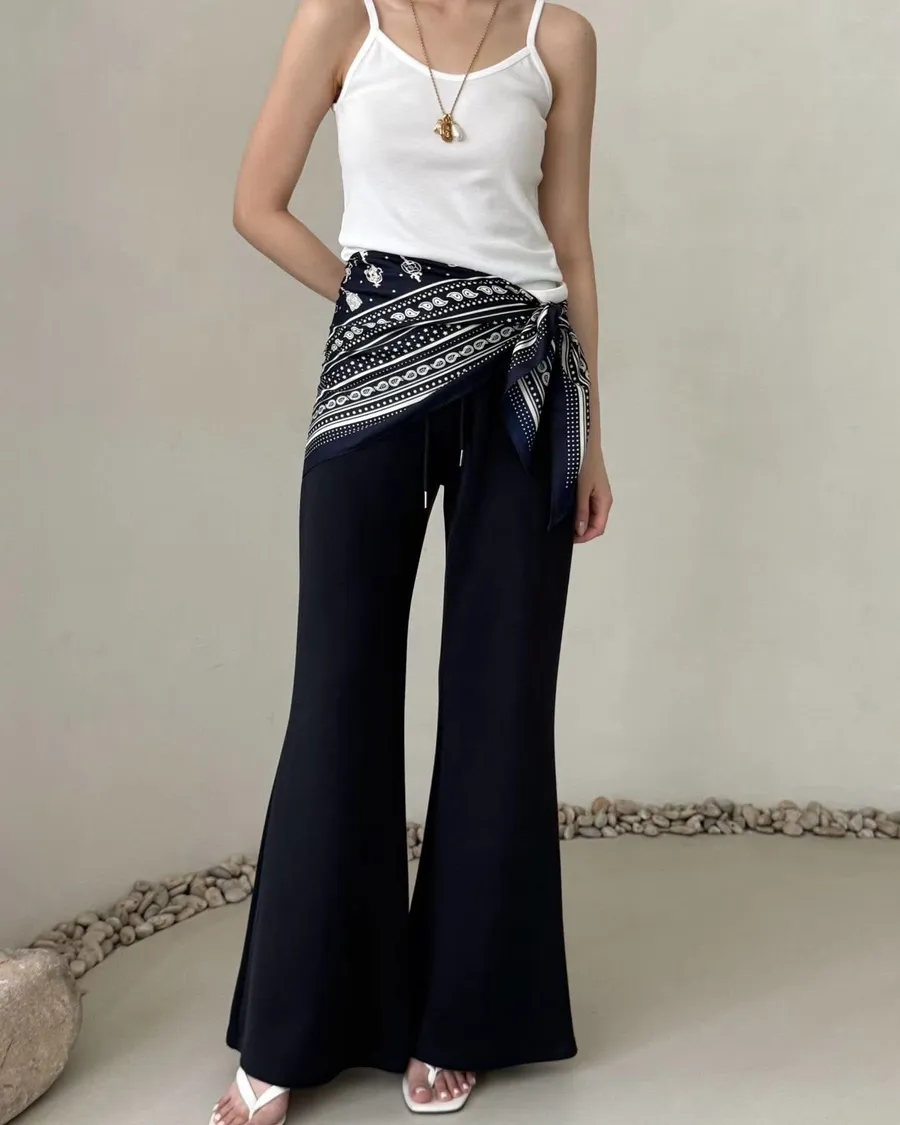 Summer Lift超Q彈 激瘦長腿小喇叭褲超顯瘦懶人休閒褲材質超級Q彈平價版露露檸檬褲夏季材質不易變形尺寸:free sizeS到XL以下可以腰圍鬆緊帶模特兒為S號168左右身材空媽168 / 70合身