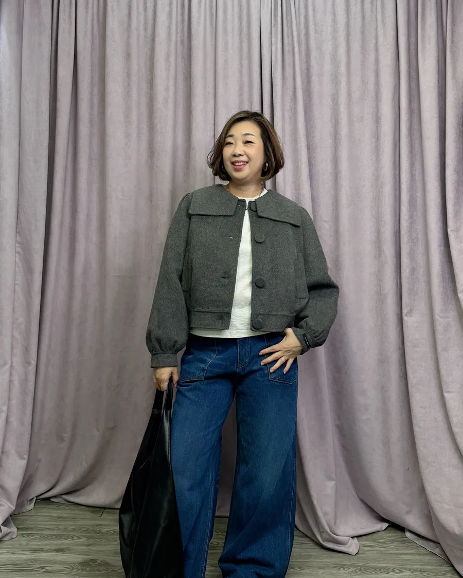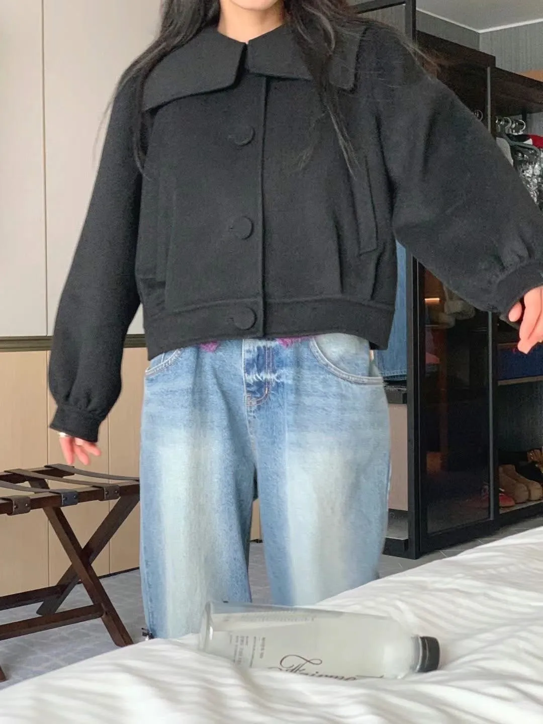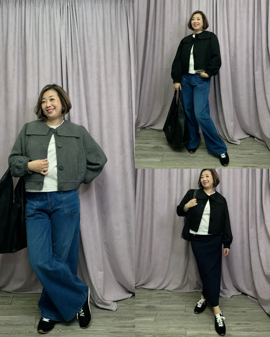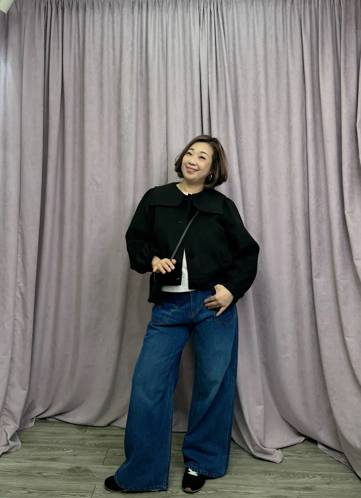 手工羊毛短夾克羊毛80% Polyester 20 %手工羊毛短大衣夾克80 %羊毛材質柔軟輕盈保暖簡約實穿的短大衣翻領造型細節感很棒尺寸(cm): free size小XL以下可以穿胸圍57、衣長54 ㄚˉ