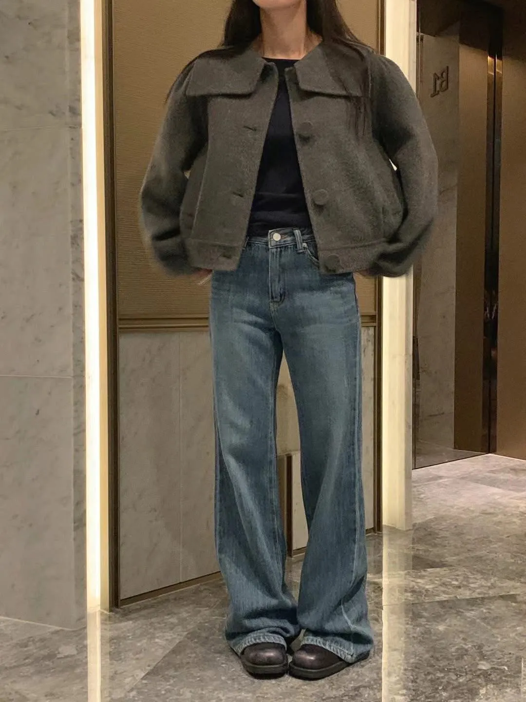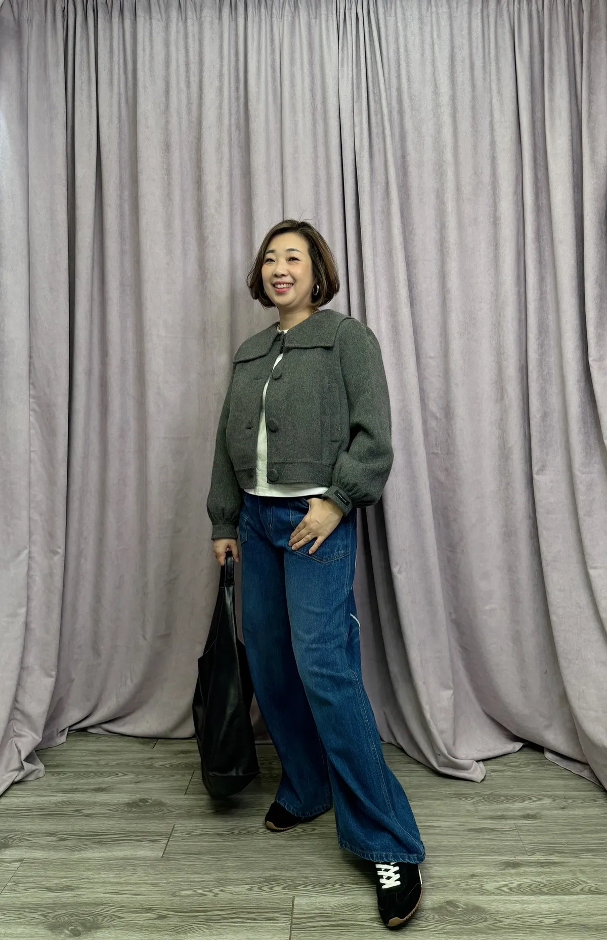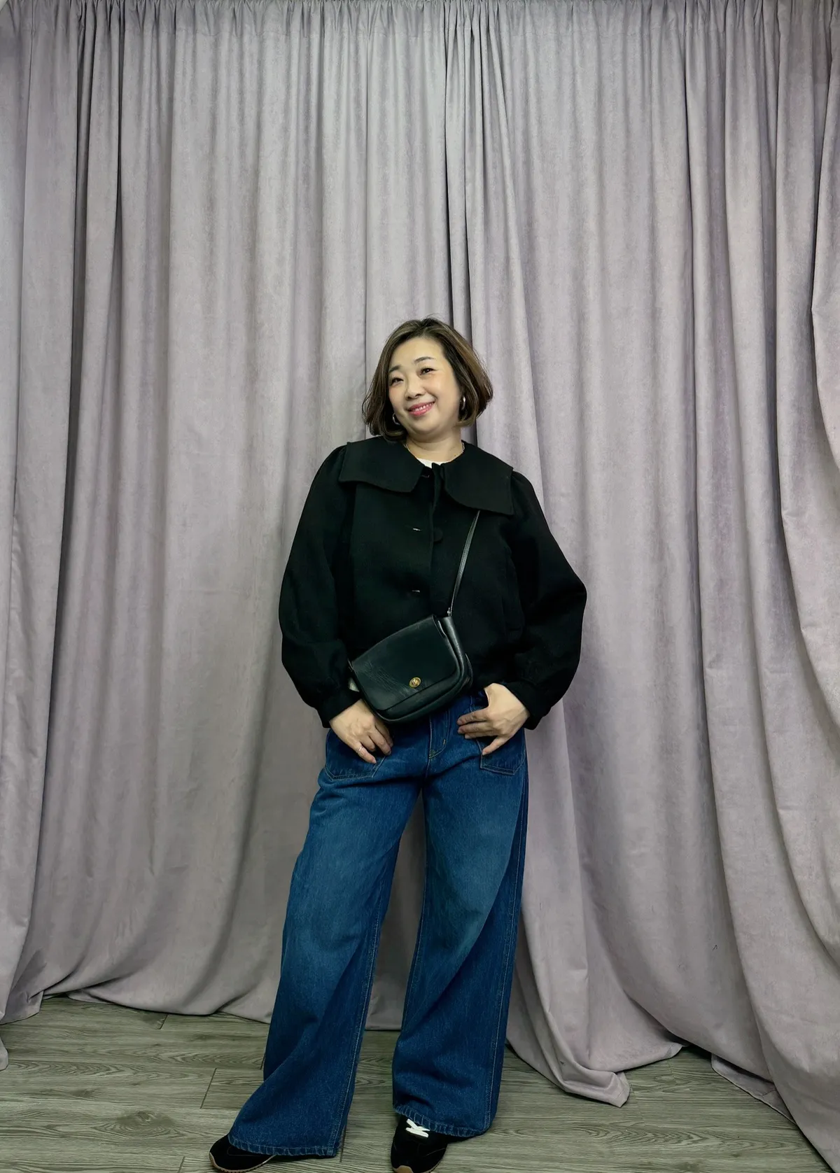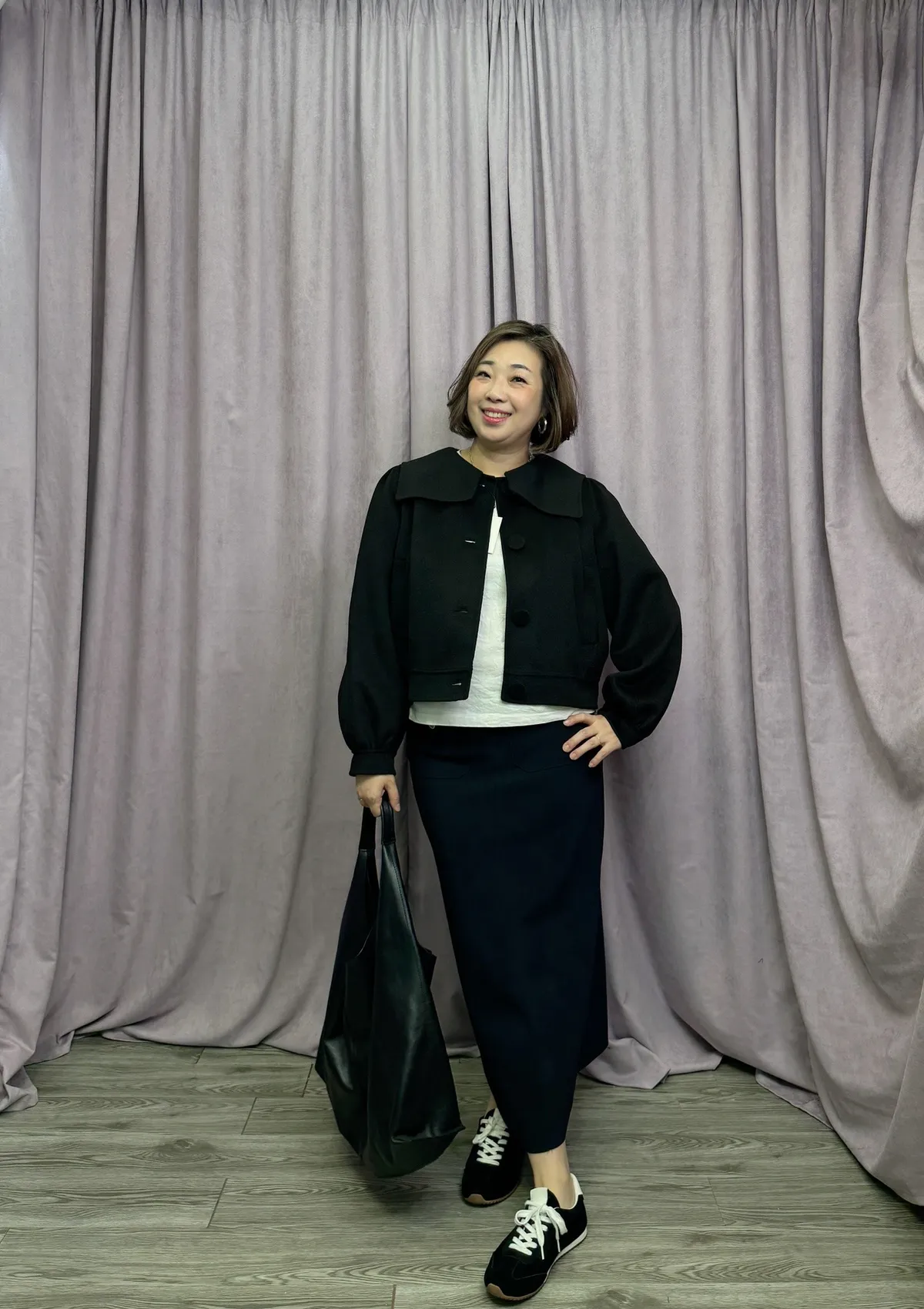 手工羊毛短夾克羊毛80% Polyester 20 %手工羊毛短大衣夾克80 %羊毛材質柔軟輕盈保暖簡約實穿的短大衣翻領造型細節感很棒尺寸(cm): free size小XL以下可以穿胸圍57、衣長54 ㄚˉ