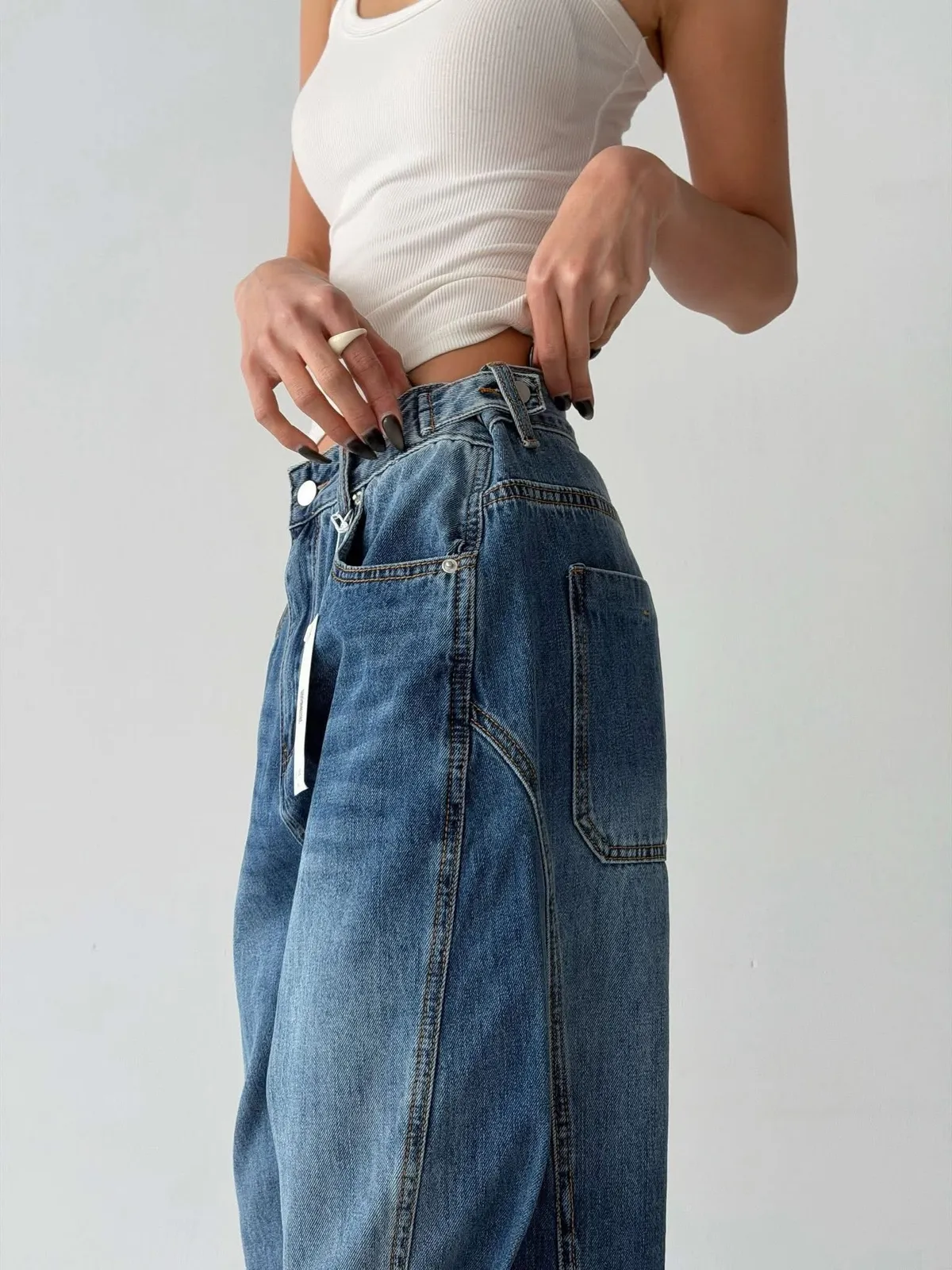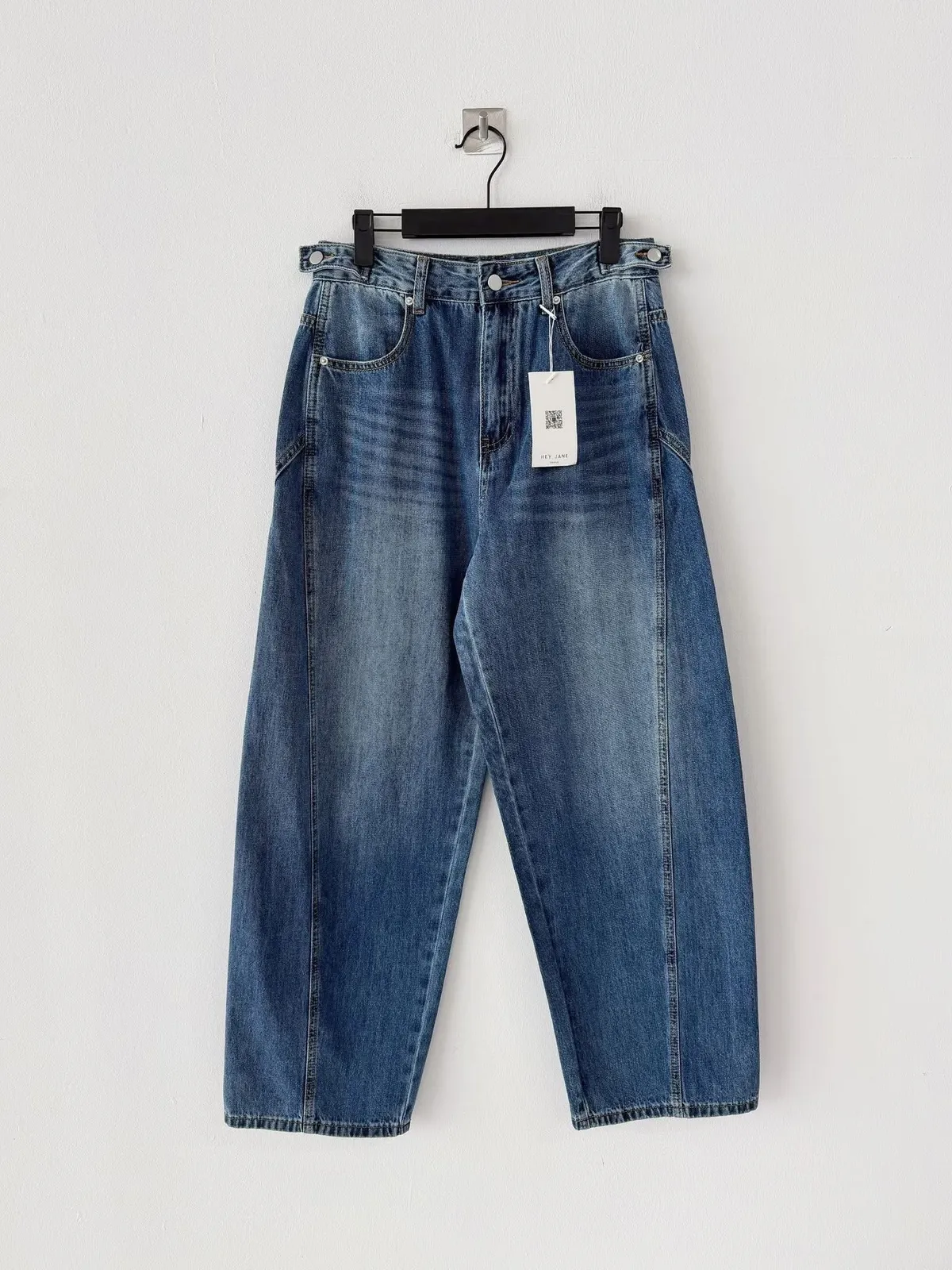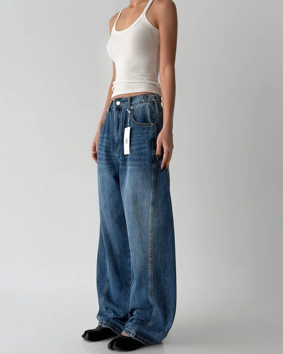 5005時尚調節扣 腰圍細節感寬褲腰圍有調節扣 細節感覺得很好看好搭配的寬褲稍微偏大尺寸拿原尺寸穿起來就有鬆鬆感空媽現在XL穿這件L腰稍緊但褲身可以尺寸(cm): S#M#LS:腰圍37、臀53、褲長98M:腰圍39、臀55、褲長99L:腰圍40、臀57、褲長100
