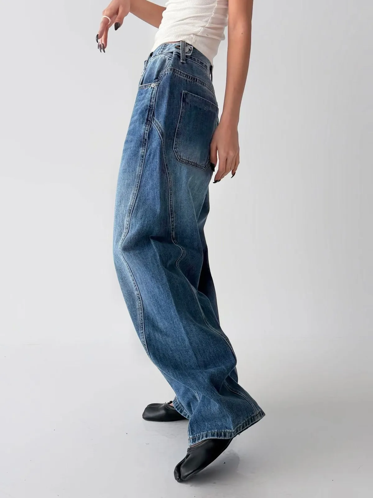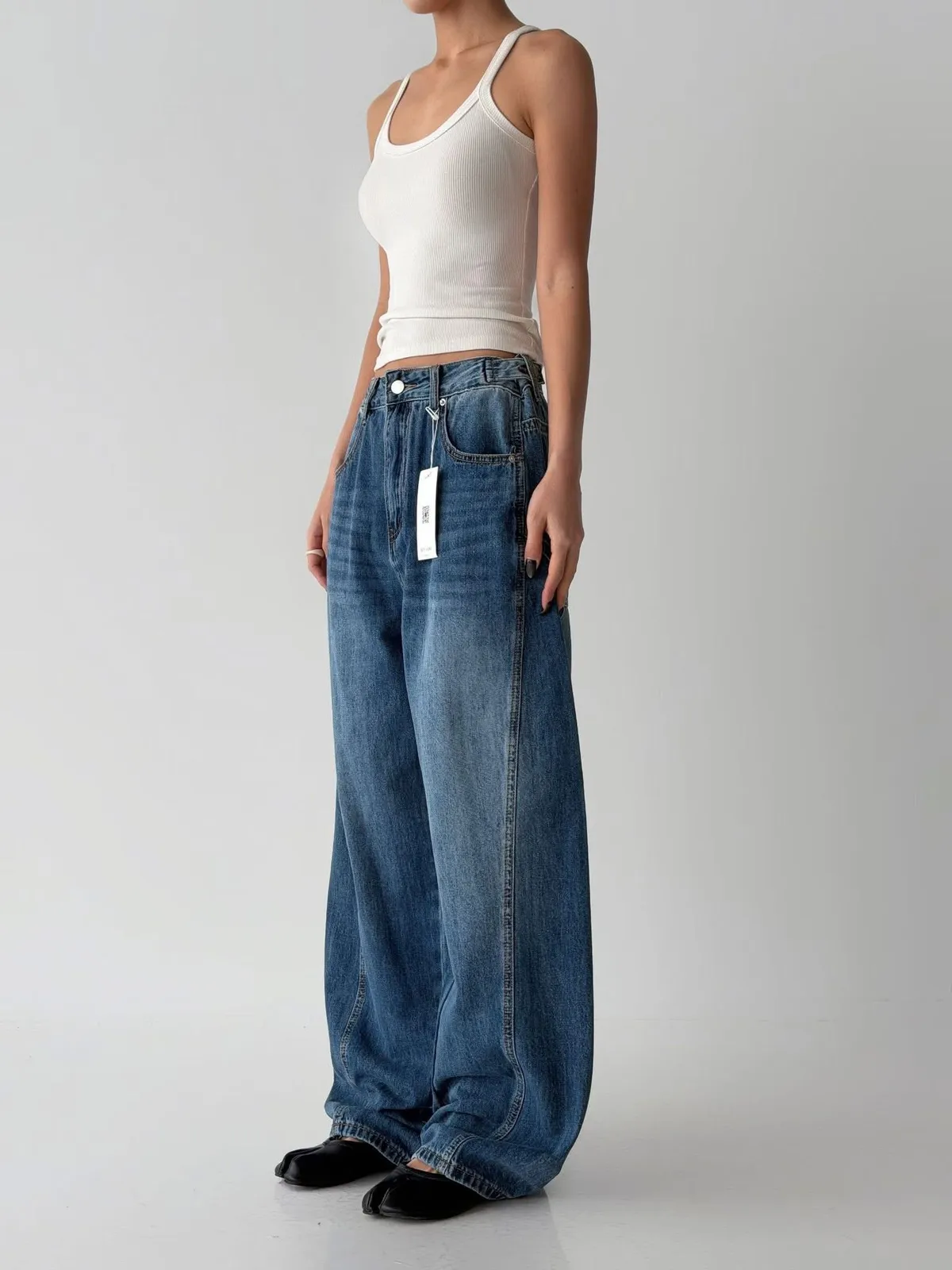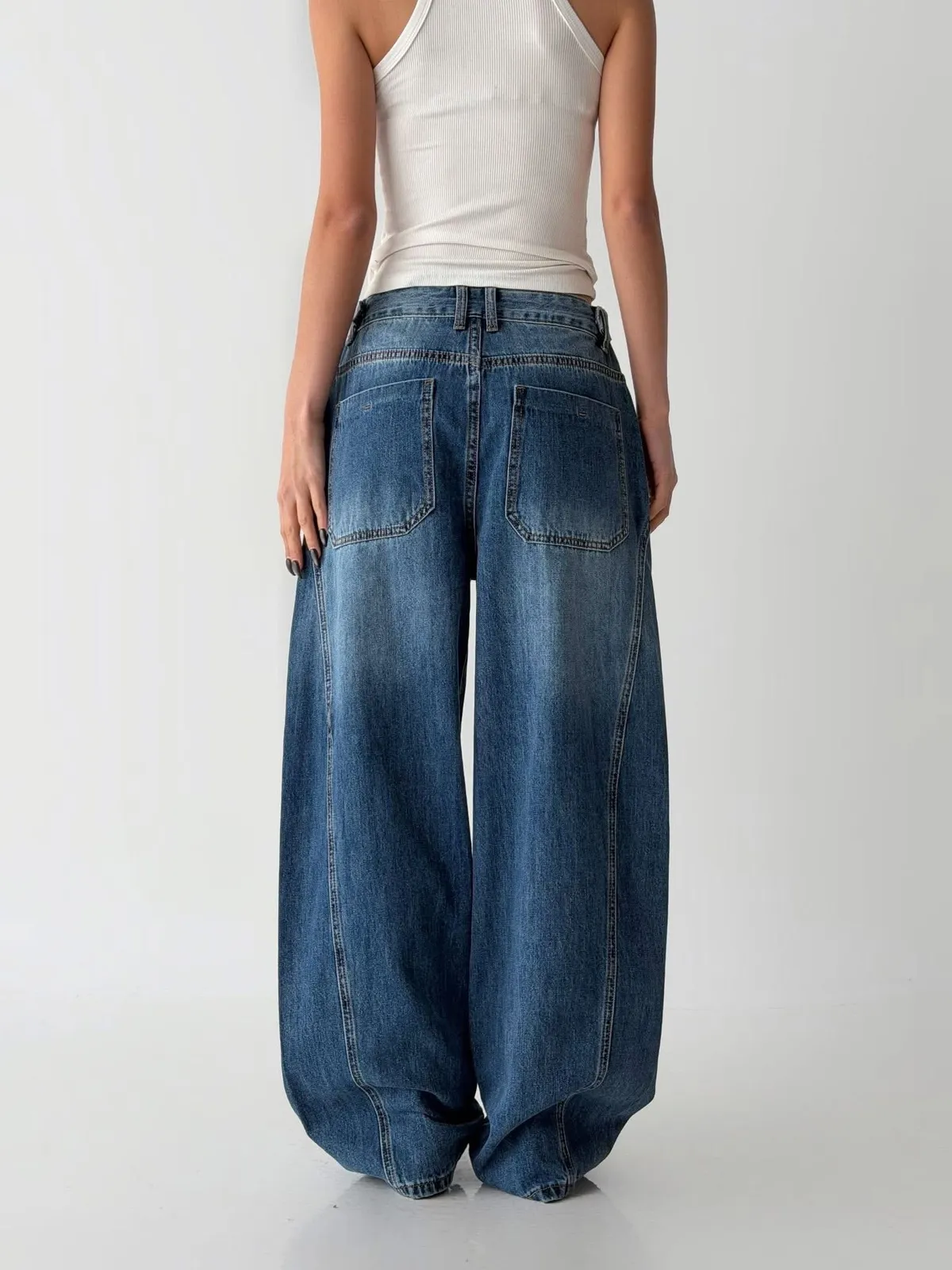 5005時尚調節扣 腰圍細節感寬褲腰圍有調節扣 細節感覺得很好看好搭配的寬褲稍微偏大尺寸拿原尺寸穿起來就有鬆鬆感空媽現在XL穿這件L腰稍緊但褲身可以尺寸(cm): S#M#LS:腰圍37、臀53、褲長98M:腰圍39、臀55、褲長99L:腰圍40、臀57、褲長100
