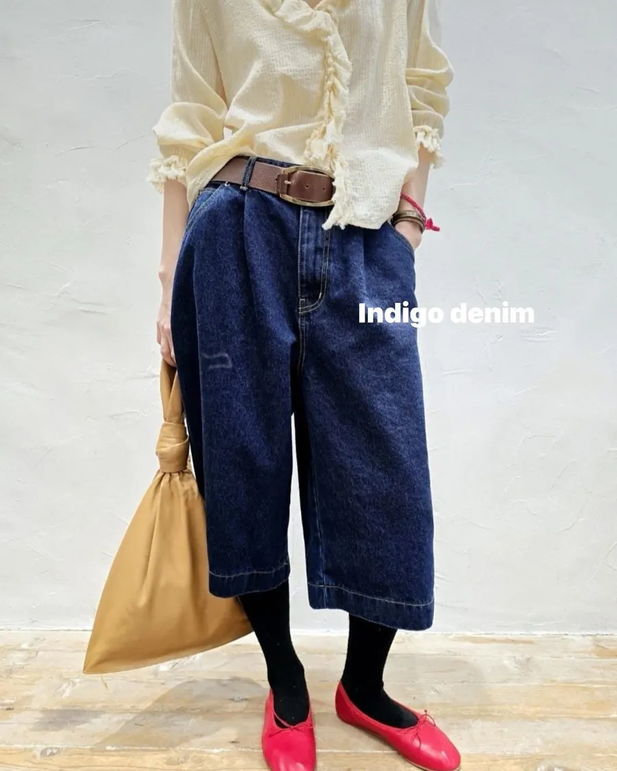 Indigo 七分質感深藍牛仔褲