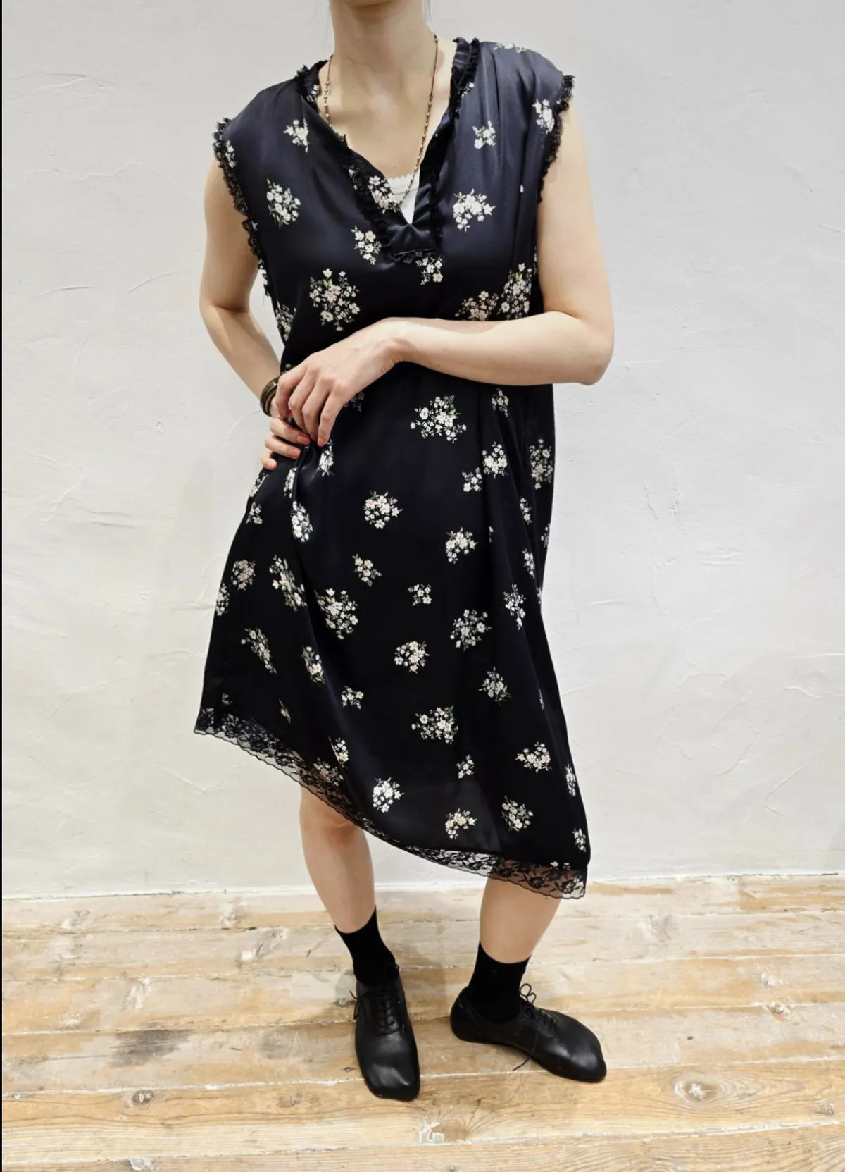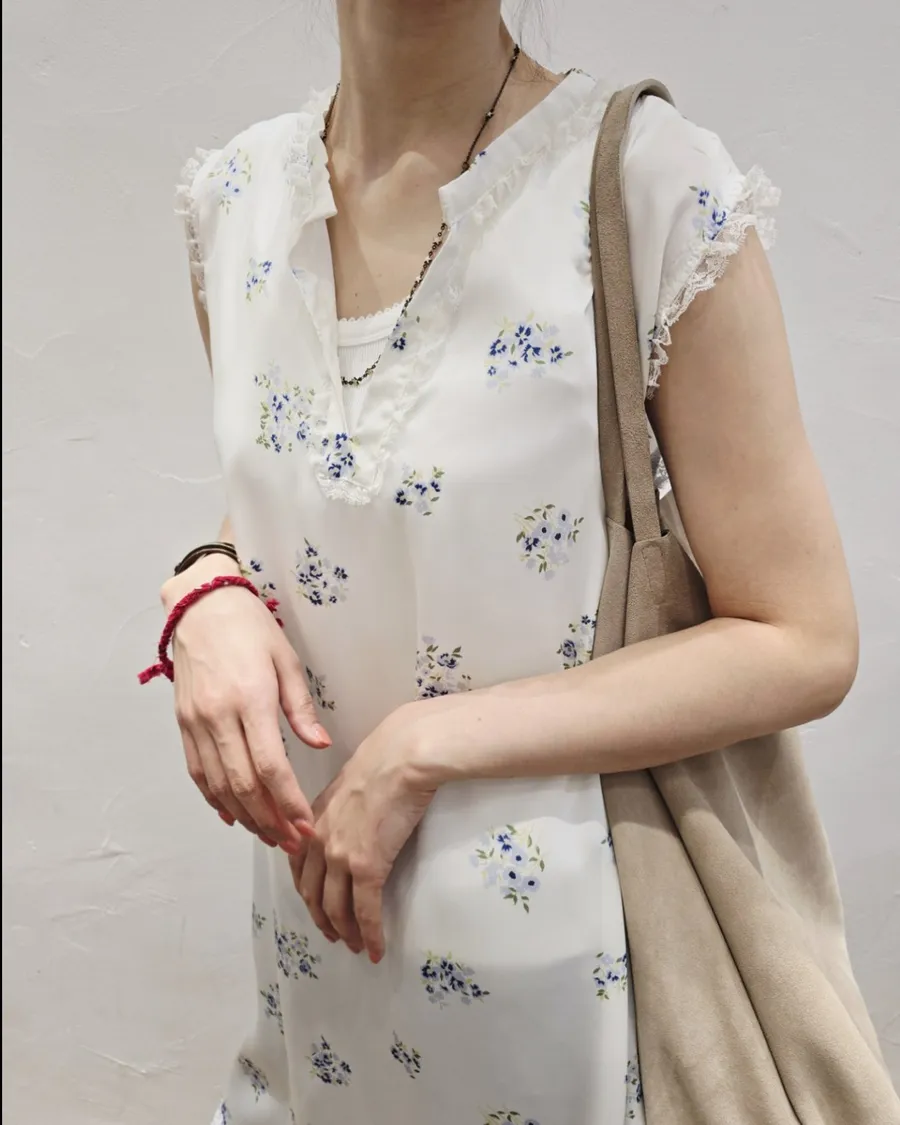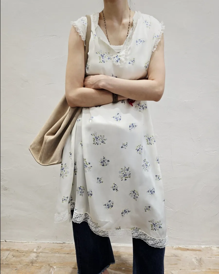 這一款Hippie家 碎花蕾絲斜邊洋裝質感超好 靠Mix match 也可以單穿