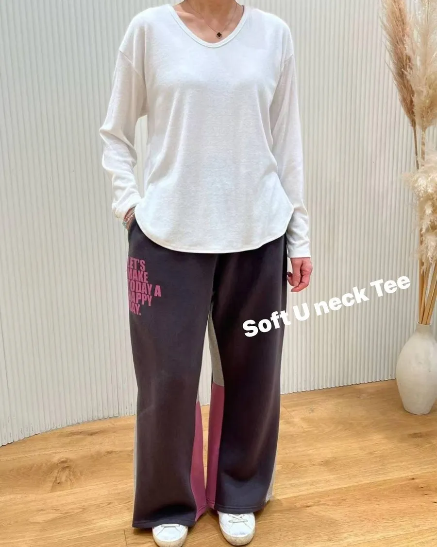 Hong Soft U neck TeeU型彈性長袖踢秋冬很實穿的U領長袖踢Rayon材質觸感舒服空媽(小XL)😅實穿超舒服尺寸:freeS~X L之間都可以穿