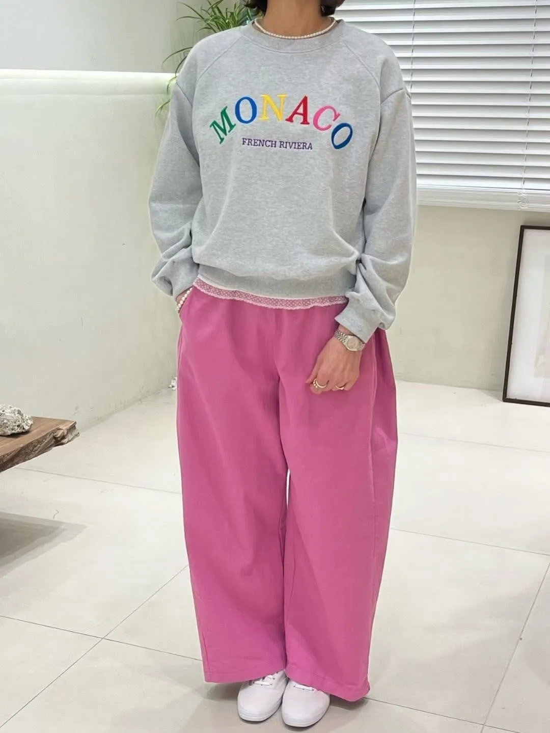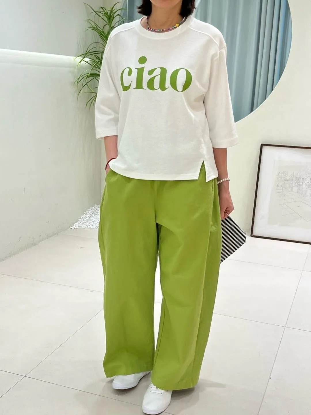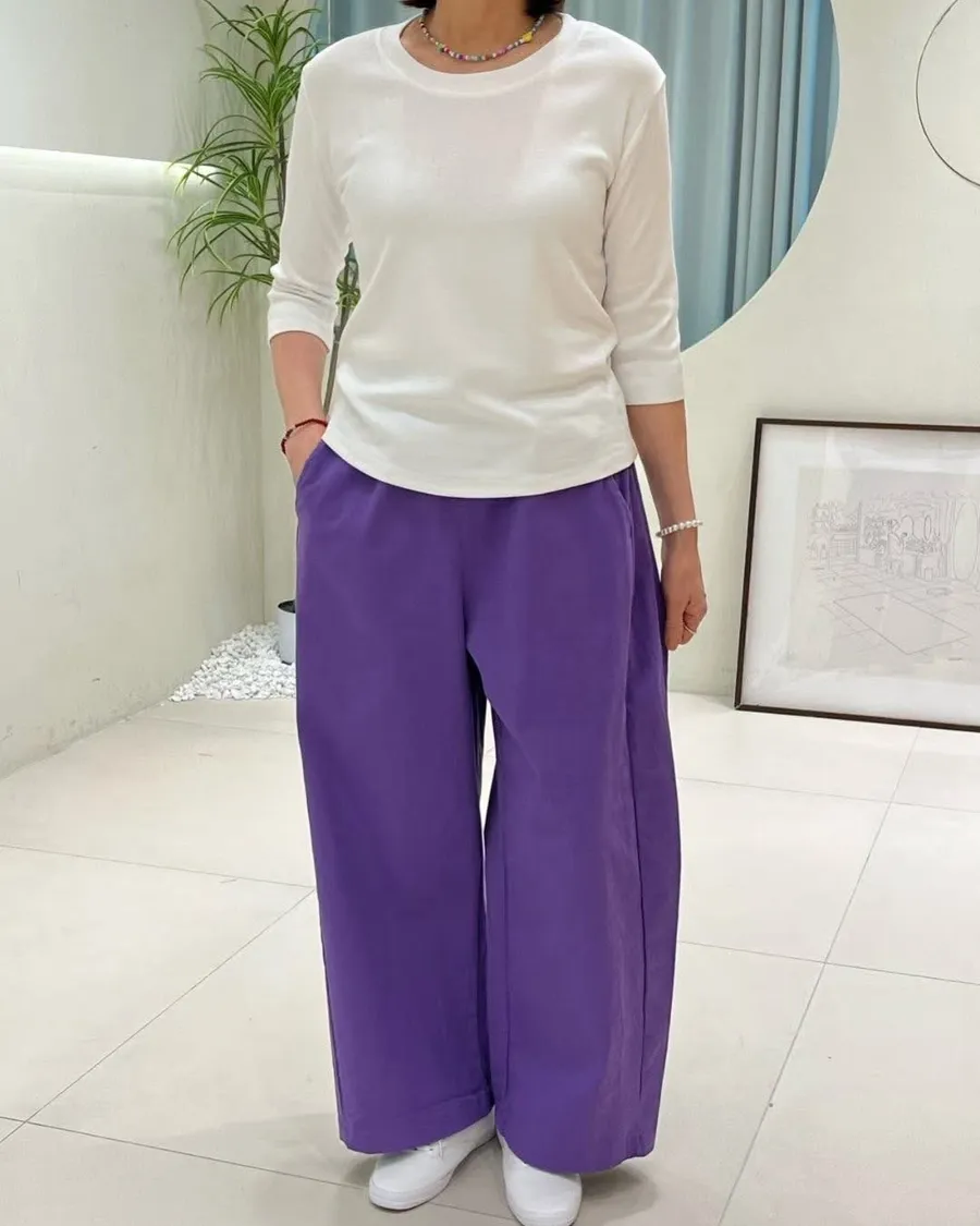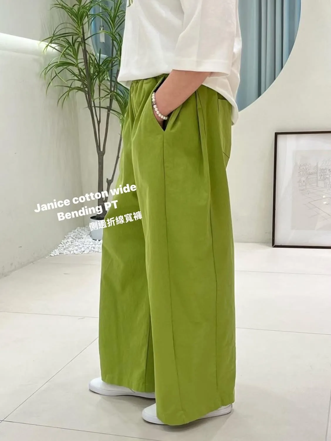 側邊折線 春季款 棉質寬褲