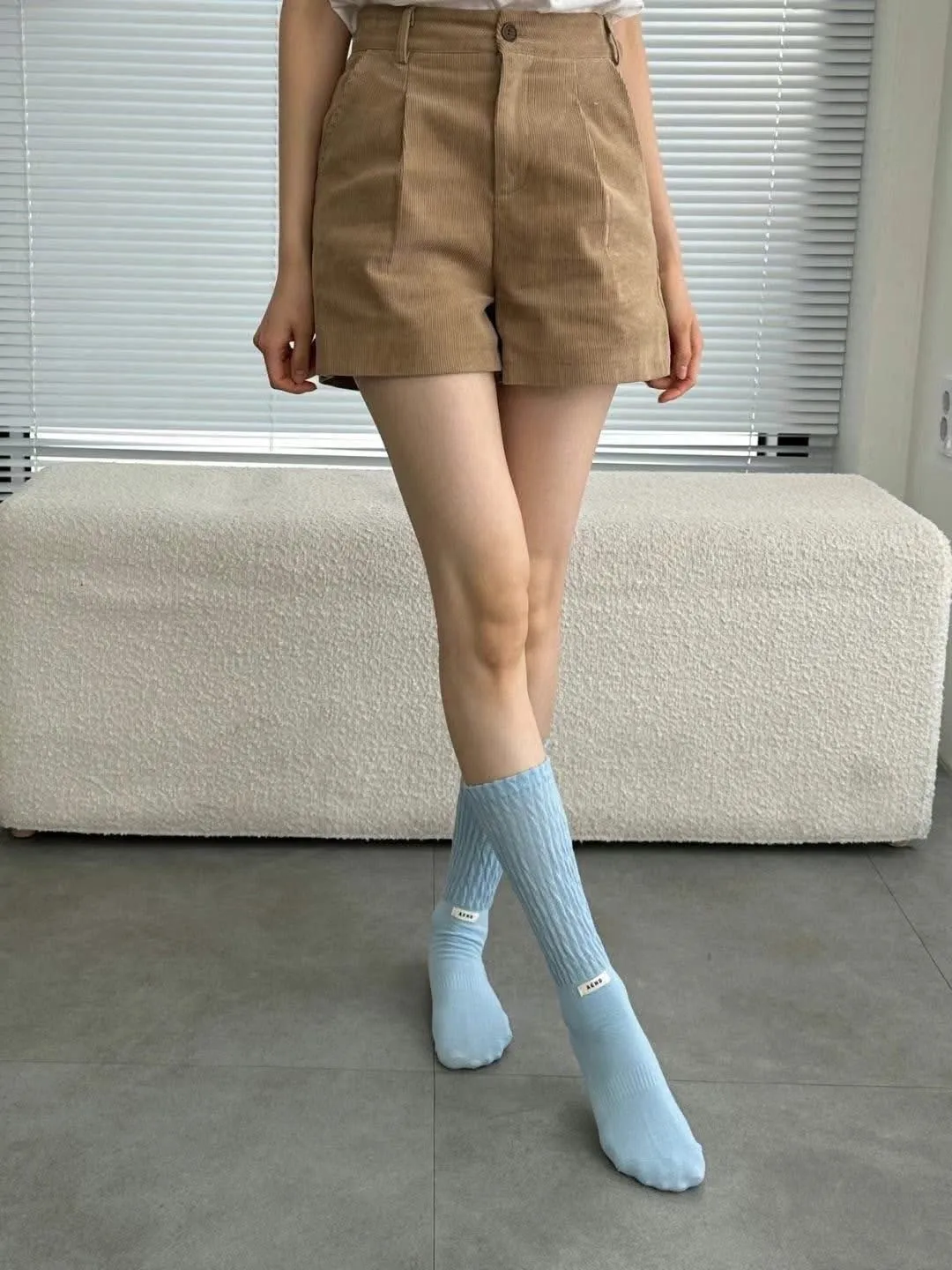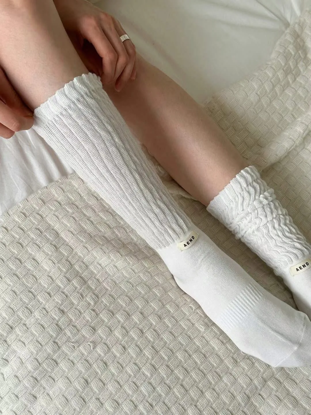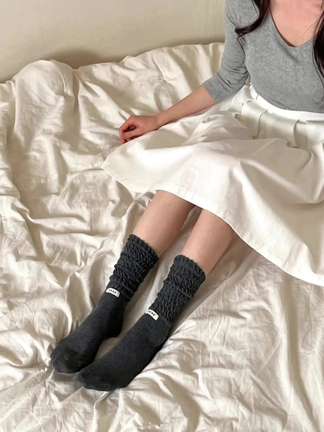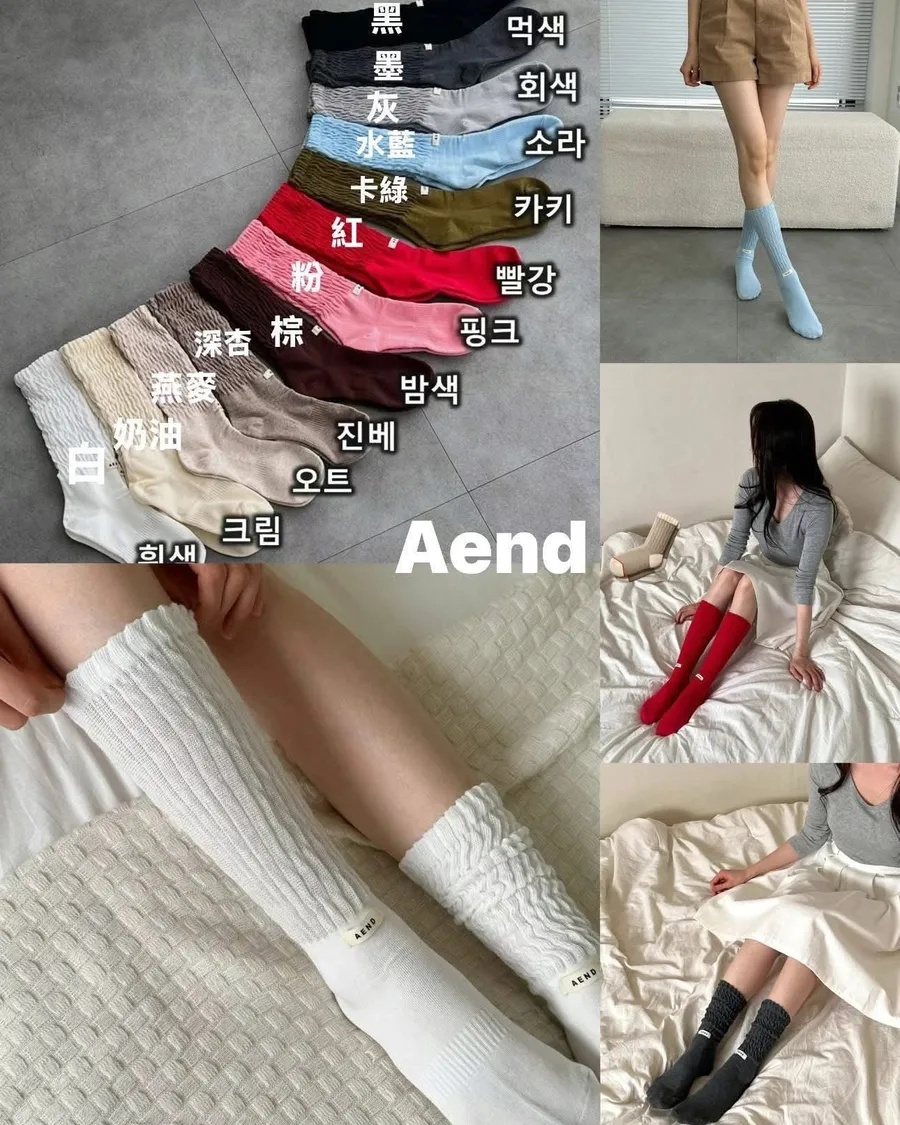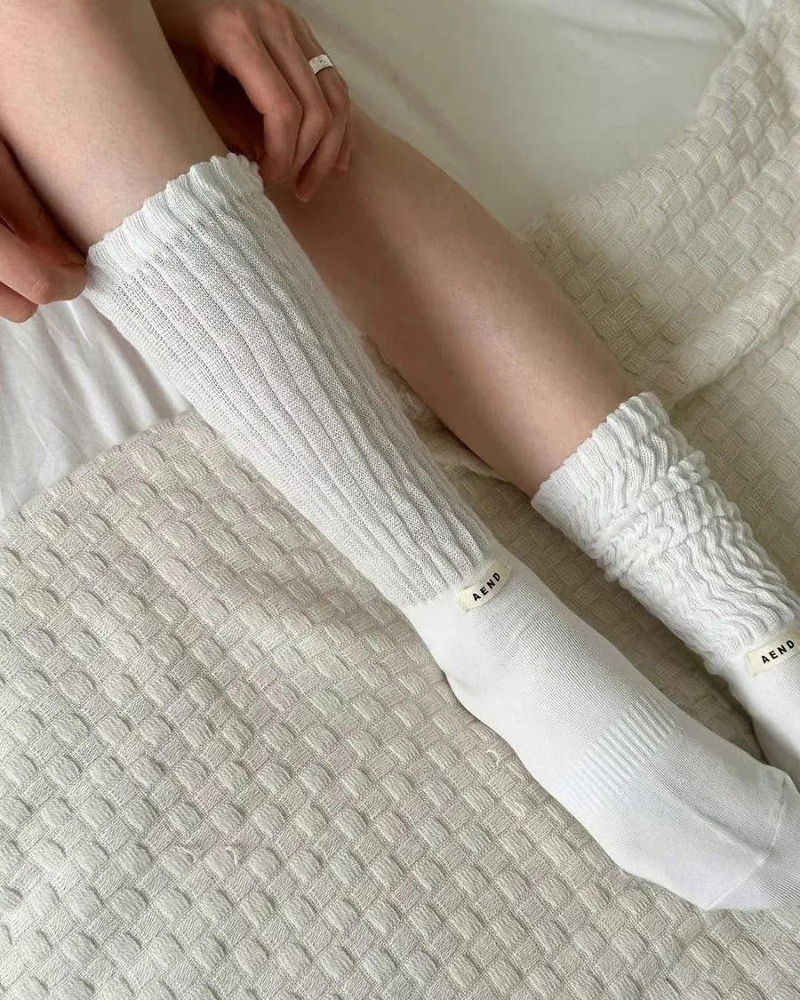 Aned皺皺中筒襪
