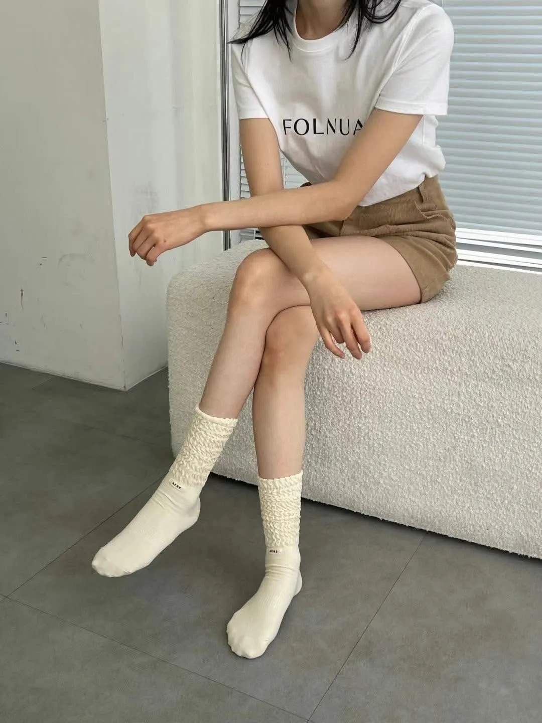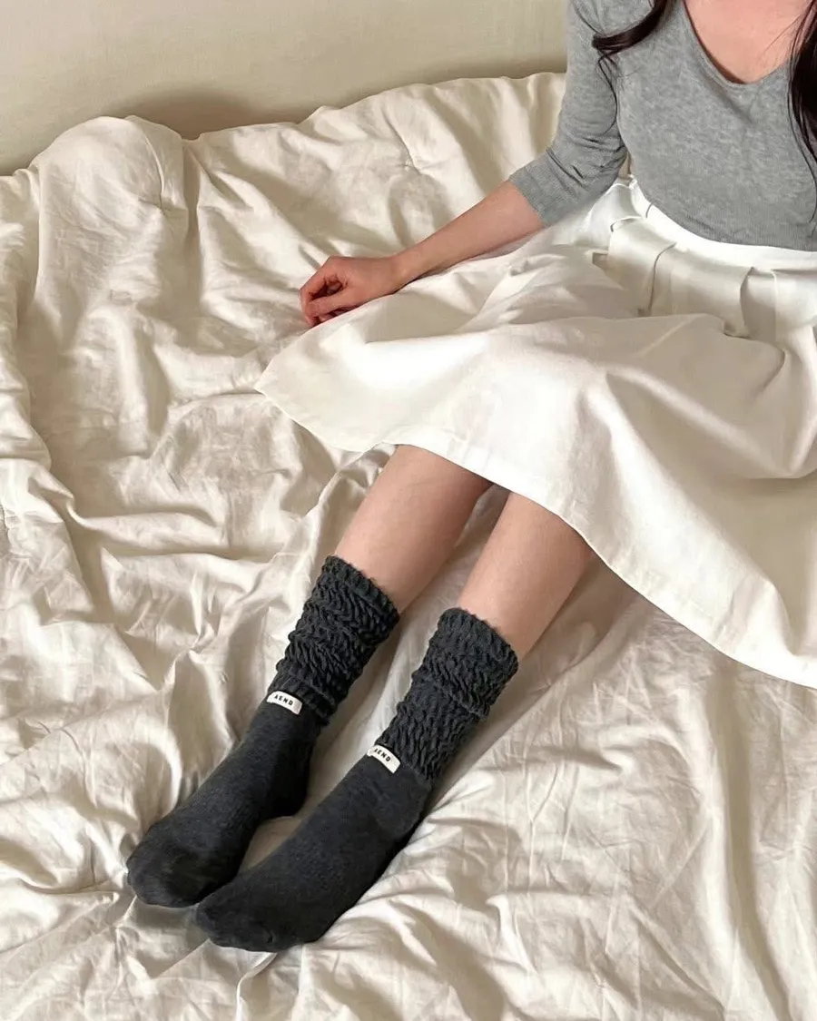 皺皺感中筒襪