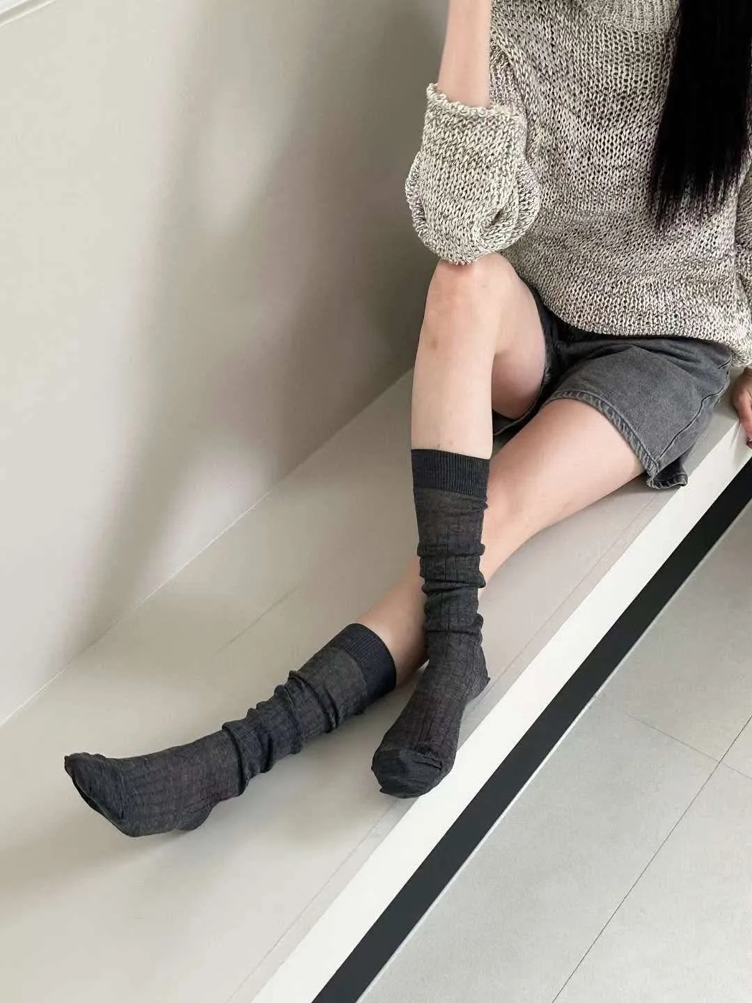 及膝襪往下拉皺皺穿