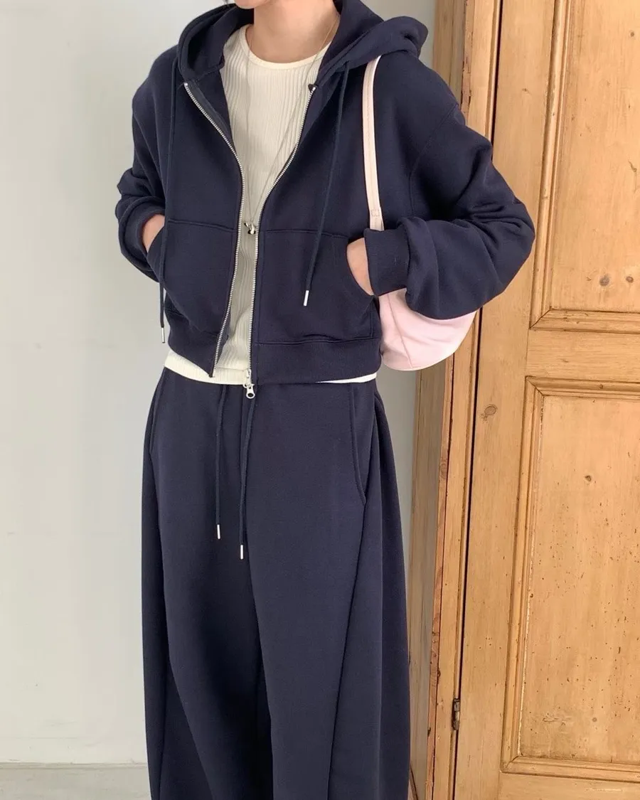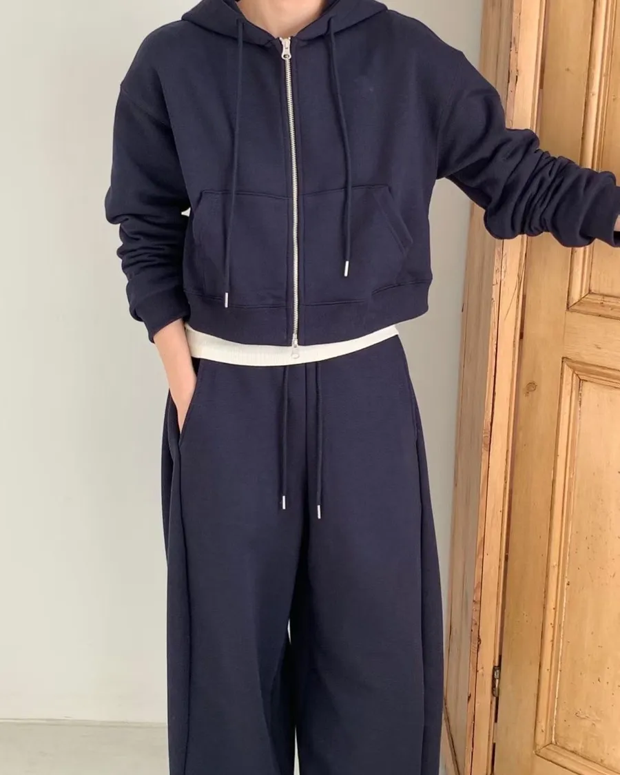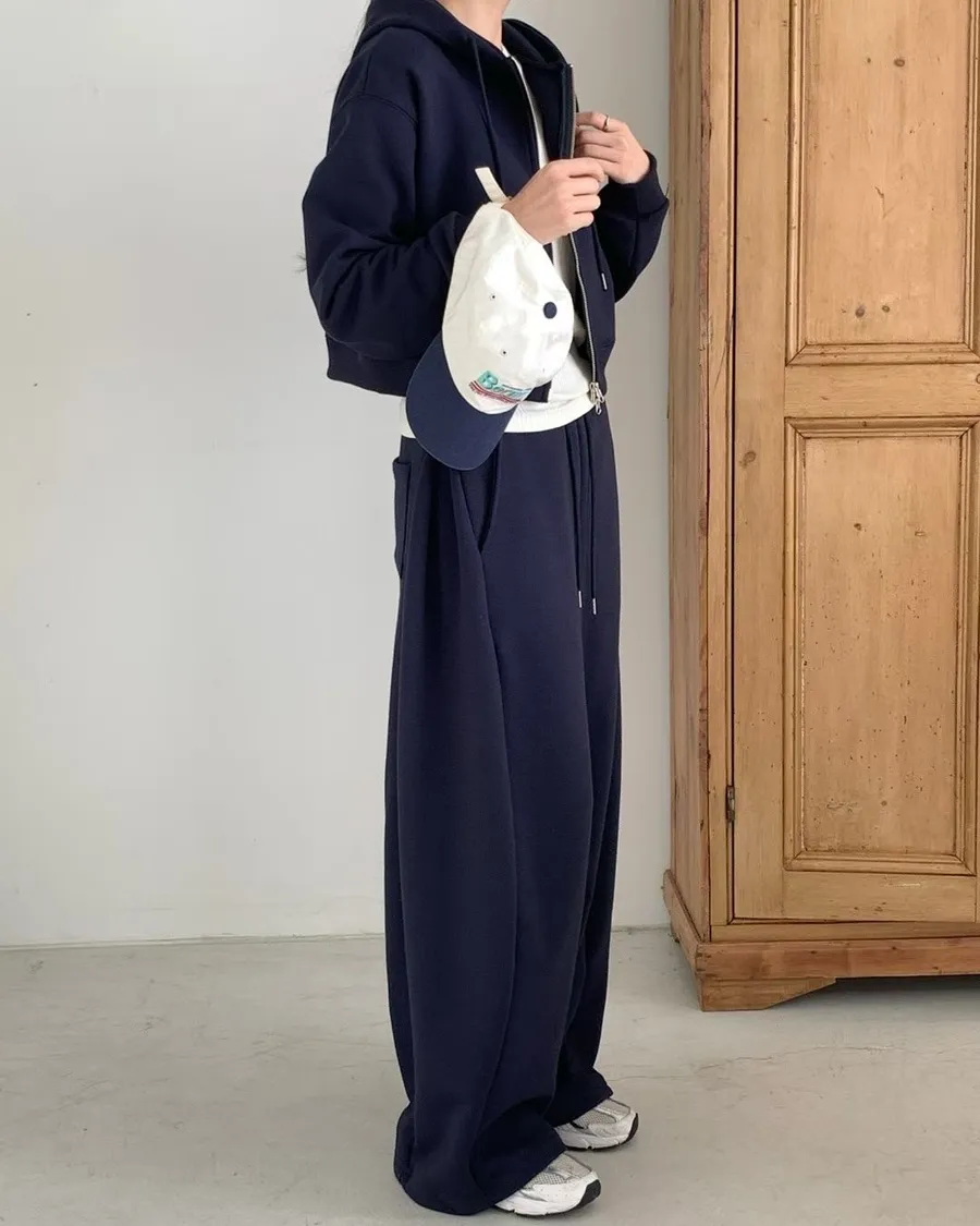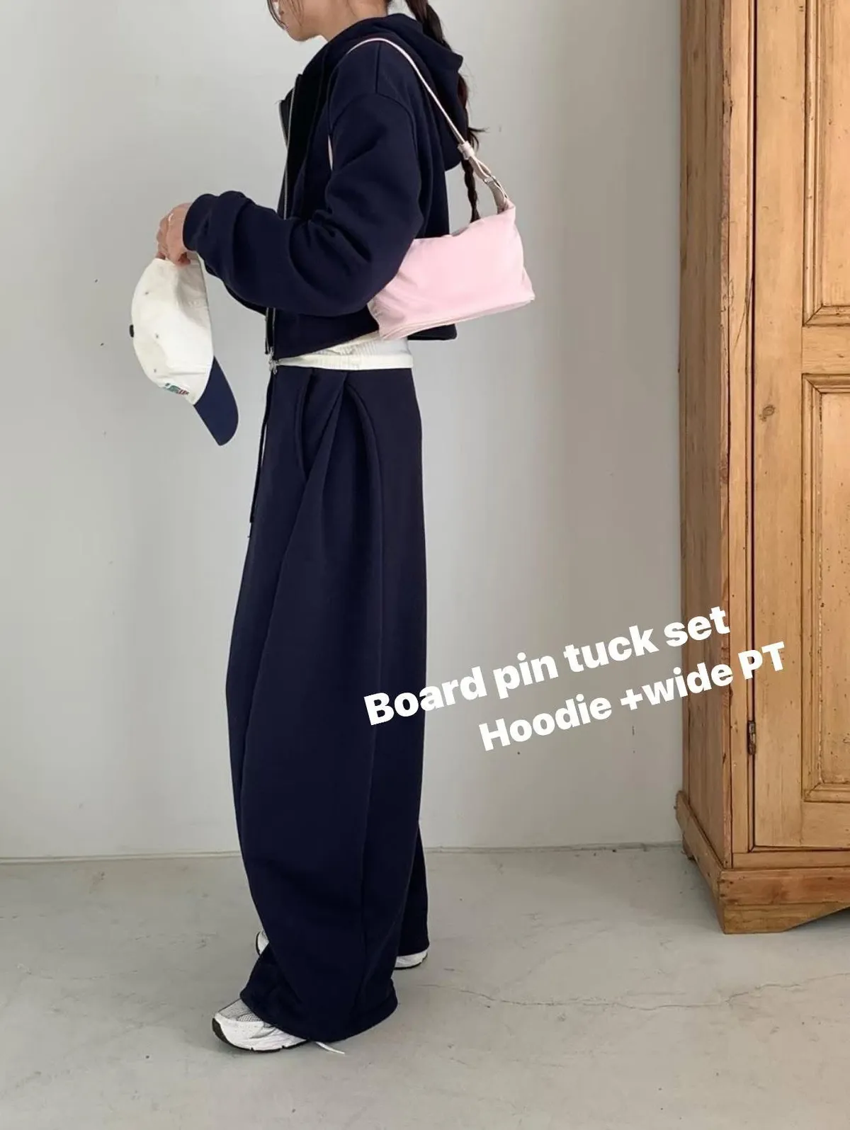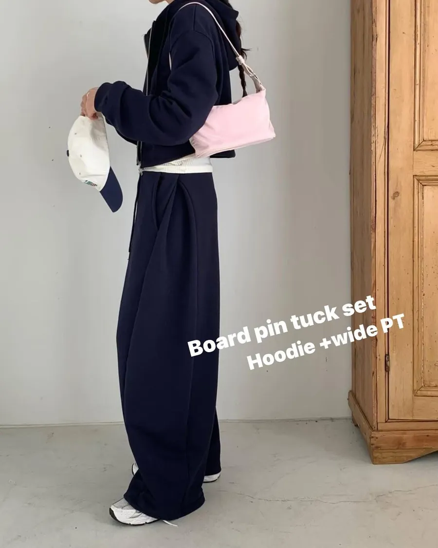 Board pin tuck set 帽踢+折線運動寬褲組合