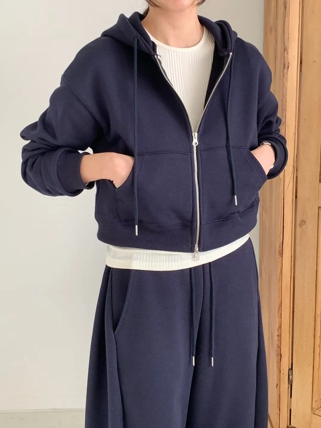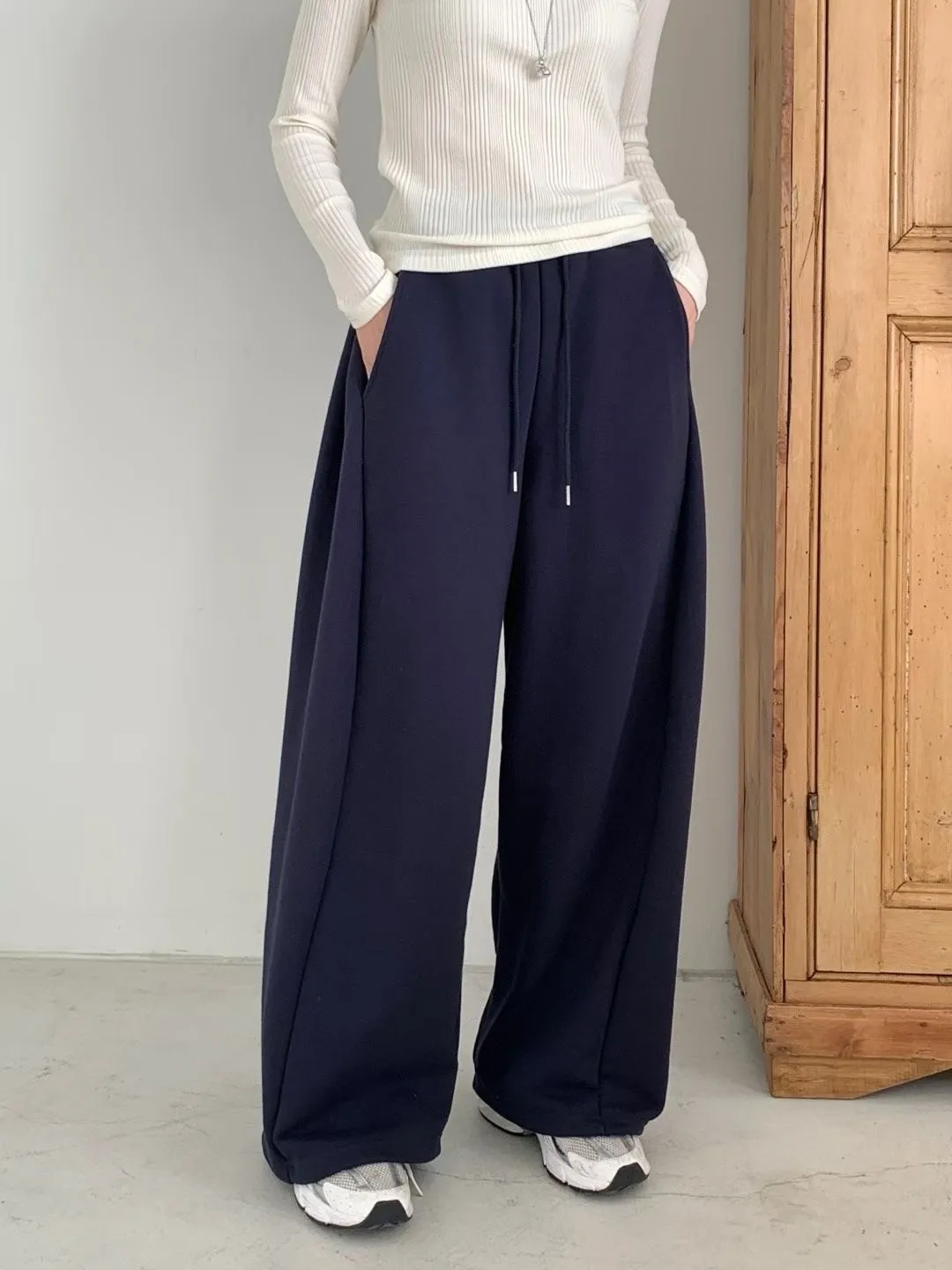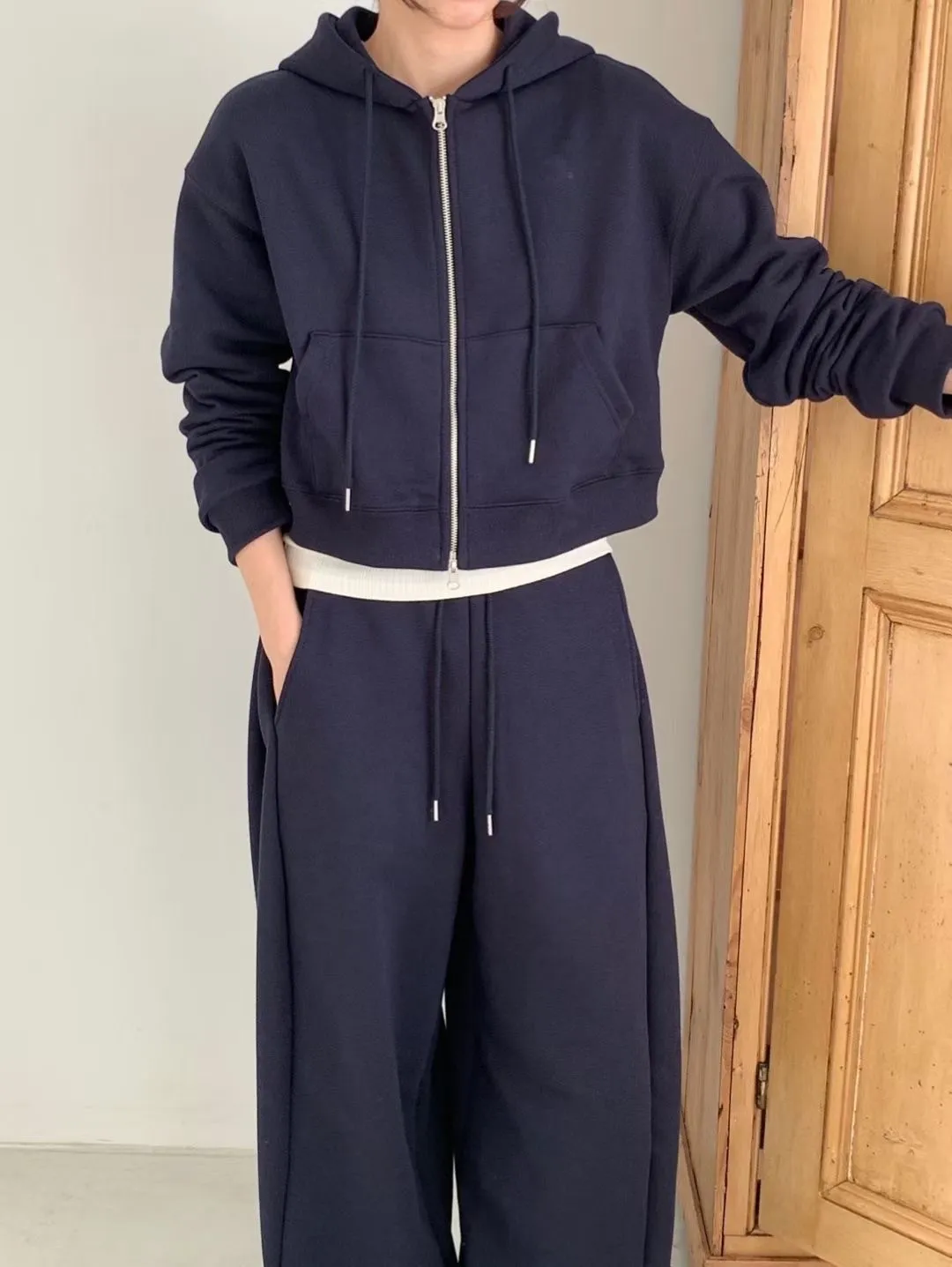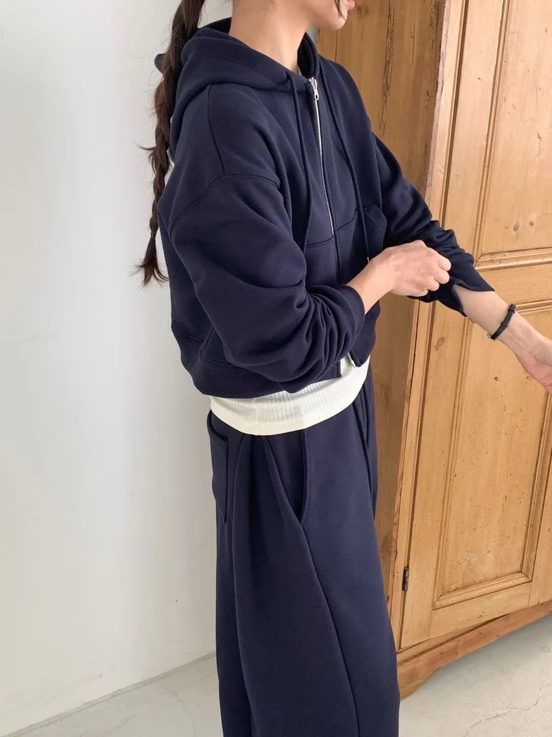 Board pin tuck set 帽踢+折線運動寬褲組合