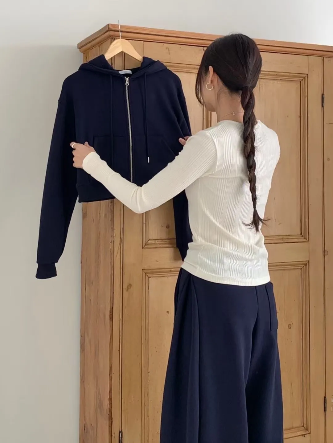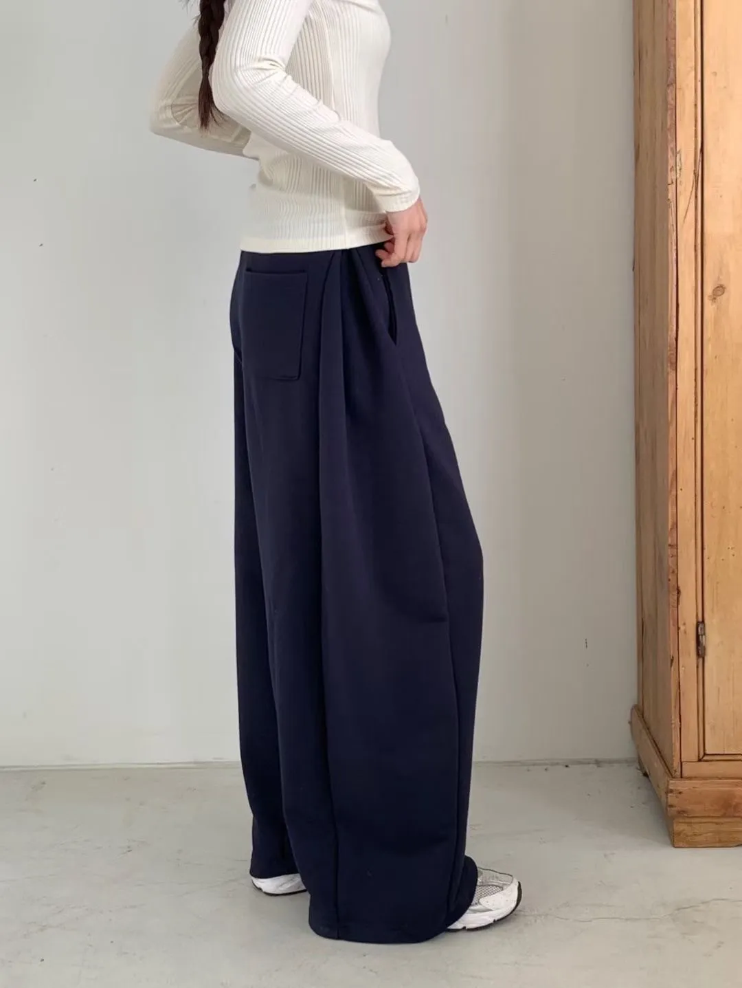 帽踢&側邊折線寬褲