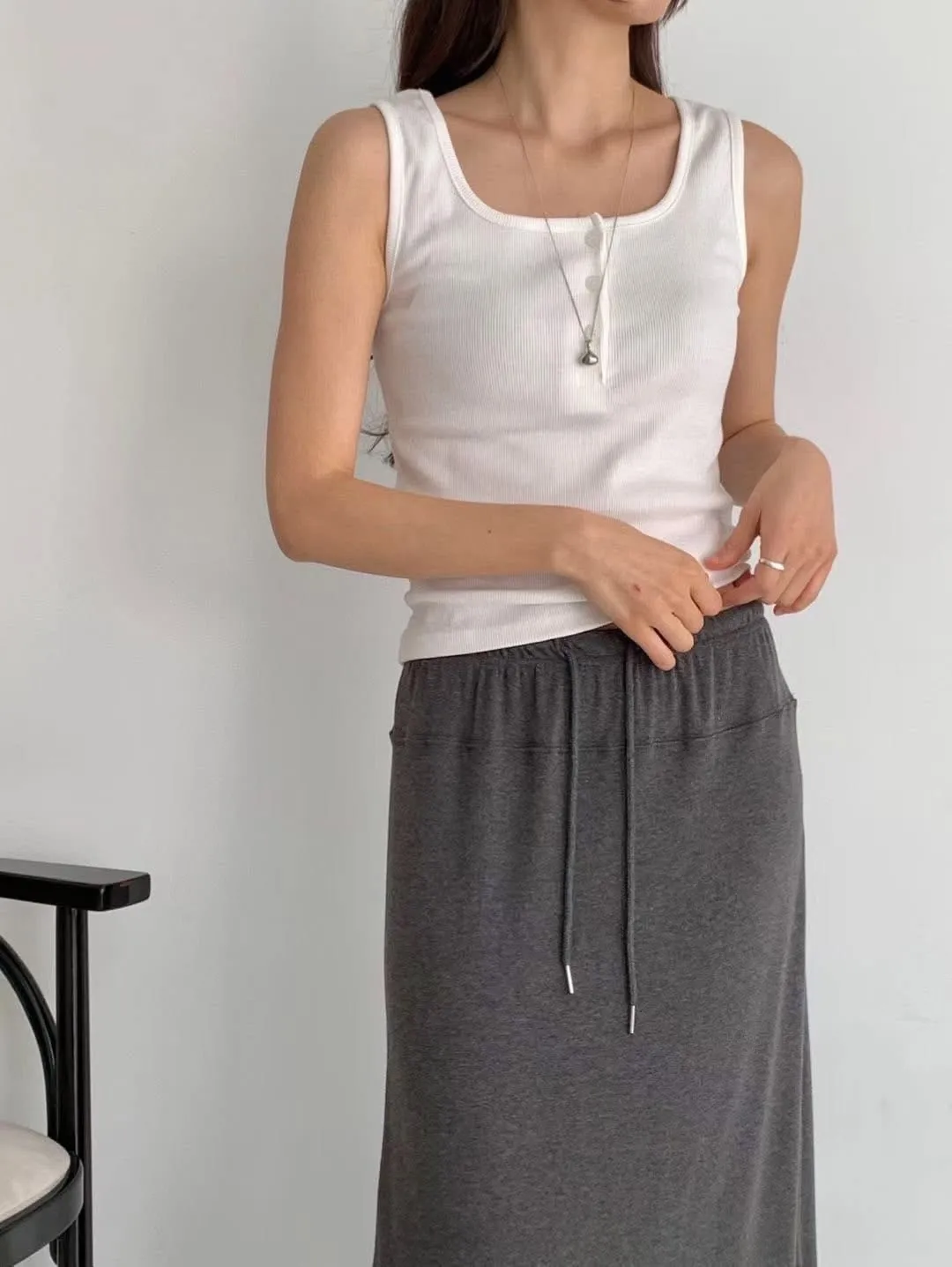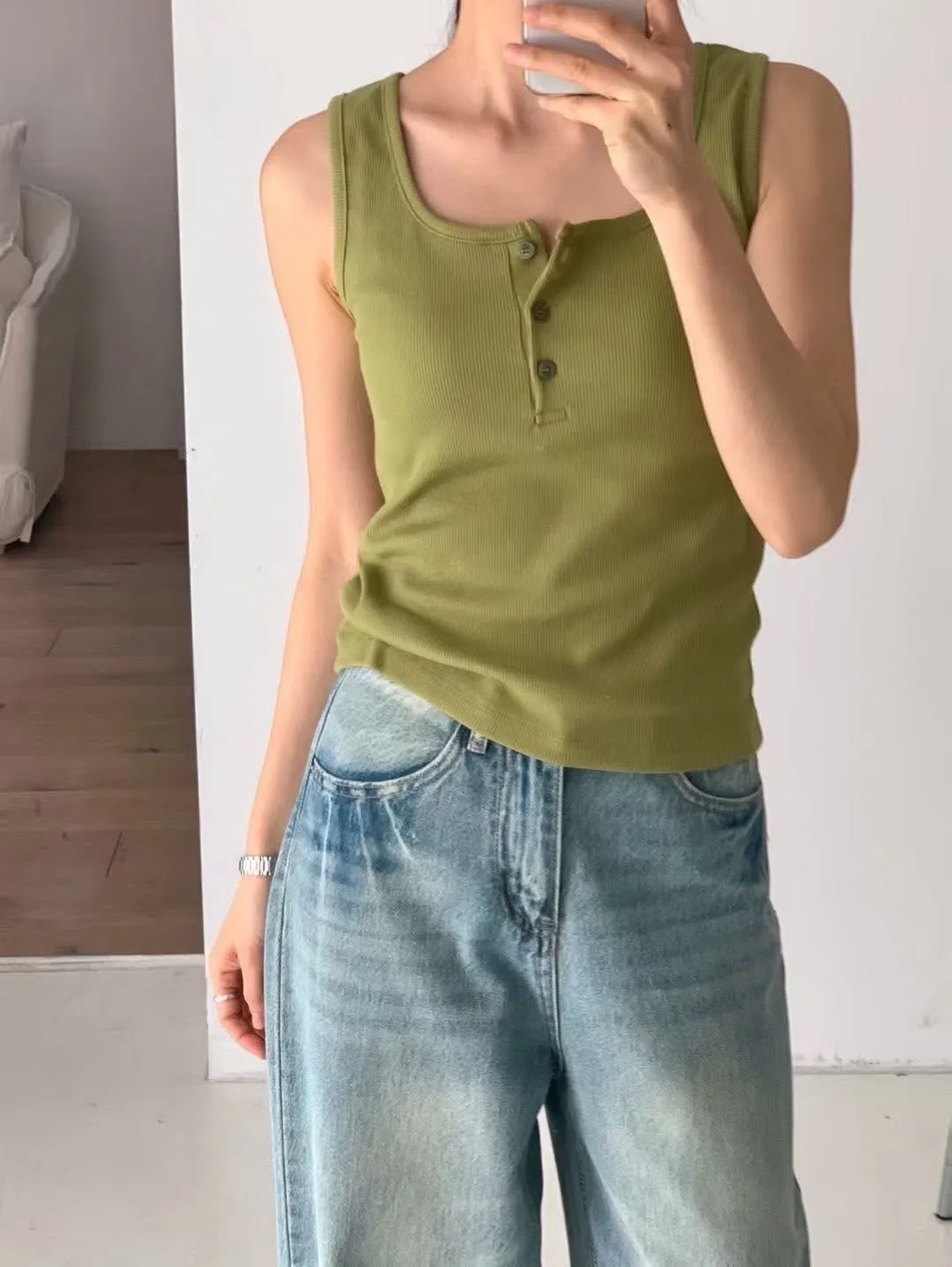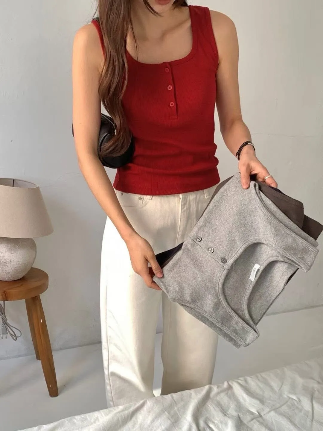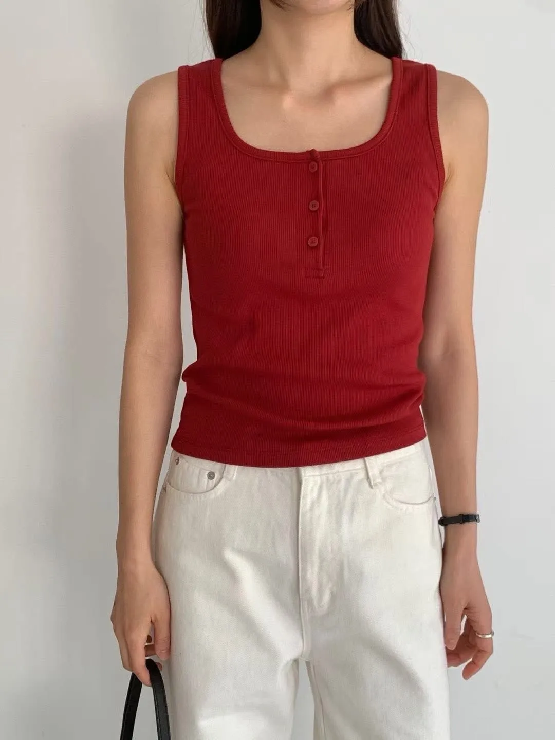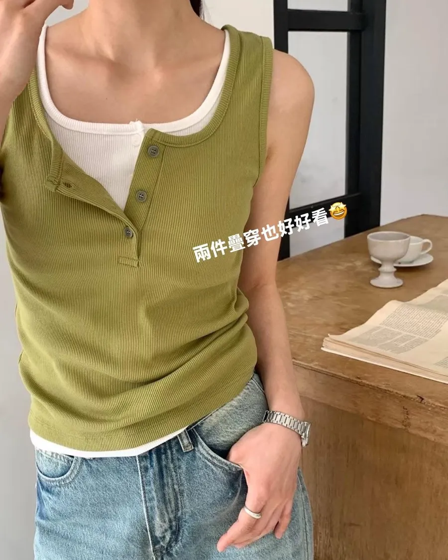 預購商品~ 🥳🥳🥳 任選三件🉐1170 價格:430 顏色:白#橄欖#紅#棕#灰#深藍#黑 尺寸Free size 胸圍37長52.5公分 🥳🥳🥳 棉彈性 混紡背心踢 夏天單穿 也很適合當內搭背心 模特穿兩件疊穿也好好看😻 簡約舒服超好看😍