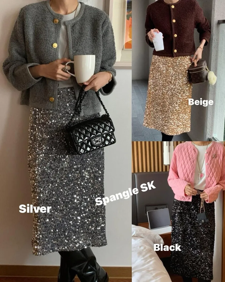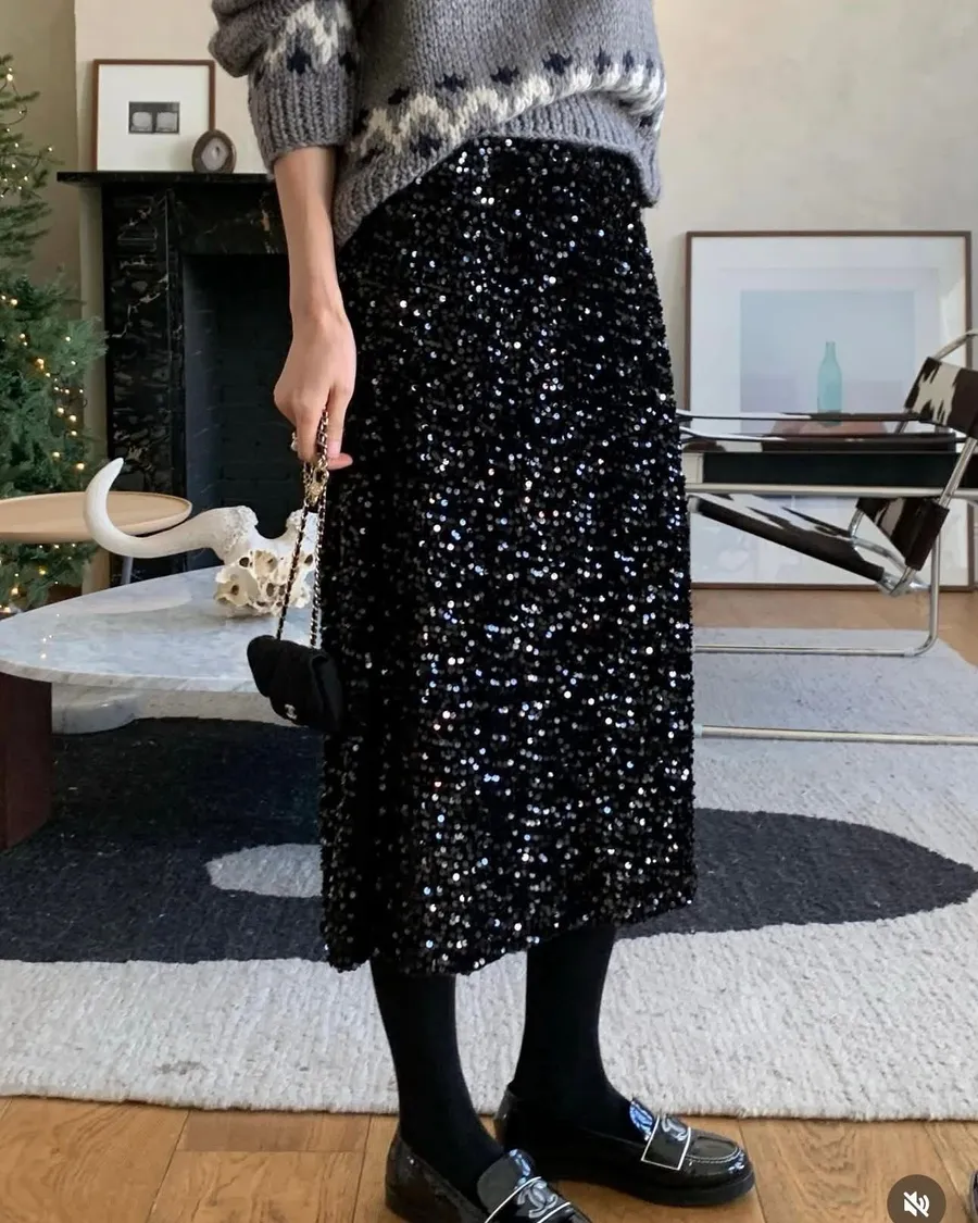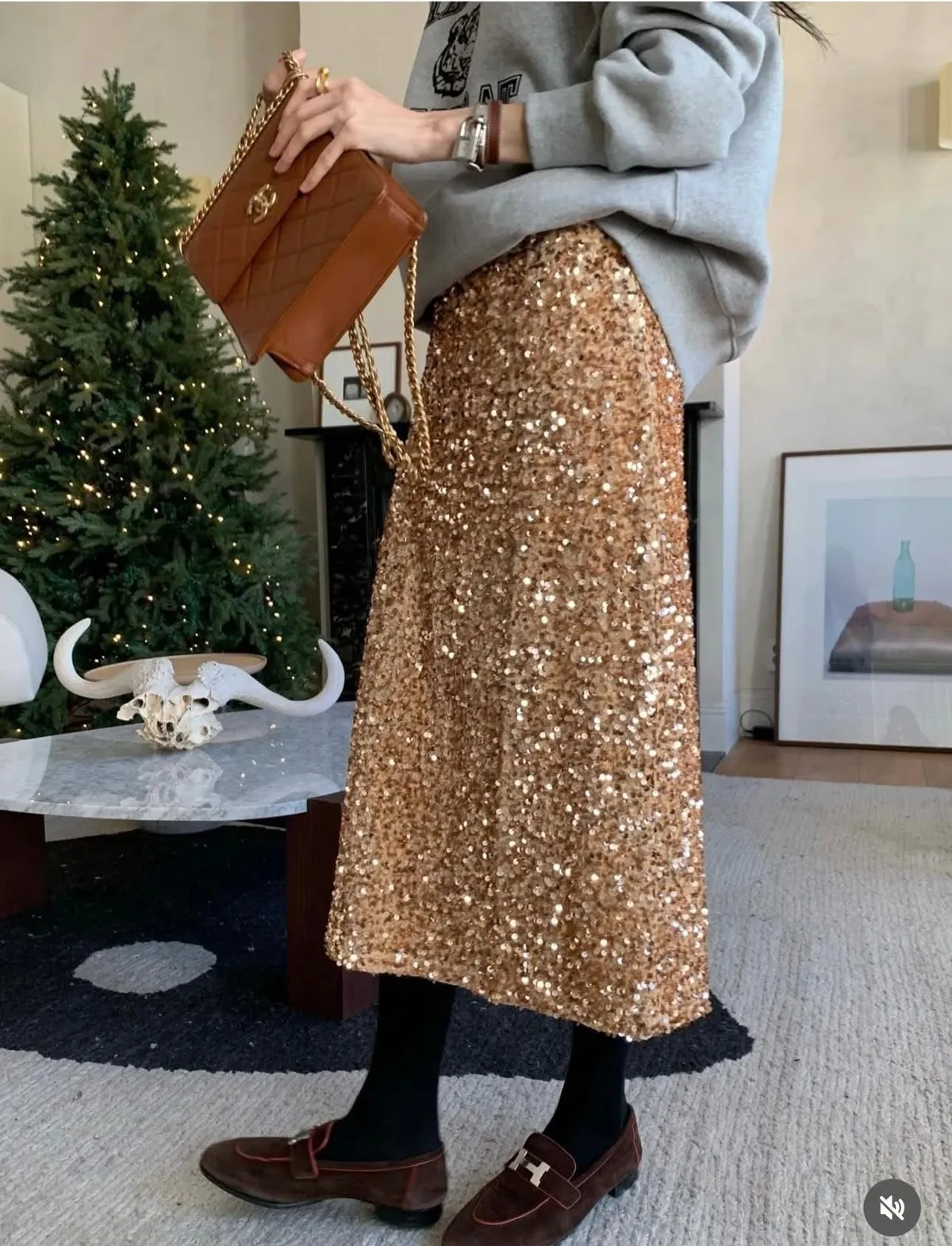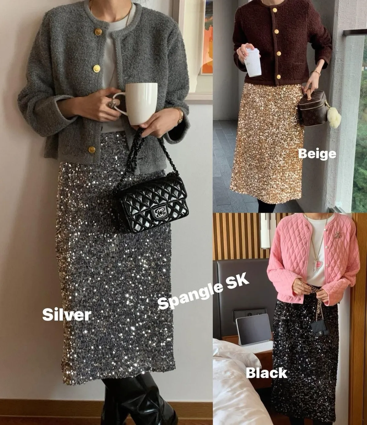Luxury spangle H SK超美亮片裙年末要到了 不管是聖誕節🎄還是尾牙或是聚會 都一定要有的 秘密神器全場矚目的焦點就是妳啦🤩🤩🤩自帶光澤的閃亮華麗裙 視覺感十足彈性超好小XL以下可以~^^