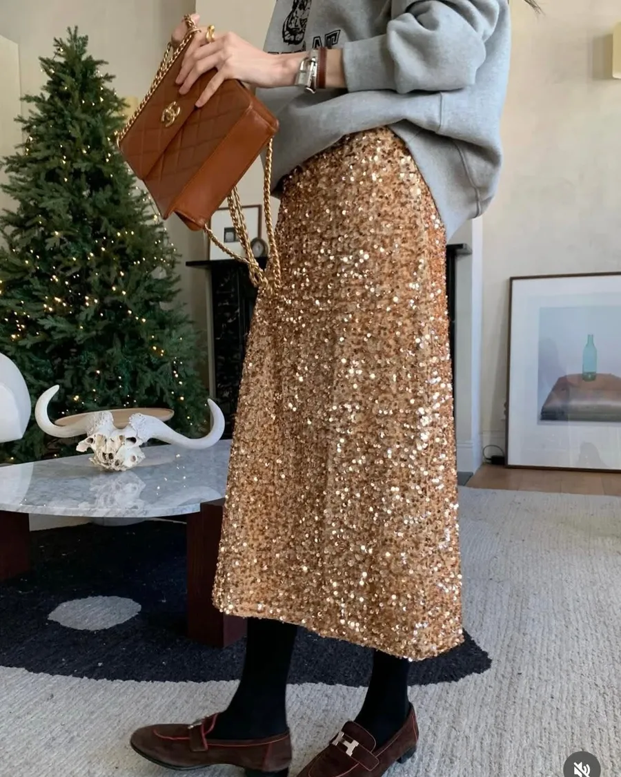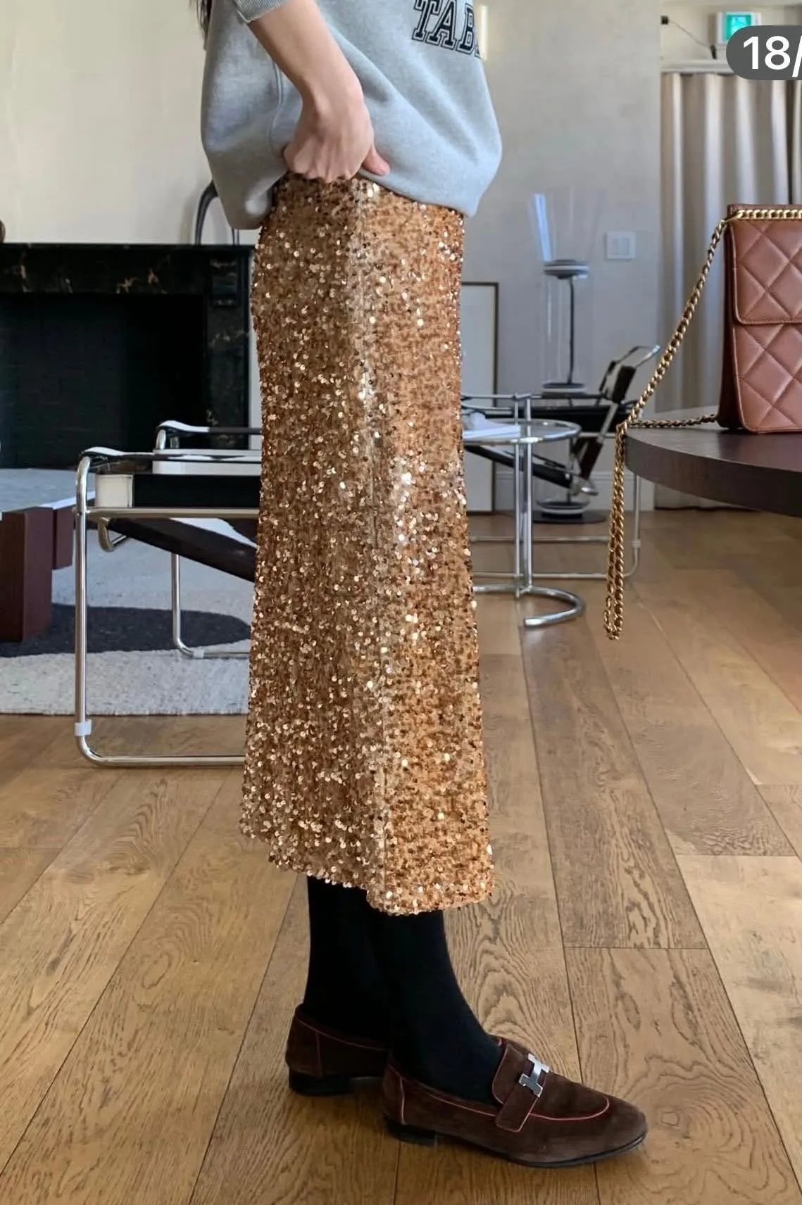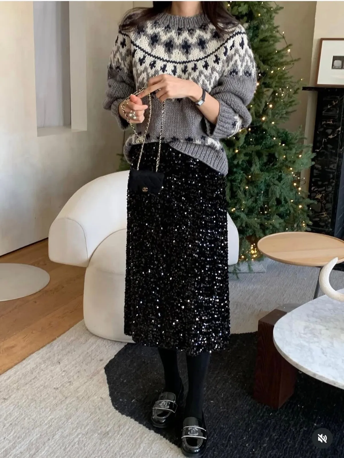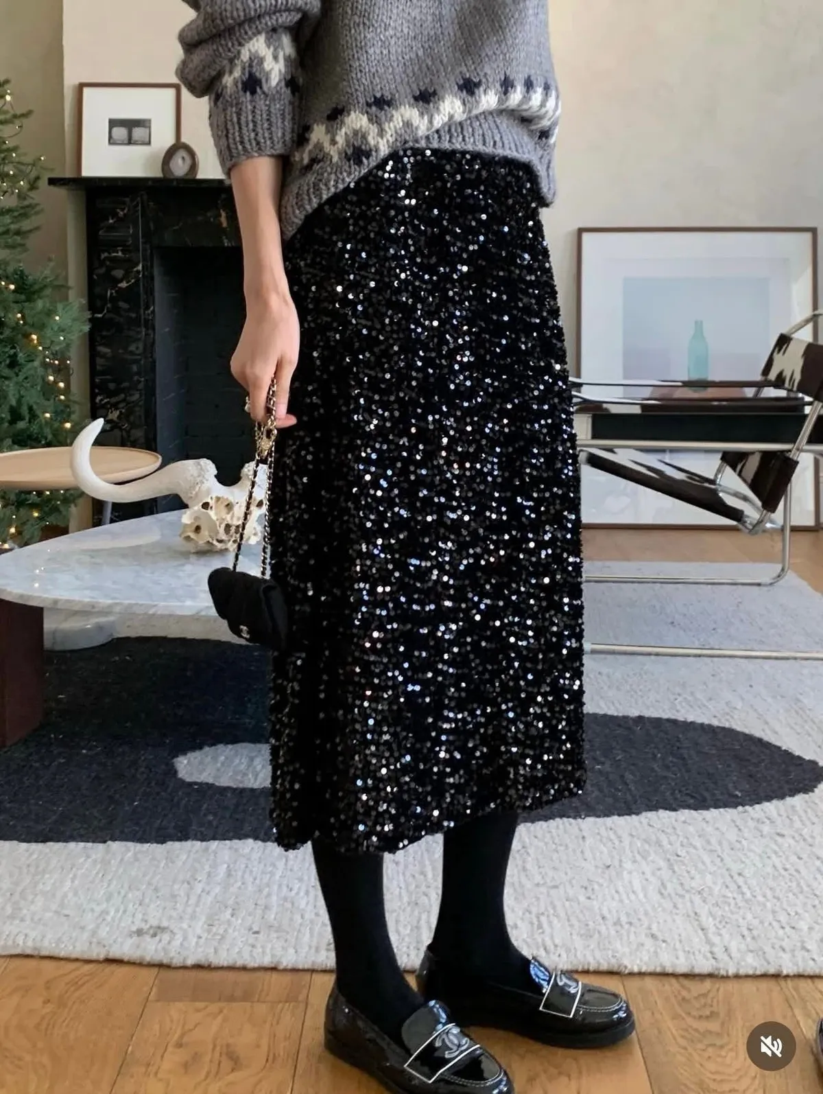 Luxury spangle H SK超美亮片裙年末要到了 不管是聖誕節🎄還是尾牙或是聚會 都一定要有的 秘密神器全場矚目的焦點就是妳啦🤩🤩🤩自帶光澤的閃亮華麗裙 視覺感十足彈性超好小XL以下可以~^^