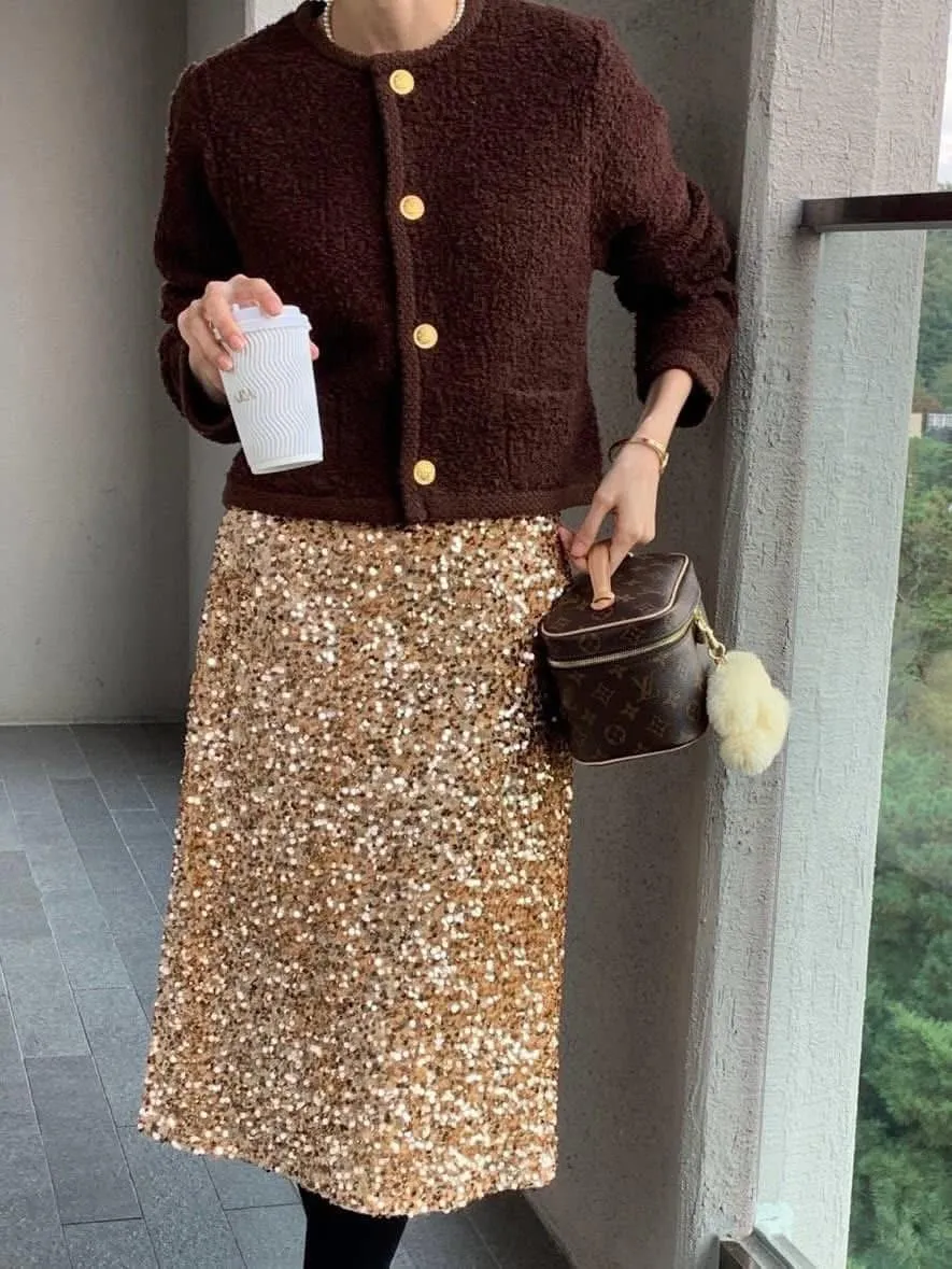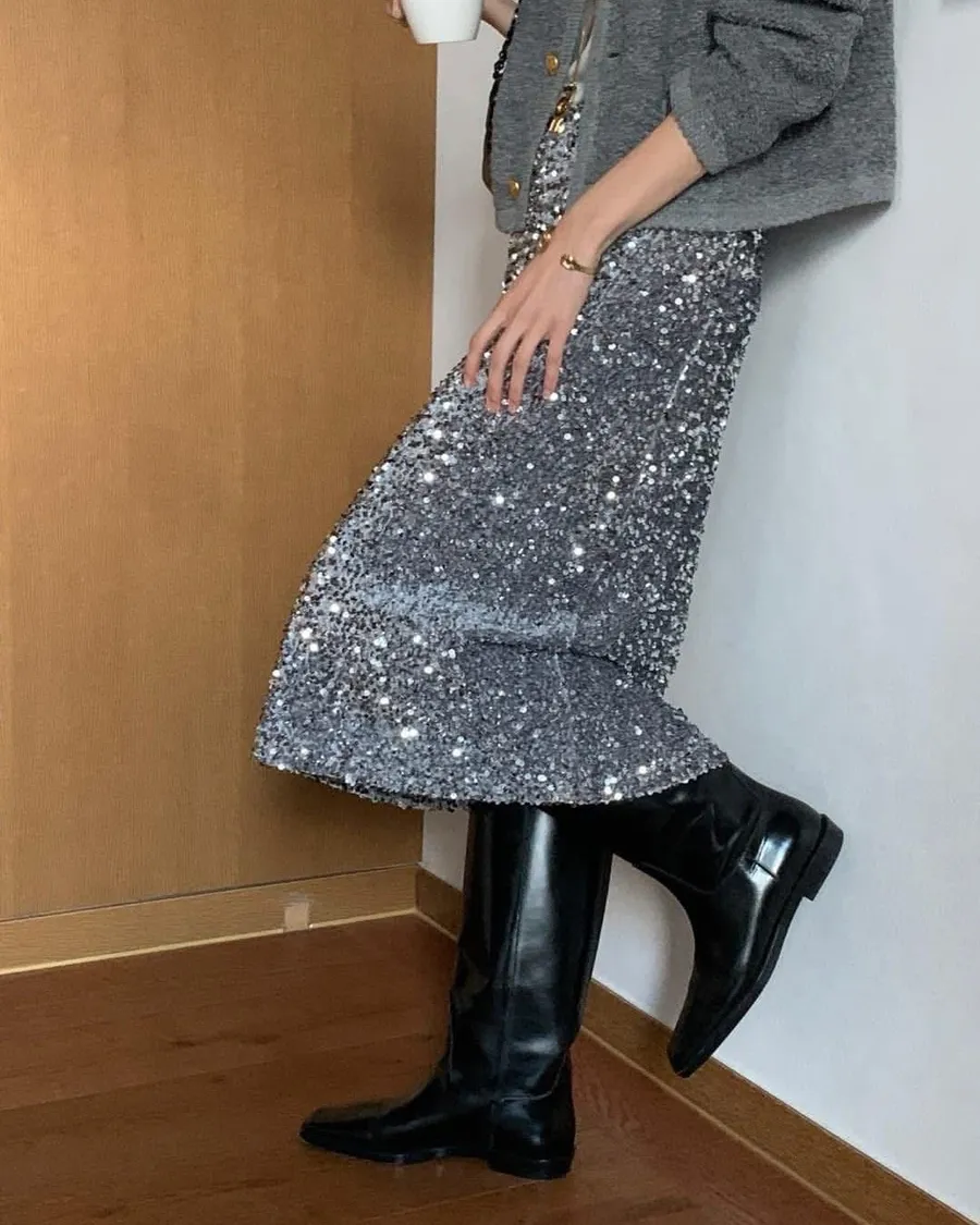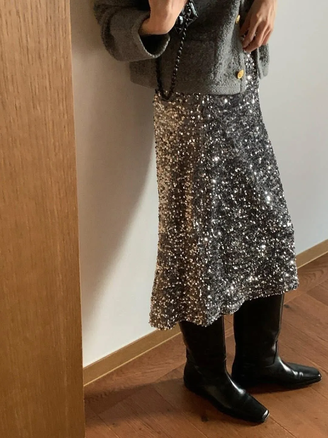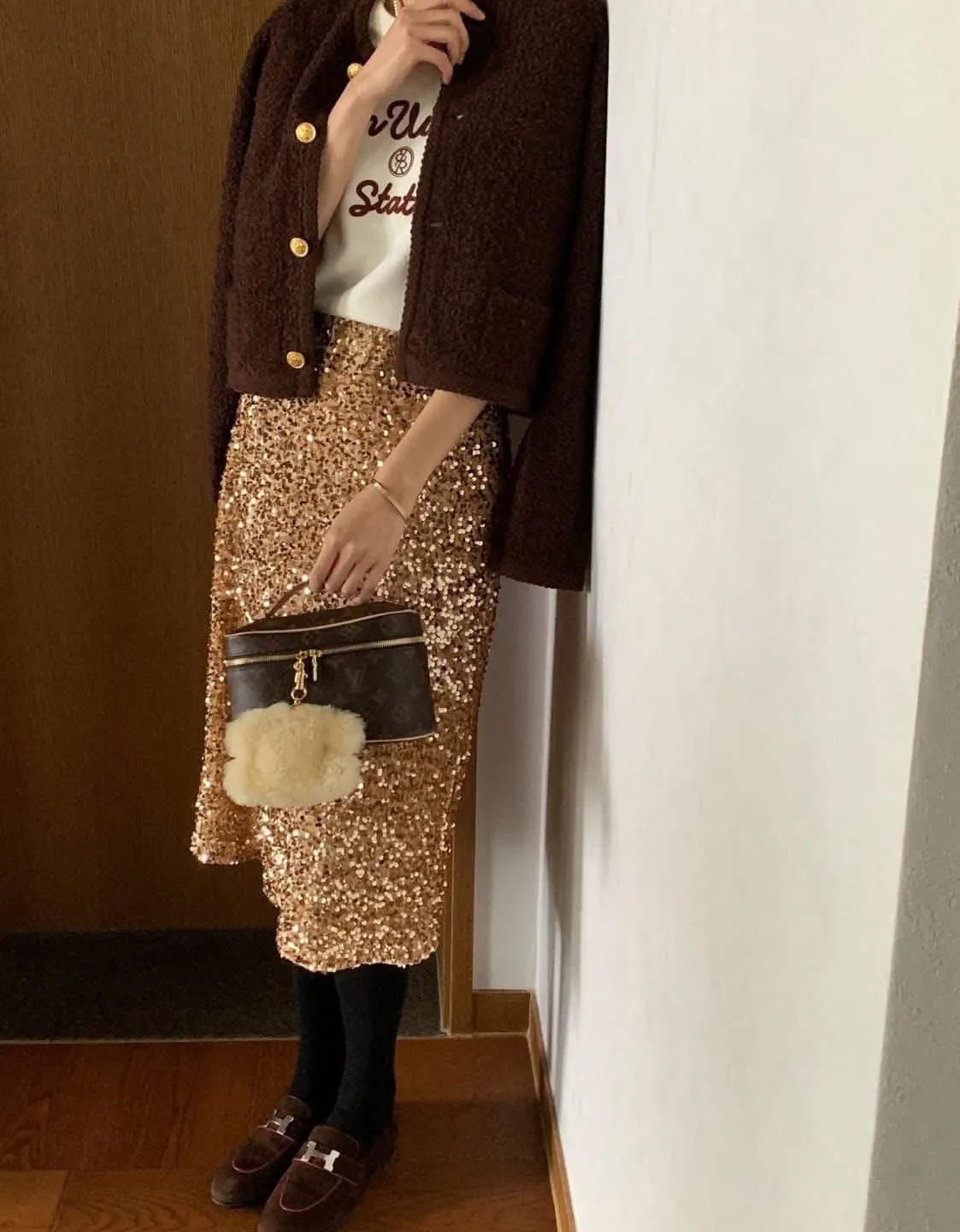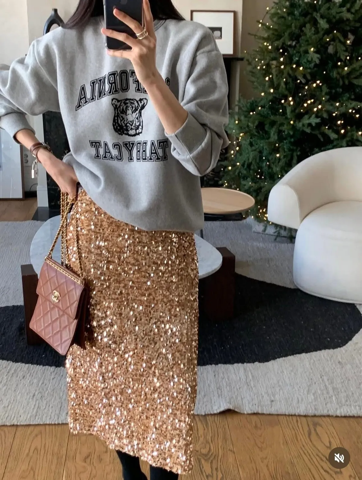 Luxury spangle H SK超美亮片裙年末要到了 不管是聖誕節🎄還是尾牙或是聚會 都一定要有的 秘密神器全場矚目的焦點就是妳啦🤩🤩🤩自帶光澤的閃亮華麗裙 視覺感十足彈性超好小XL以下可以~^^