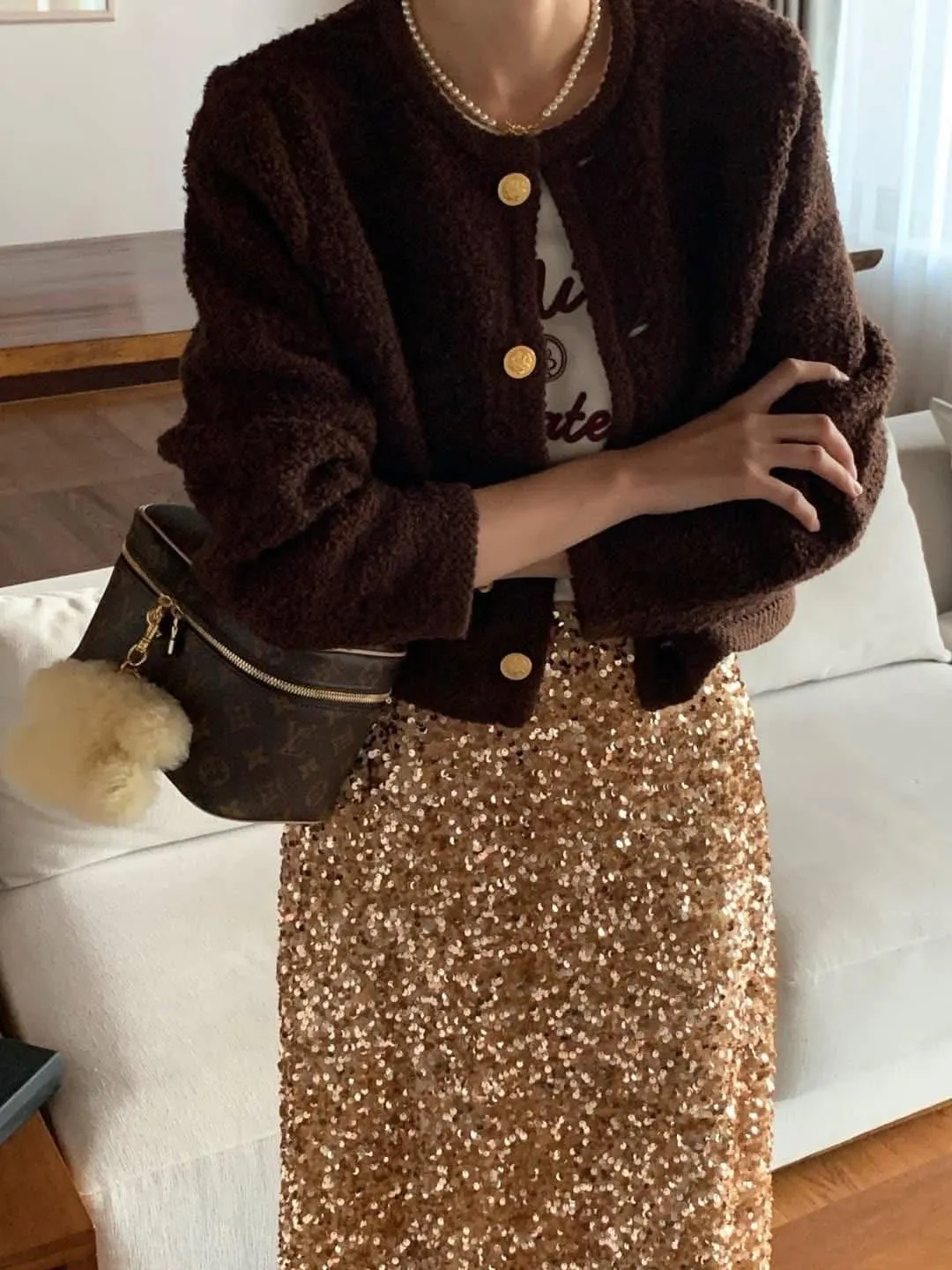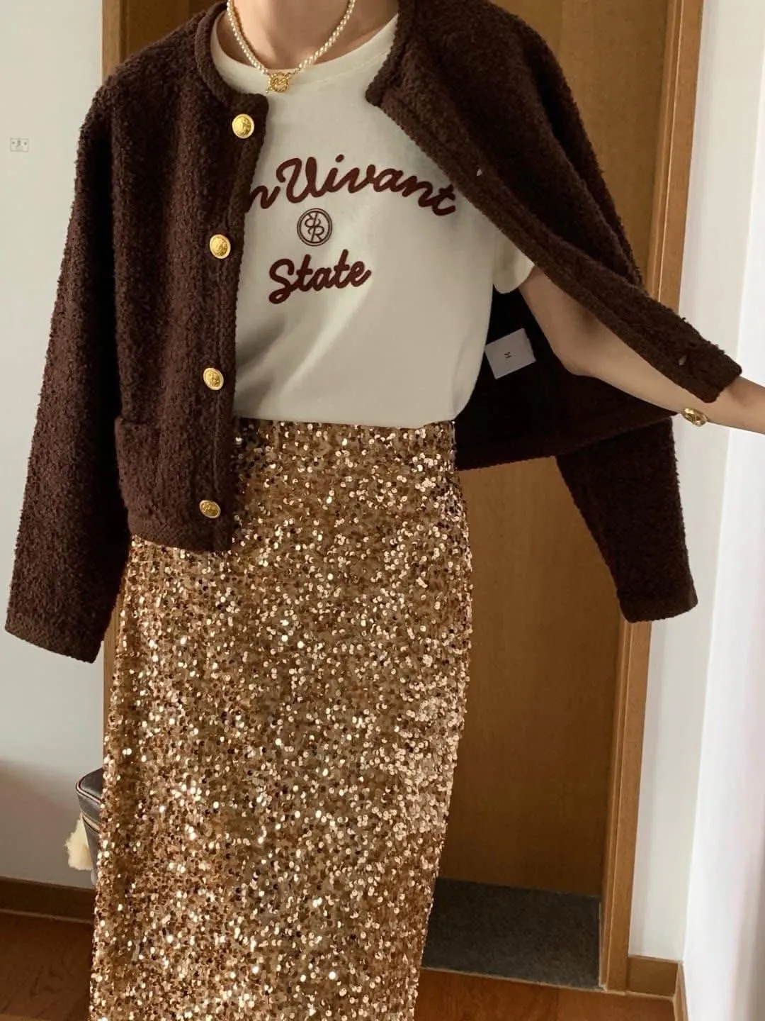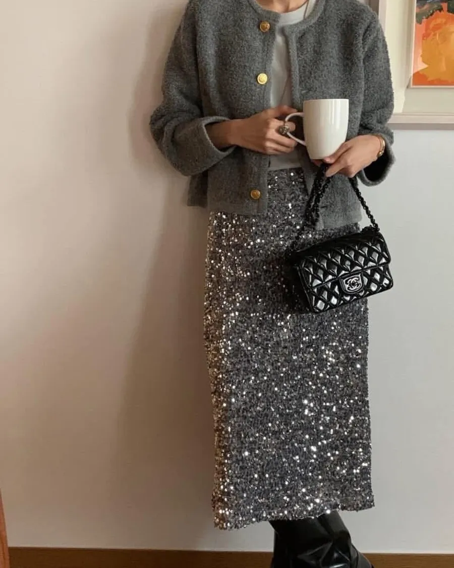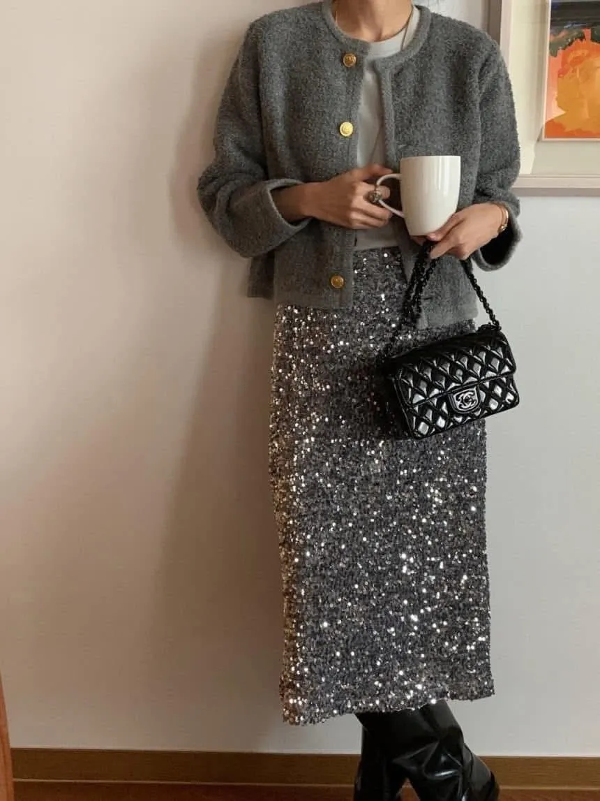 Luxury spangle H SK超美亮片裙年末要到了 不管是聖誕節🎄還是尾牙或是聚會 都一定要有的 秘密神器全場矚目的焦點就是妳啦🤩🤩🤩自帶光澤的閃亮華麗裙 視覺感十足彈性超好小XL以下可以~^^