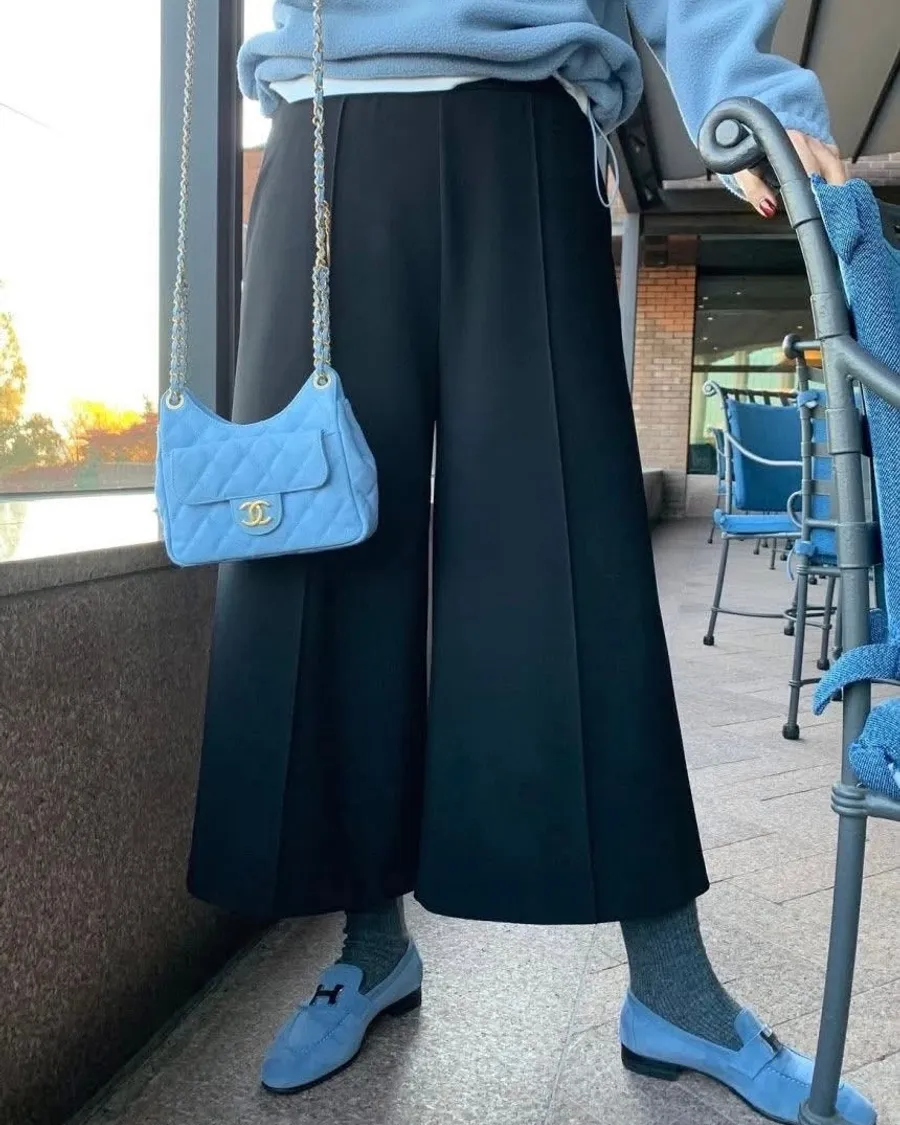 高品質瘋狂彈性立體摺線9分寬褲 冬季❄️磨毛
