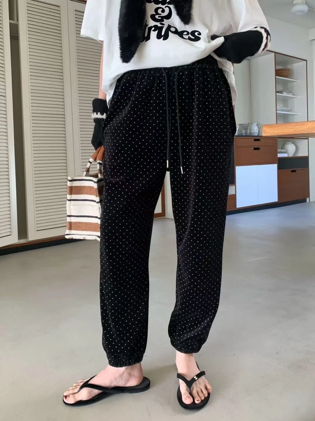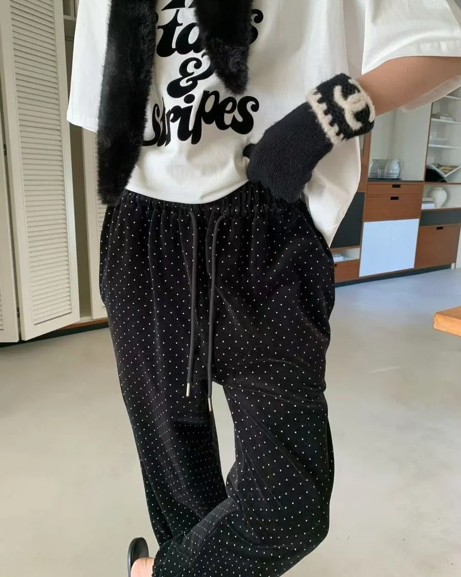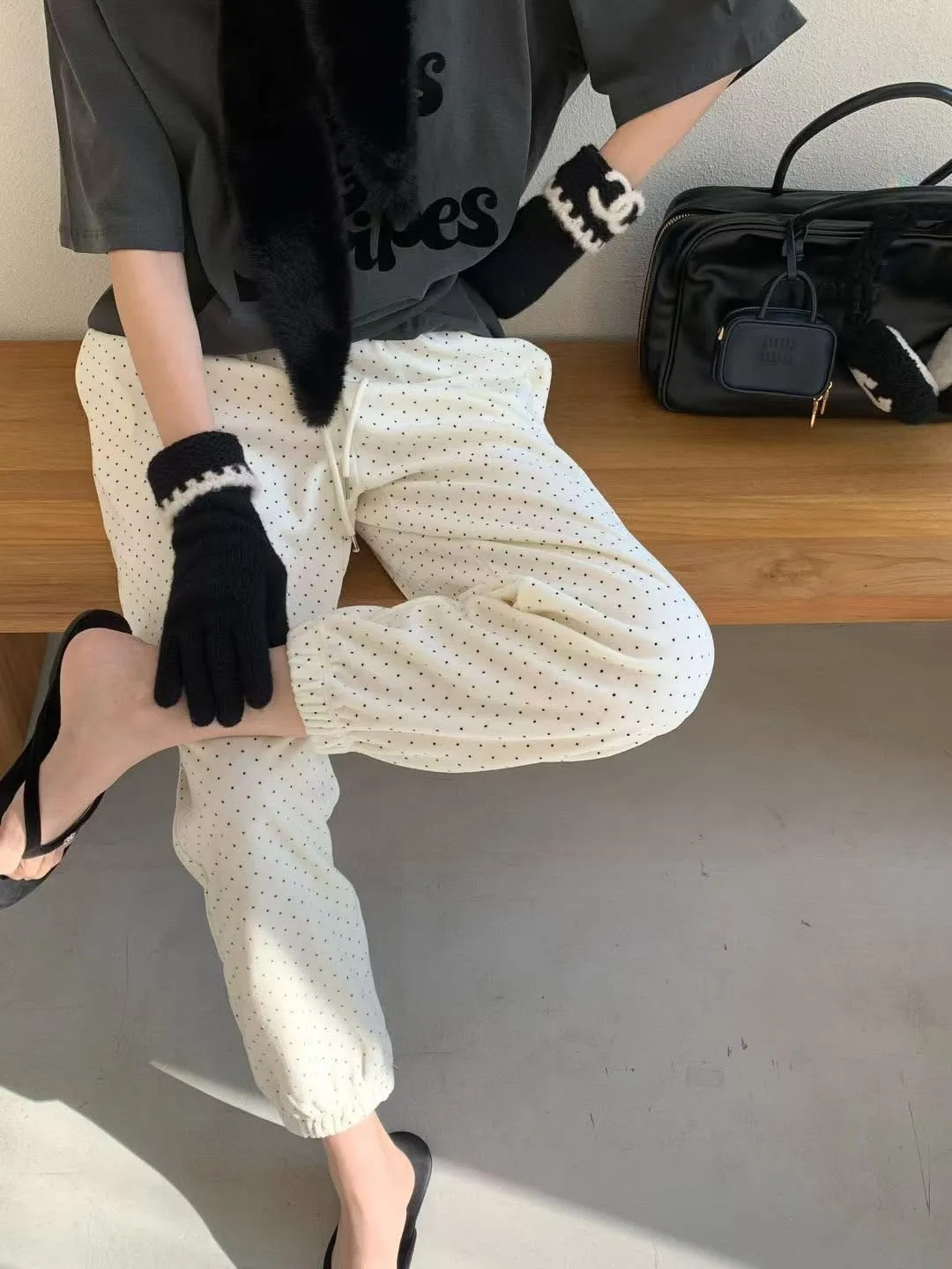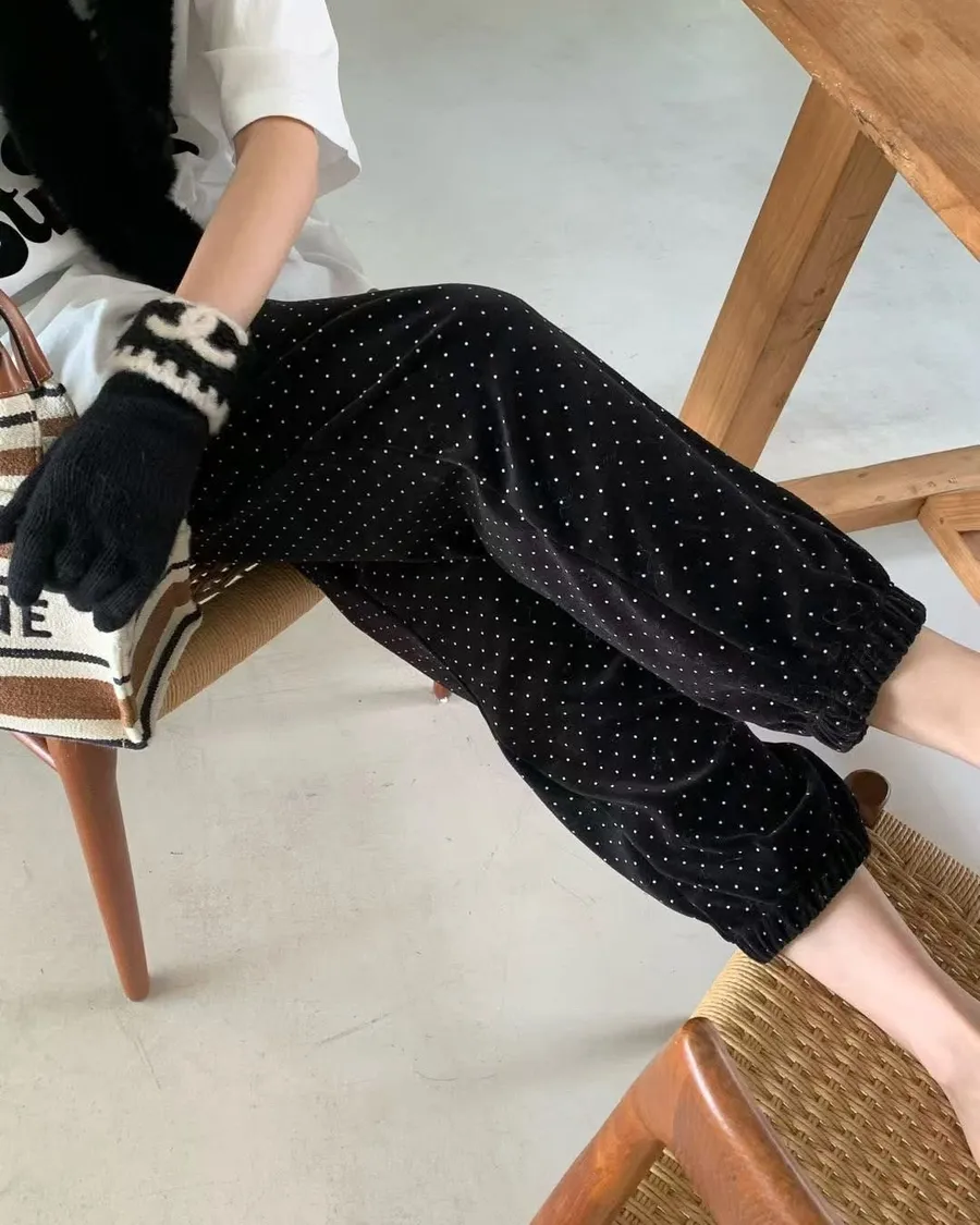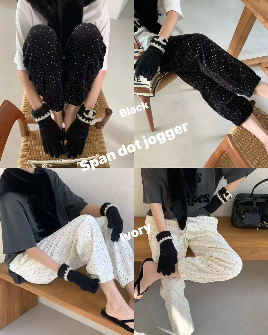 Span dot jogger彈性暖暖束口休閒褲質感超好、超可愛的點點褲休閒也可以穿得很時尚超級顯瘦的休閒褲可愛隨性風格質感💯尺寸(cm): free sizeSlim fitS到小L以下都可以穿腰圍鬆緊帶32、大腿30、臀50、褲長91#模特兒為S號160左右身材#空媽現在168 / 70太緊😭😭