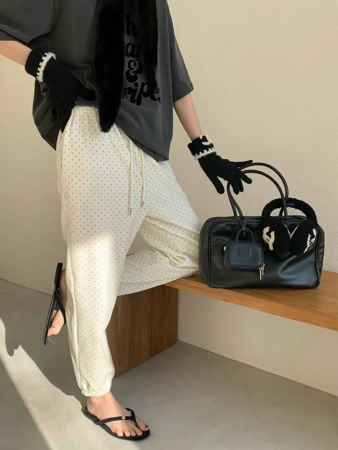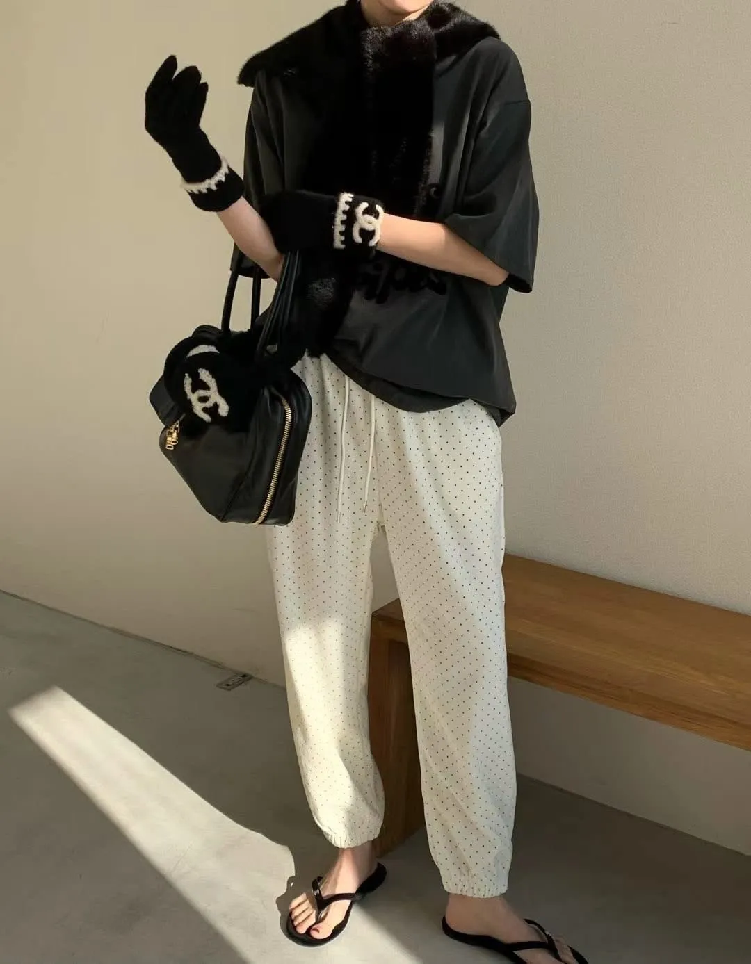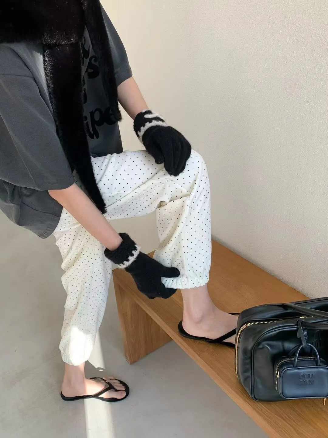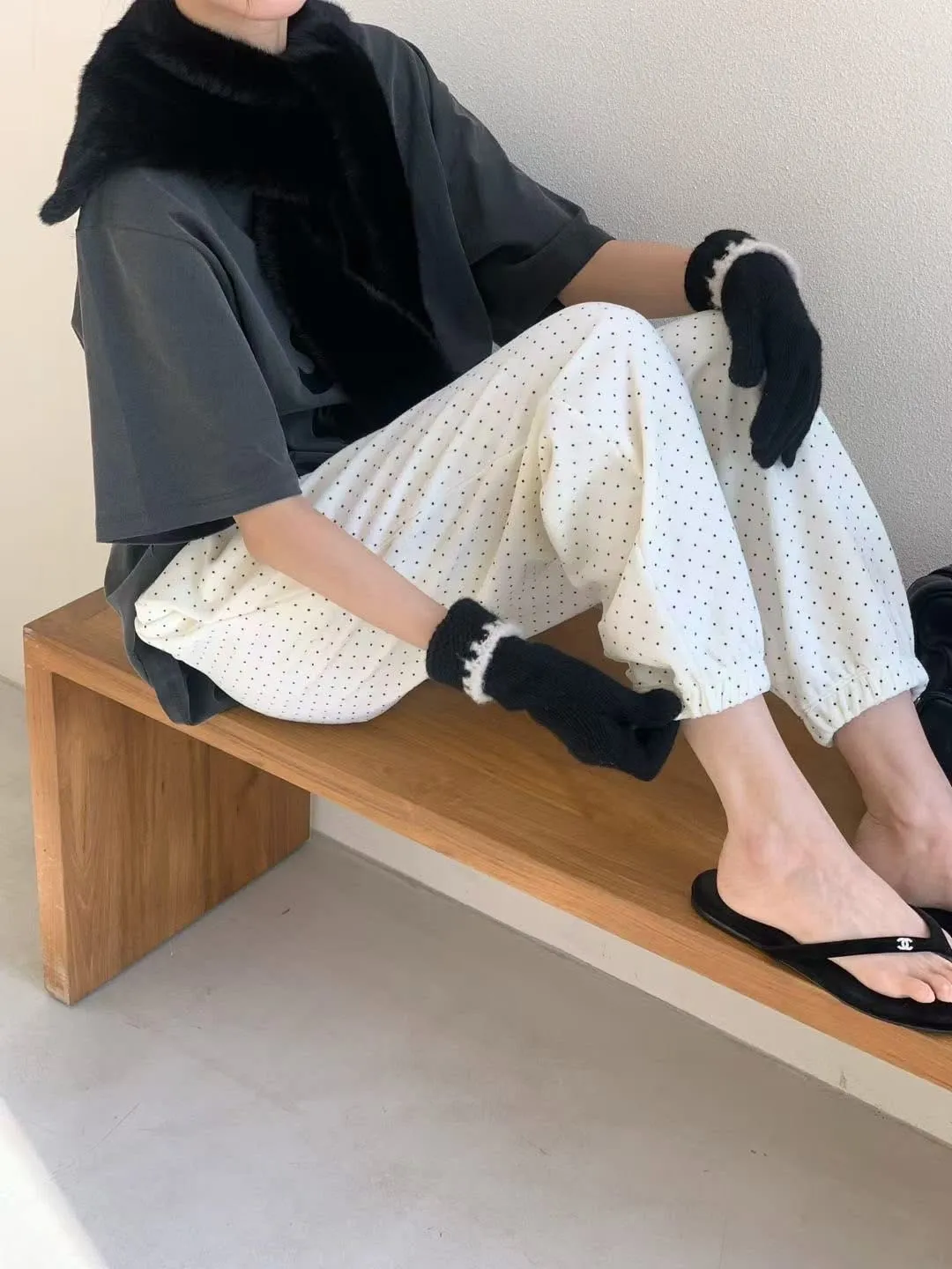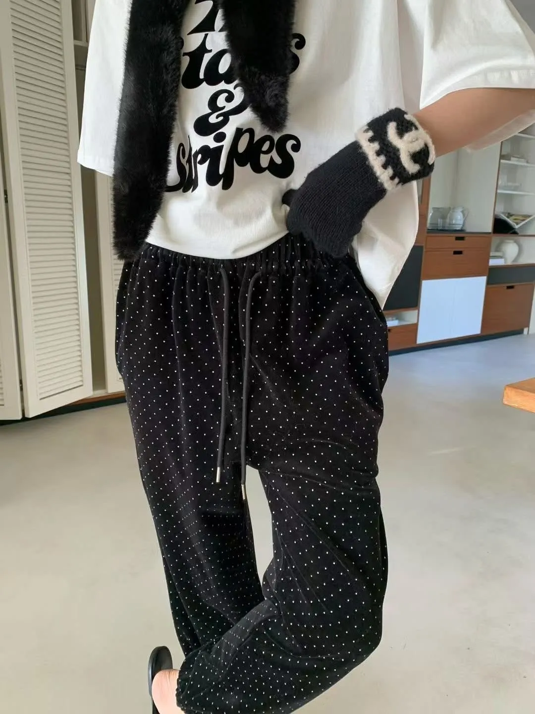Span dot jogger彈性暖暖束口休閒褲質感超好、超可愛的點點褲休閒也可以穿得很時尚超級顯瘦的休閒褲可愛隨性風格質感💯尺寸(cm): free sizeSlim fitS到小L以下都可以穿腰圍鬆緊帶32、大腿30、臀50、褲長91#模特兒為S號160左右身材#空媽現在168 / 70太緊😭😭