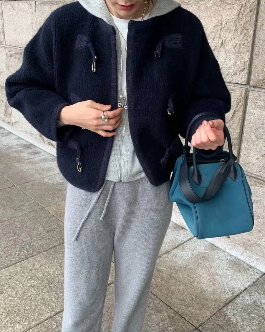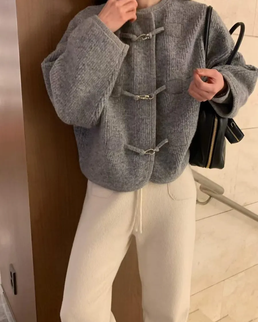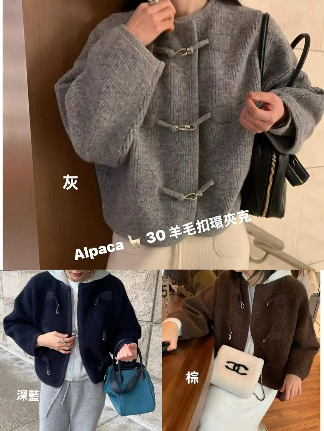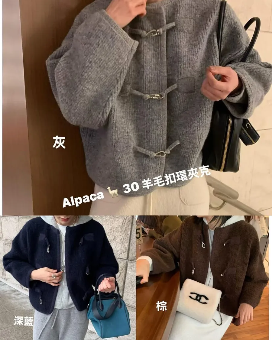 Alpaca &Wool buckle knit JK羊駝羊毛高質感扣環夾克高品質羊駝30 %➕羊毛高密度針織經典時尚扣環設計質感超好且有型的夾克在寒冷的秋冬必備單品尺寸free sizeS到XL都可以穿#模特兒為S號160左右身材