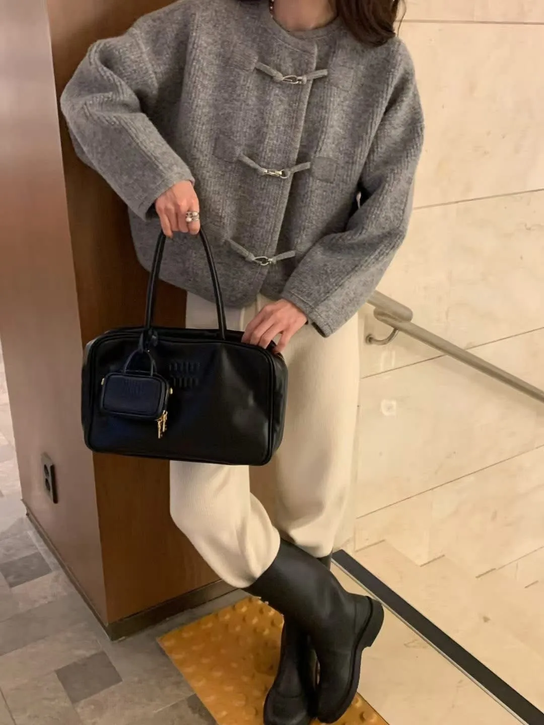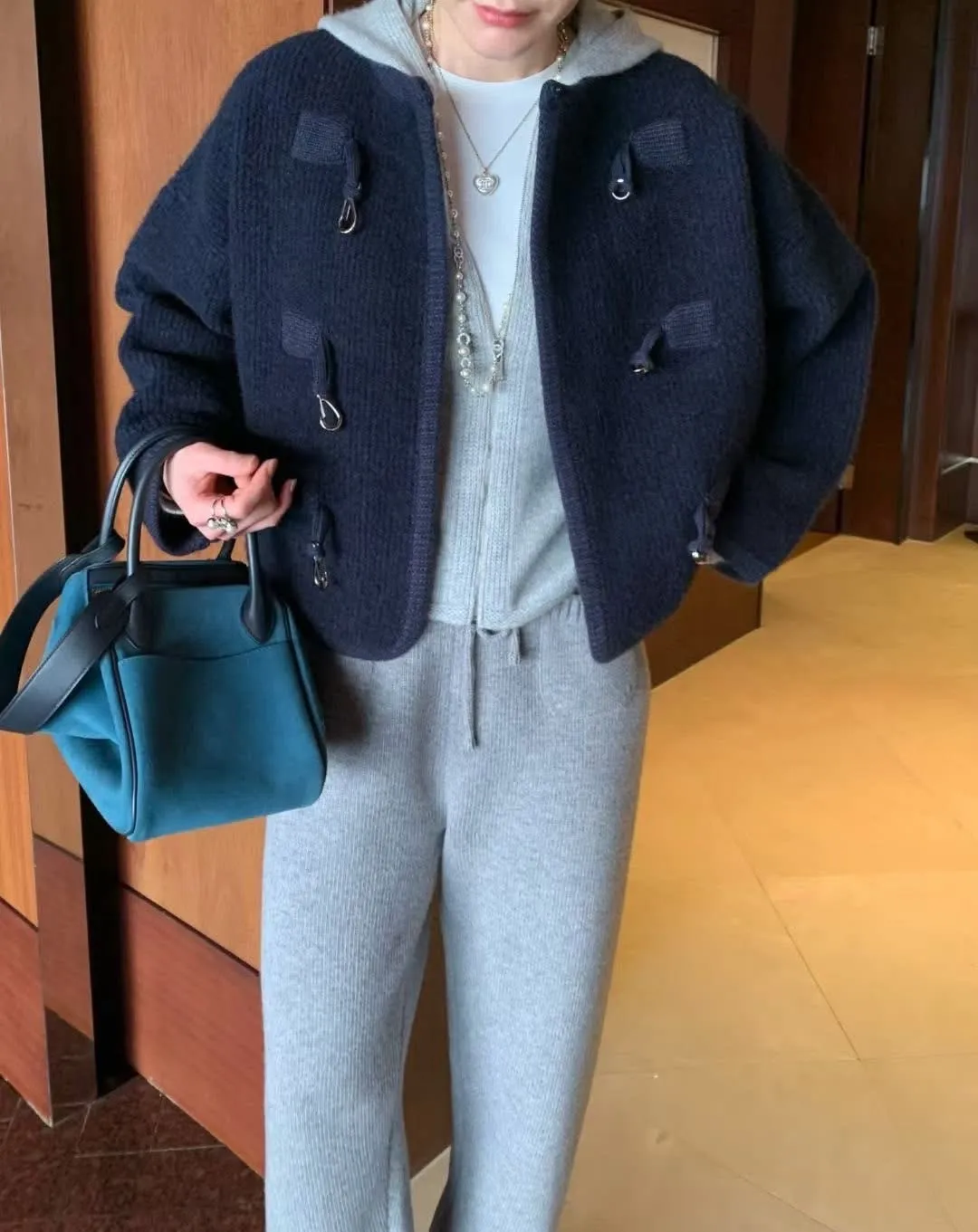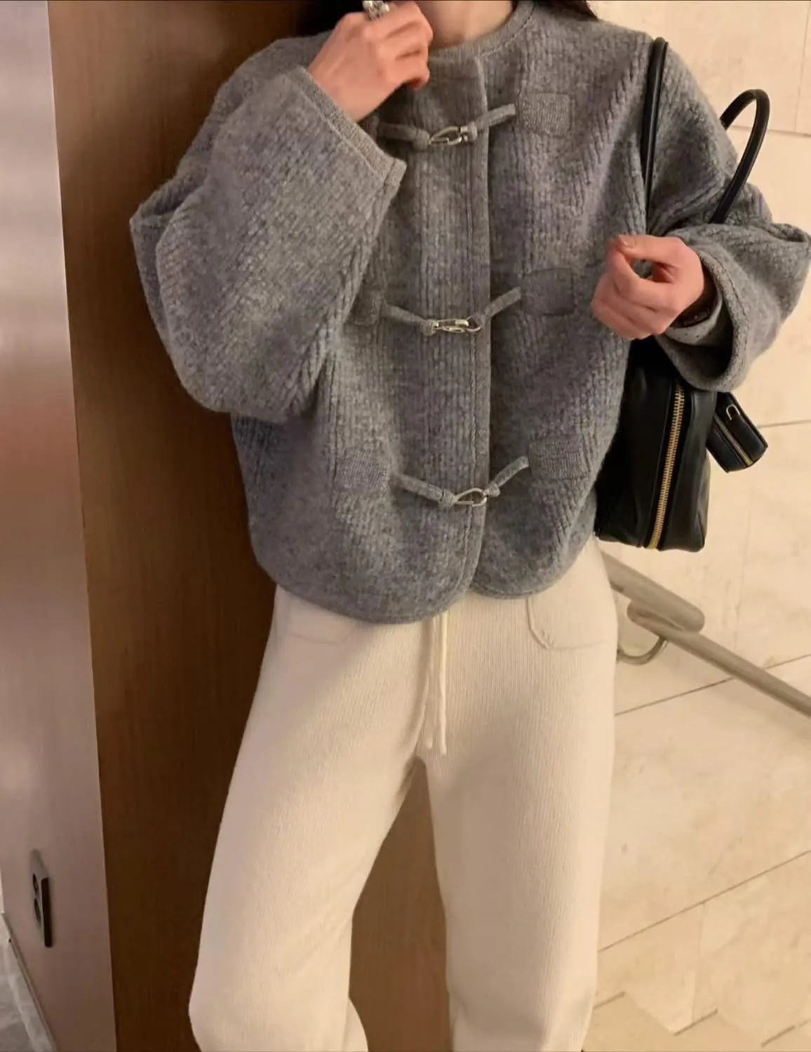 Alpaca &Wool buckle knit JK羊駝羊毛高質感扣環夾克高品質羊駝30 %➕羊毛高密度針織經典時尚扣環設計質感超好且有型的夾克在寒冷的秋冬必備單品尺寸free sizeS到XL都可以穿#模特兒為S號160左右身材