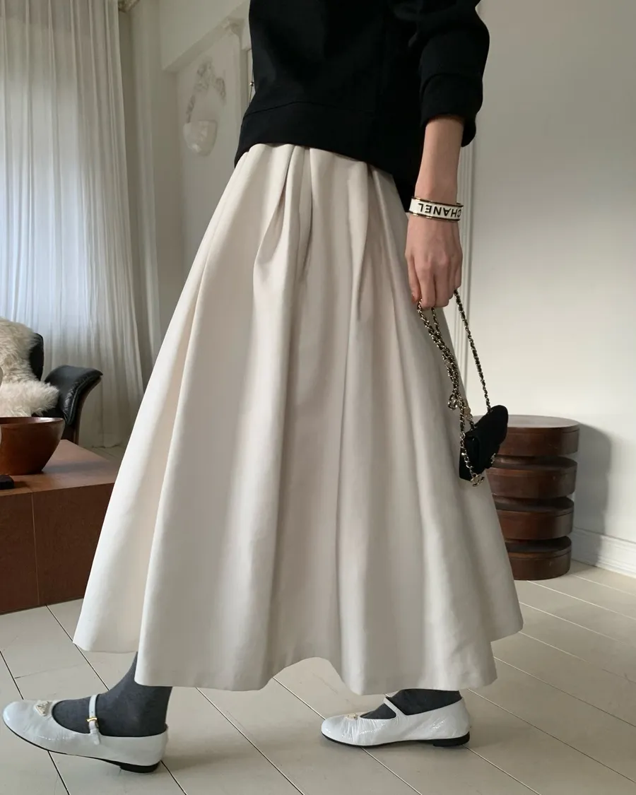 Polyester 彈性 混紡 高品質蓬鬆感 赫本風 蓬蓬百褶裙 分享給 氣質優雅的妳❤️❤️ 高質感 非常精緻美麗 質感好 秋冬必收 這件太美 ♥️♥️♥️ #模特兒為S號160左右身材 尺寸Free size 彈性 S~L以下皆可以穿 腰圍鬆緊34 平量公分