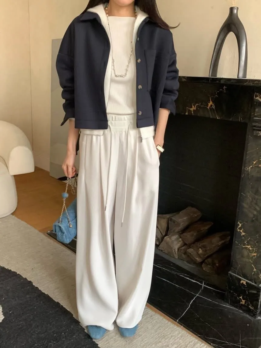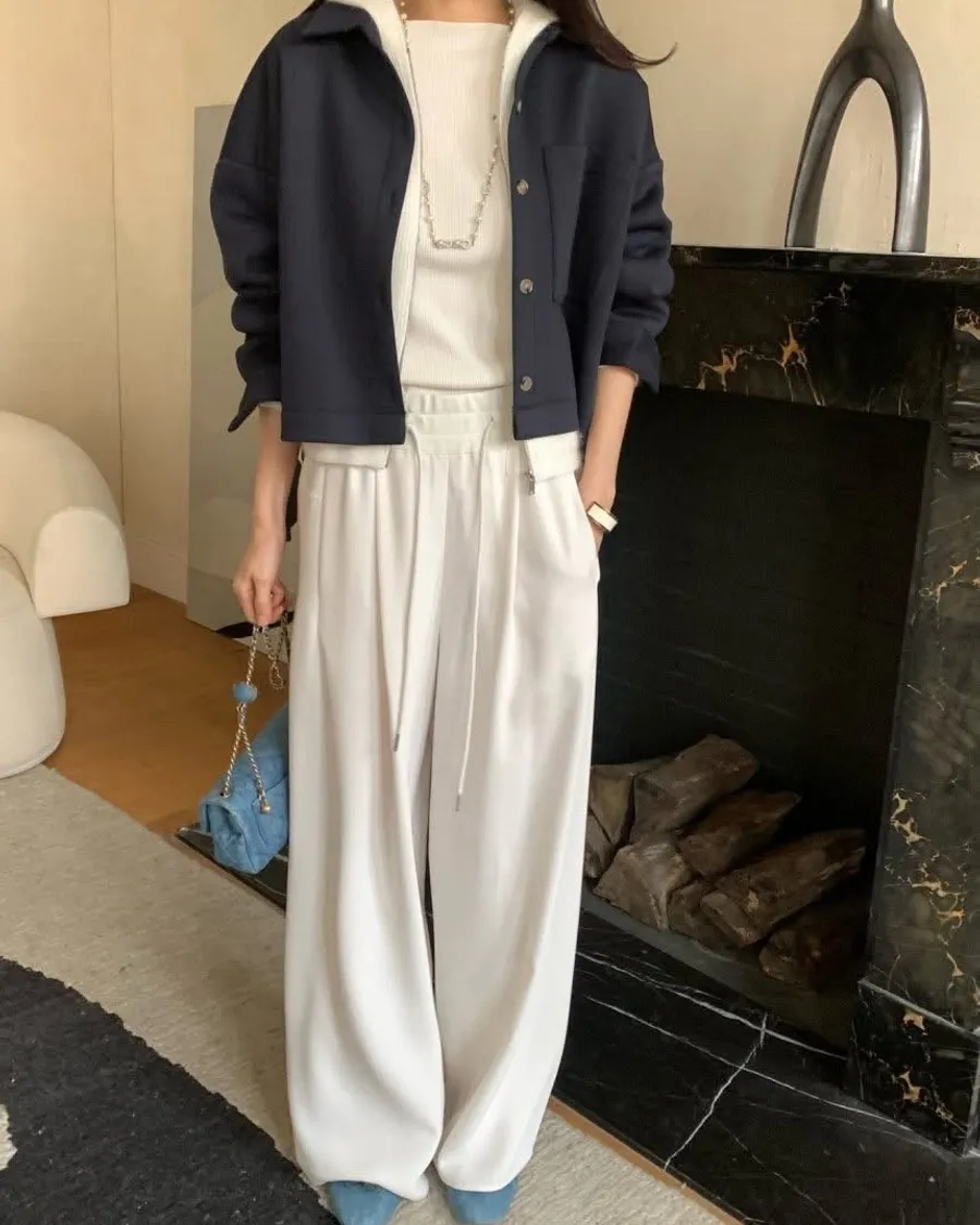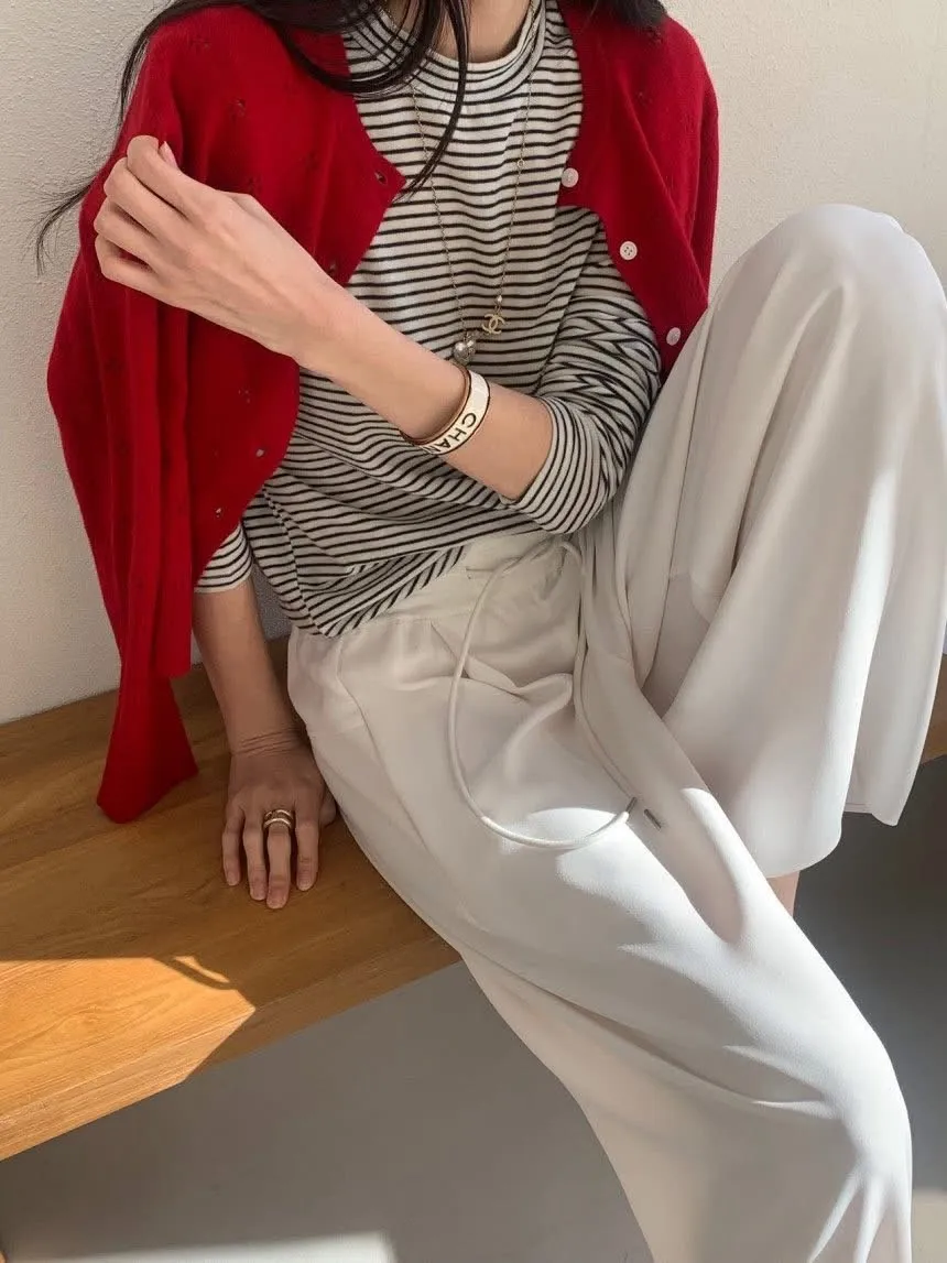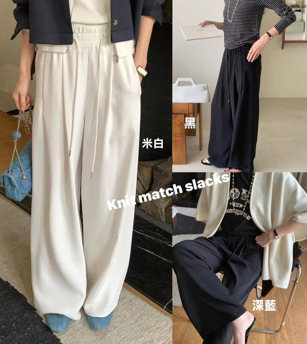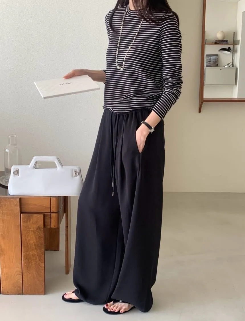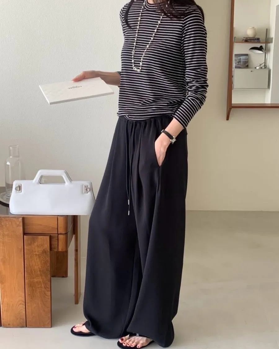 嘩啦啦飄逸感配色寬褲