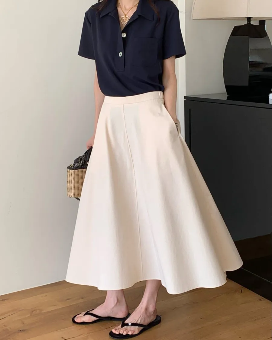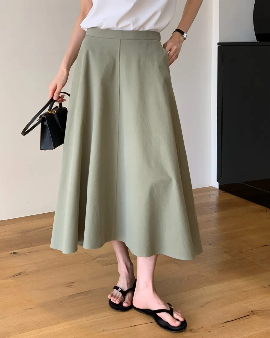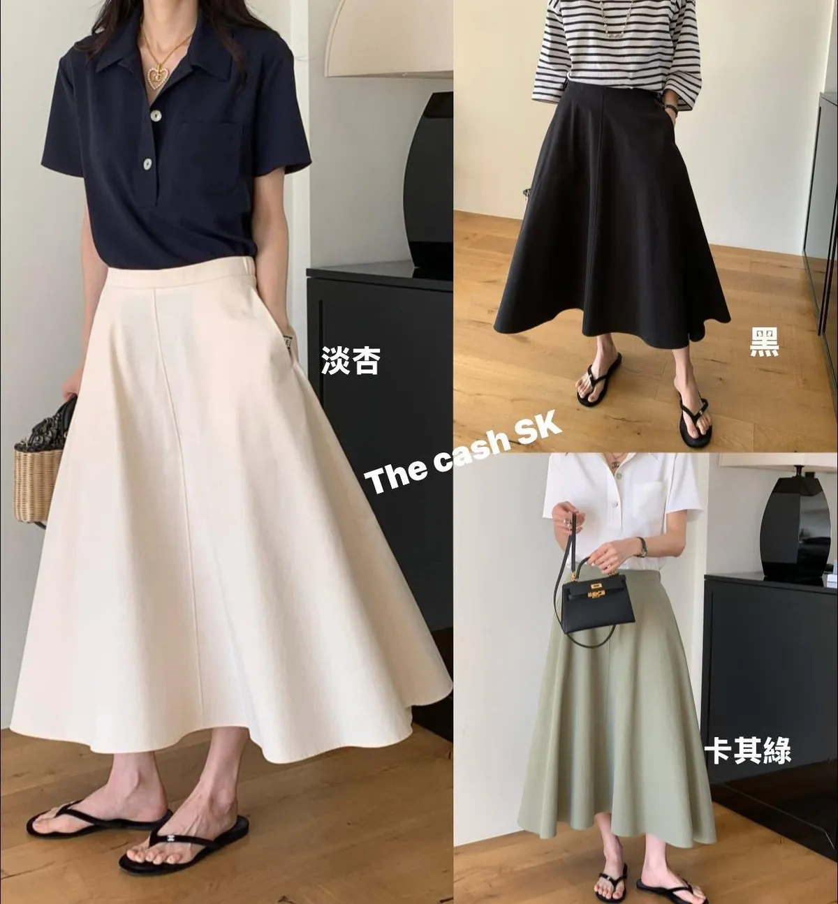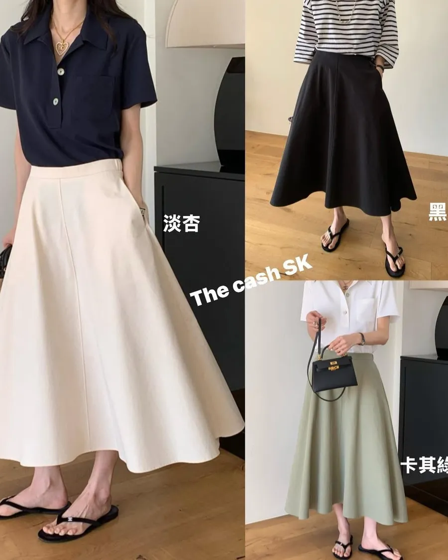 The cash挺版優雅大A Line裙 有口袋簡約優雅A line版型非常優雅美麗的裙子包兩色特價🉐3800尺寸:free size腰圍29後鬆緊、長85公分模特兒為S號160左右身材空媽168 / 70無法😅