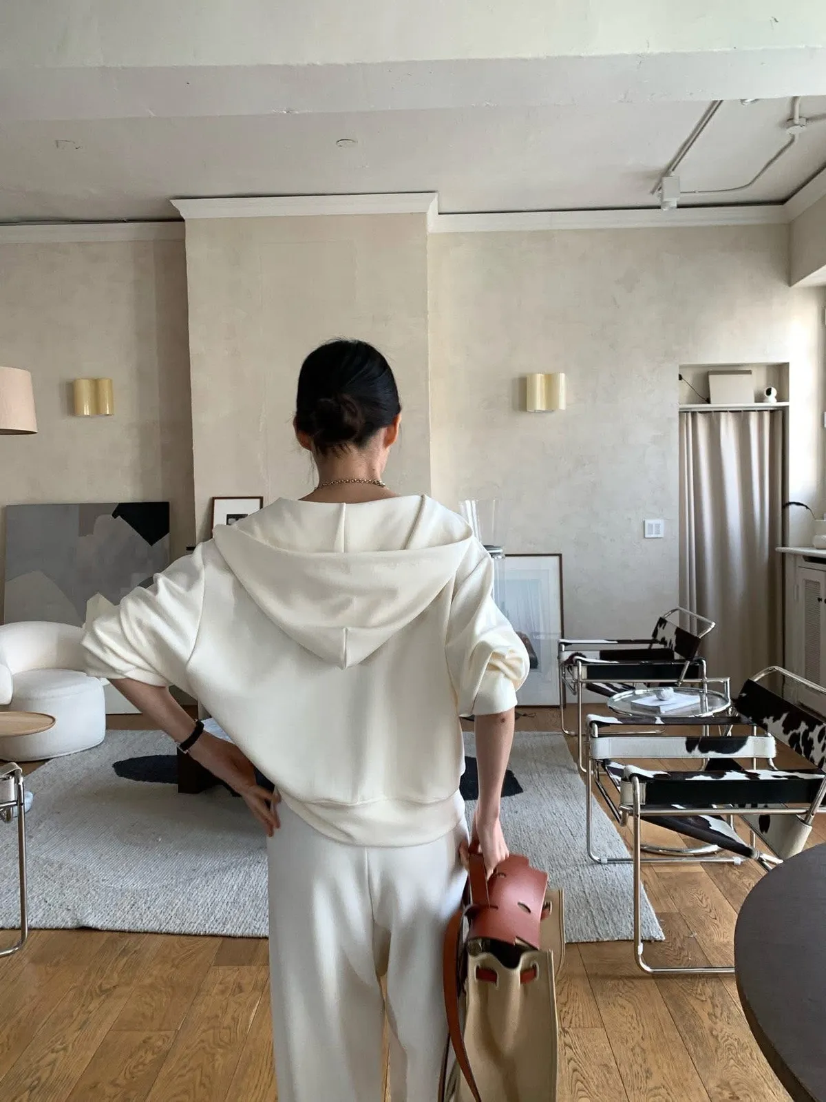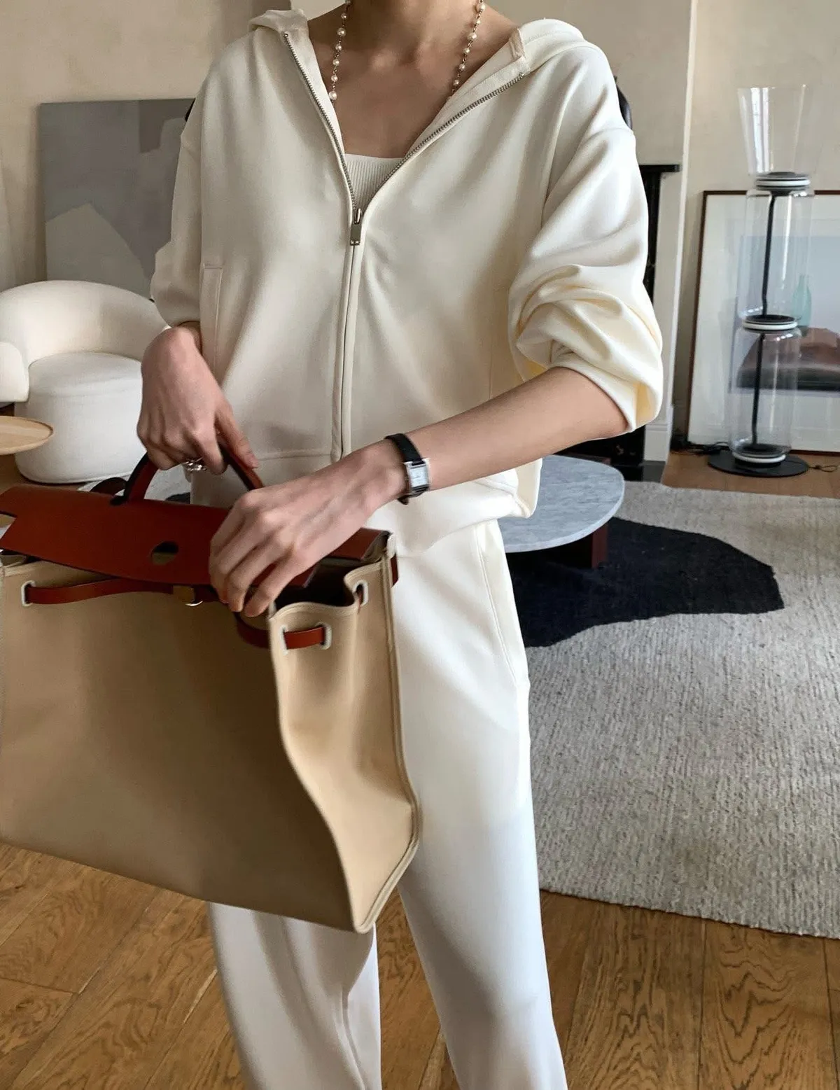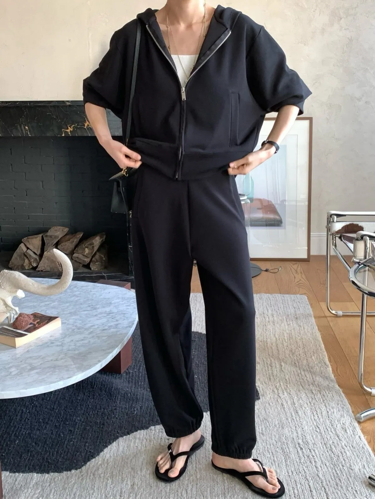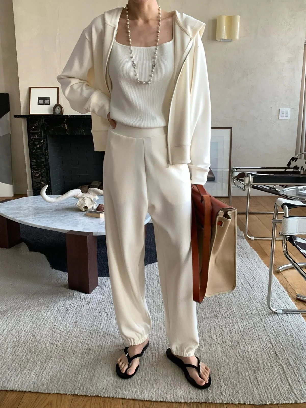 Silky QQ training絲感彈性 高質感成套休閒服絲感質感超棒的成套休閒服像絲質一樣滑順、彈性又舒服簡約大方穿起來就很很有氣質尺寸:free sizeS 到L以下都可以上衣:胸圍55、總長56公分褲子:腰圍31、臀49、大腿32、 總長95公分