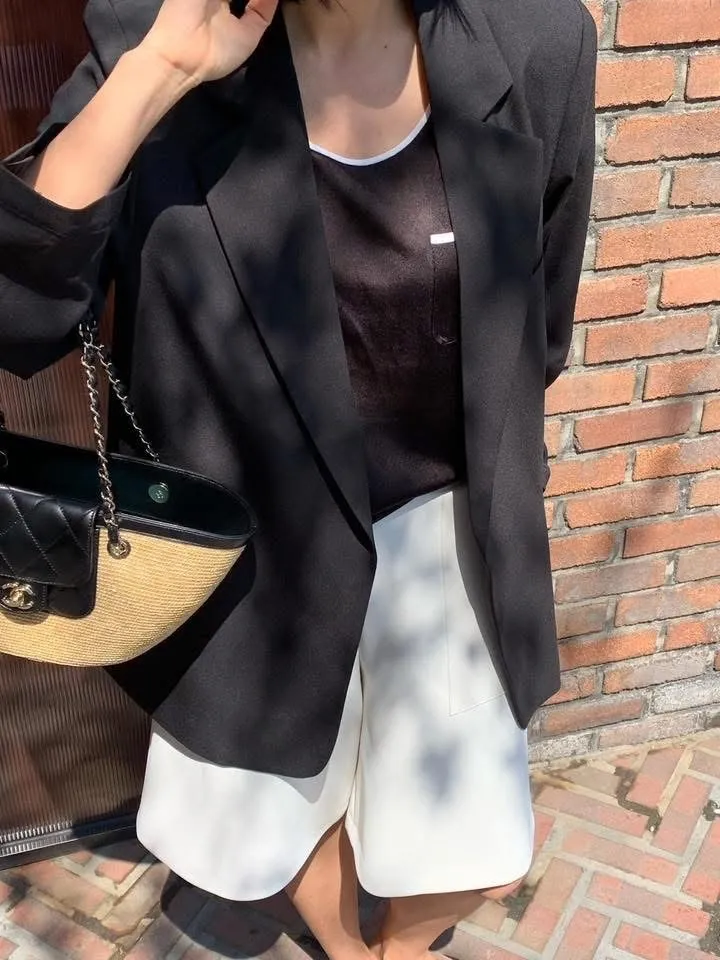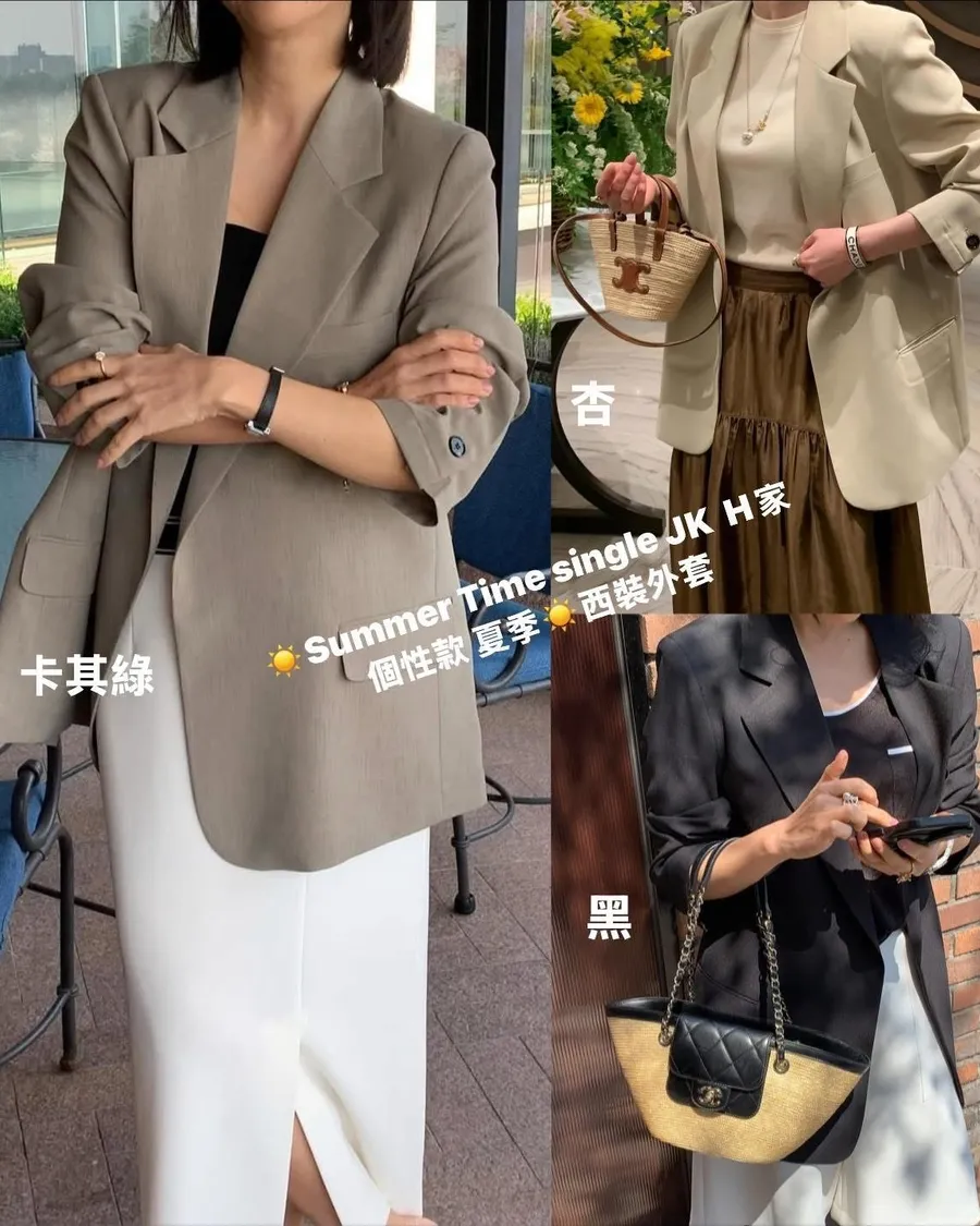 Summer Time個性款 夏季 西裝外套高品質poly97 %彈性3%材質夏季涼爽混紡透氣又舒服高級品牌製作廠商版型經典不退流行尺寸:free sizeXL以下可以穿肩39.5、胸寬54、衣長75公分