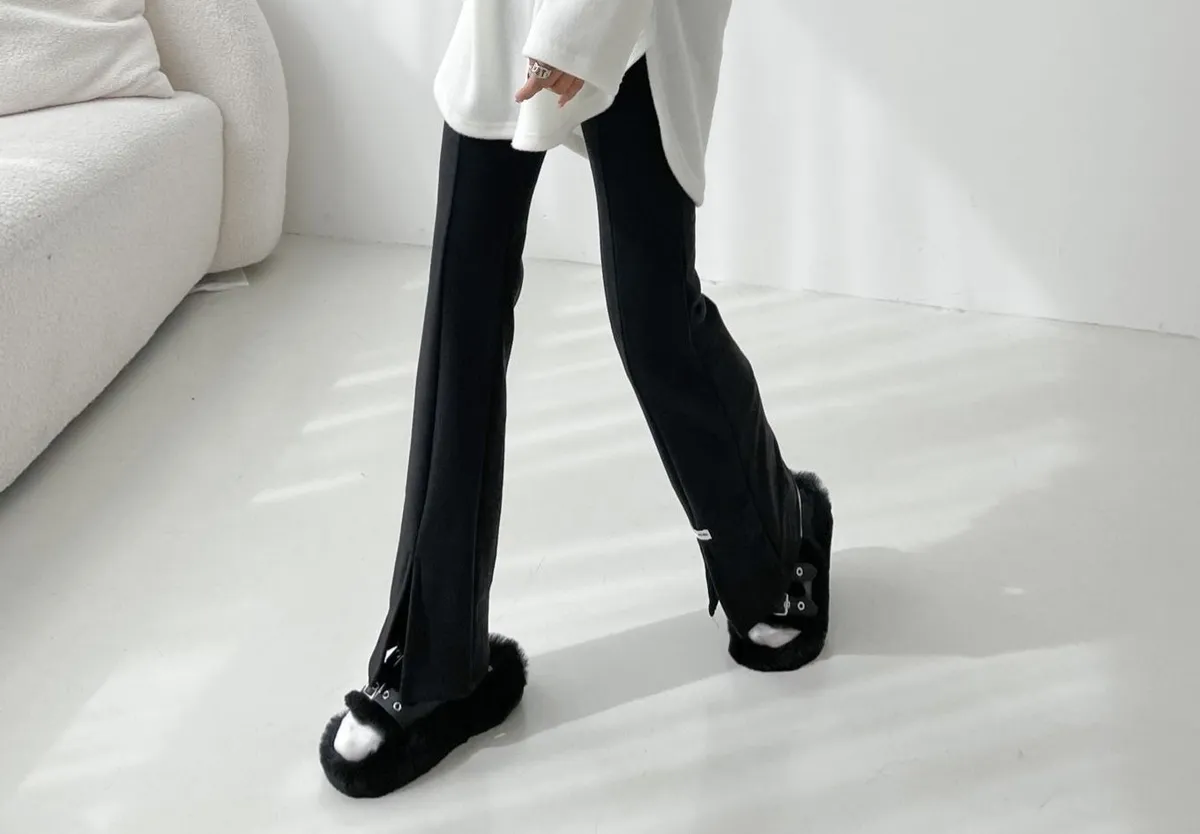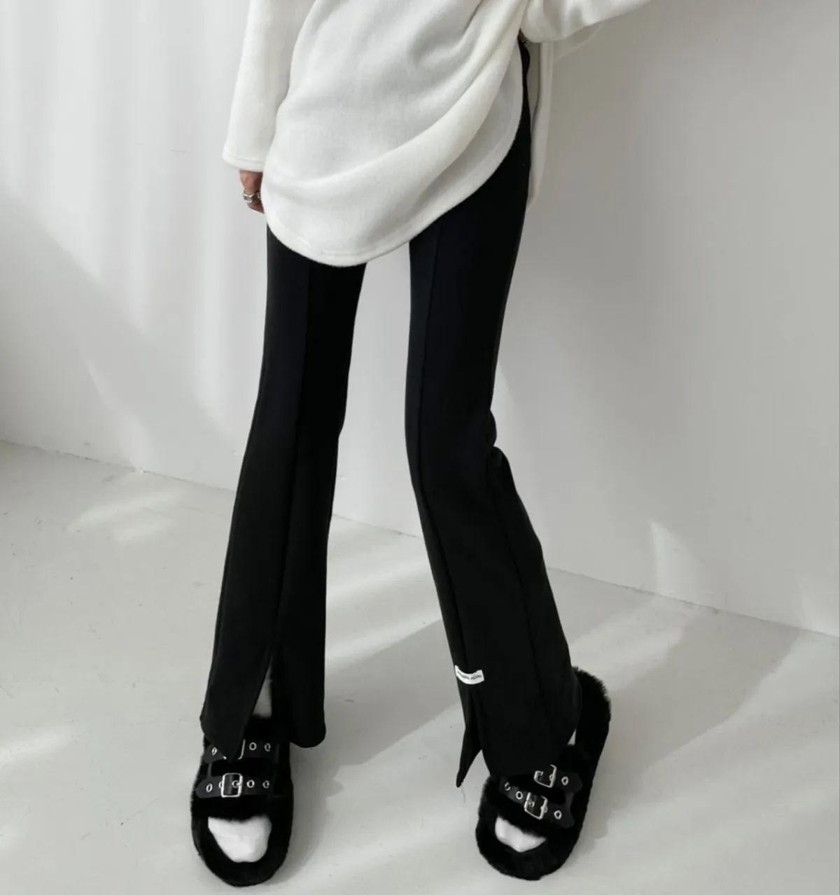 內拉絨前開叉喇叭褲內拉絨刷毛舒適又保暖前開叉喇叭褲版型質感超滑順彈性非常好任選兩件🉐特價1200F size:S~M可以穿L size : L~XL可以穿 #模特為S號160左右身材 #空媽現在為XL號168/70穿舒服