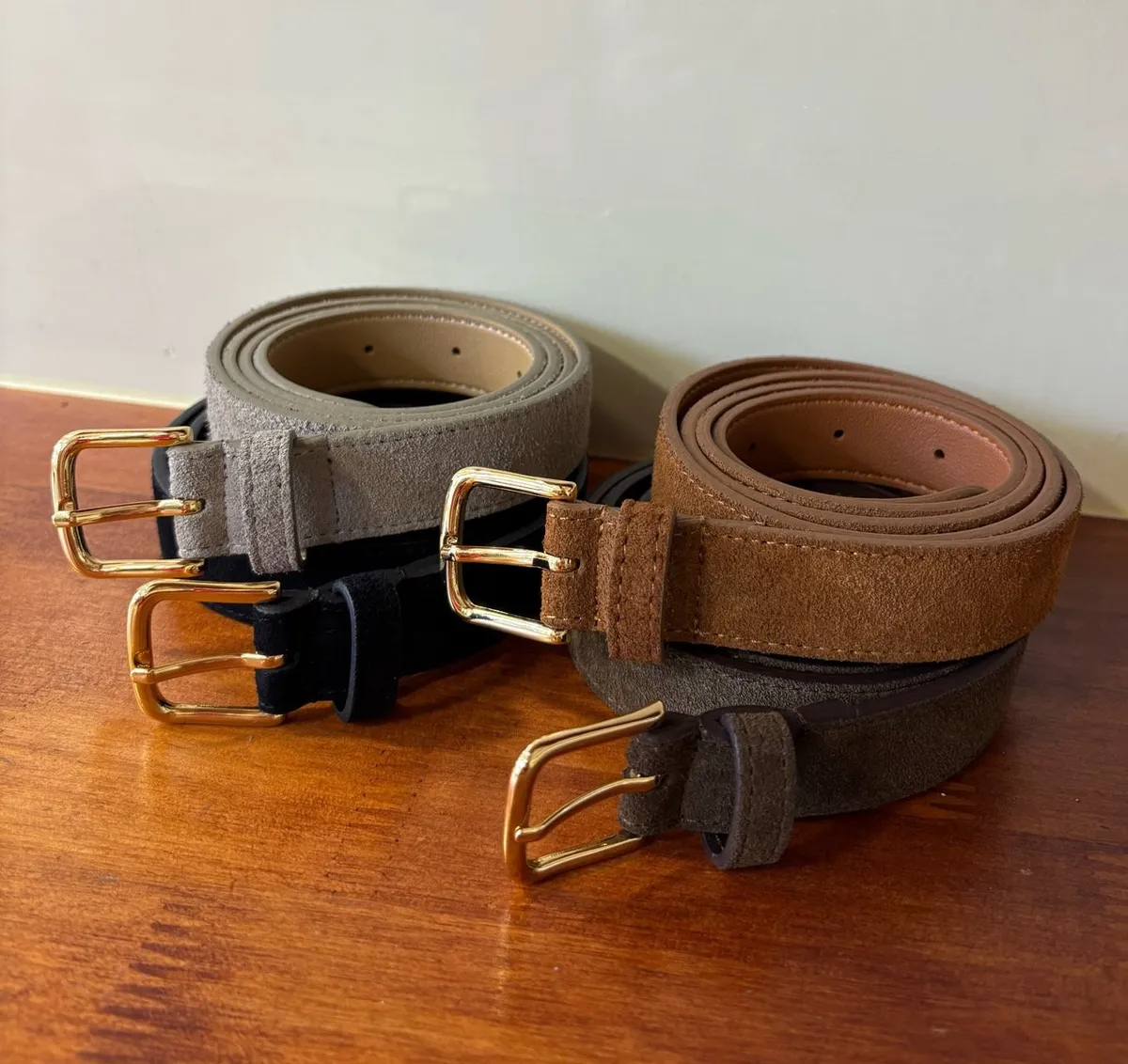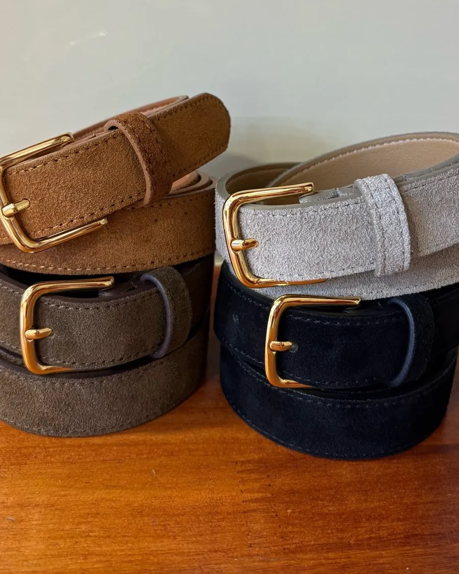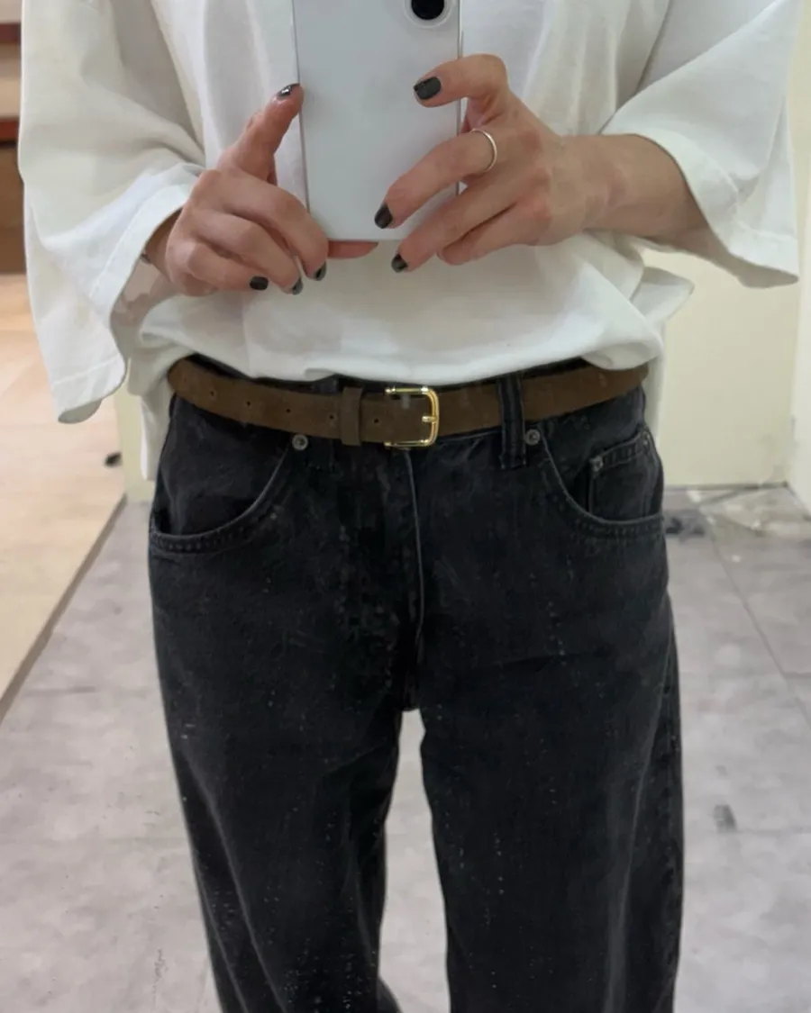 想要來搭配牛仔褲的金色環麂皮皮帶