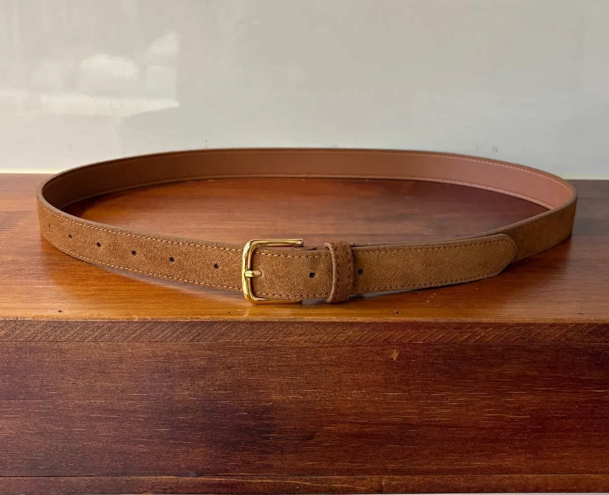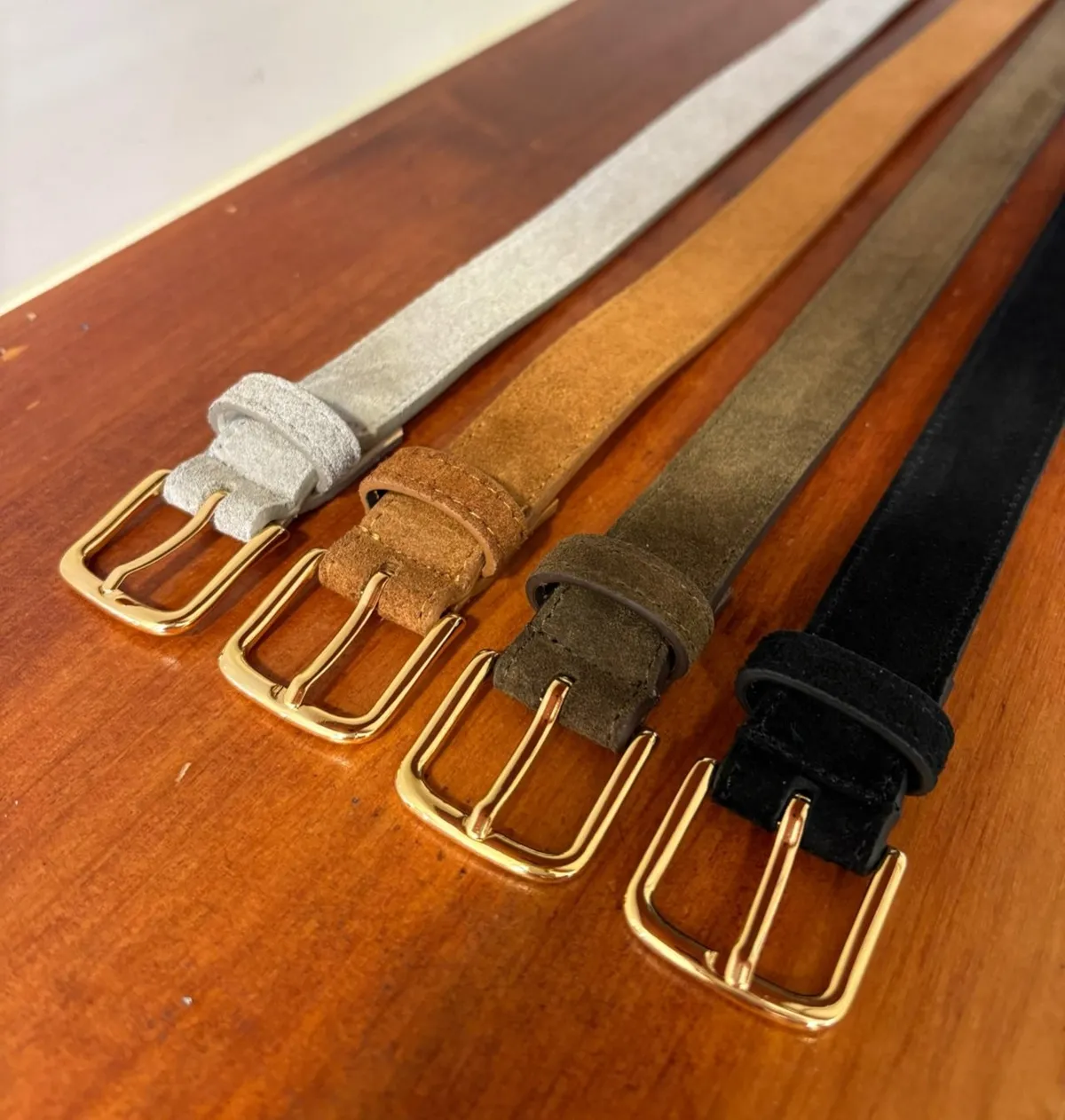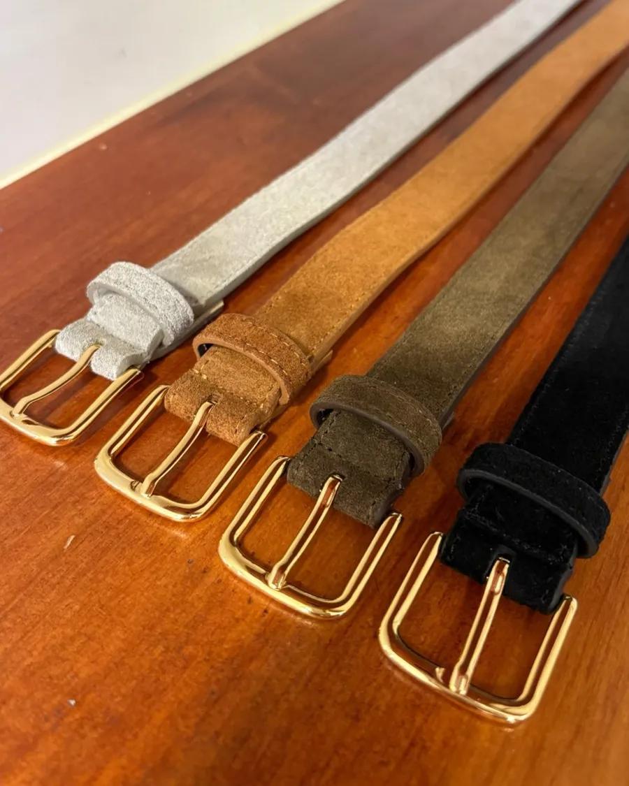 想要來搭配牛仔褲的金色環麂皮皮帶