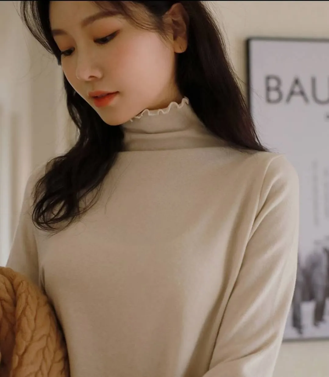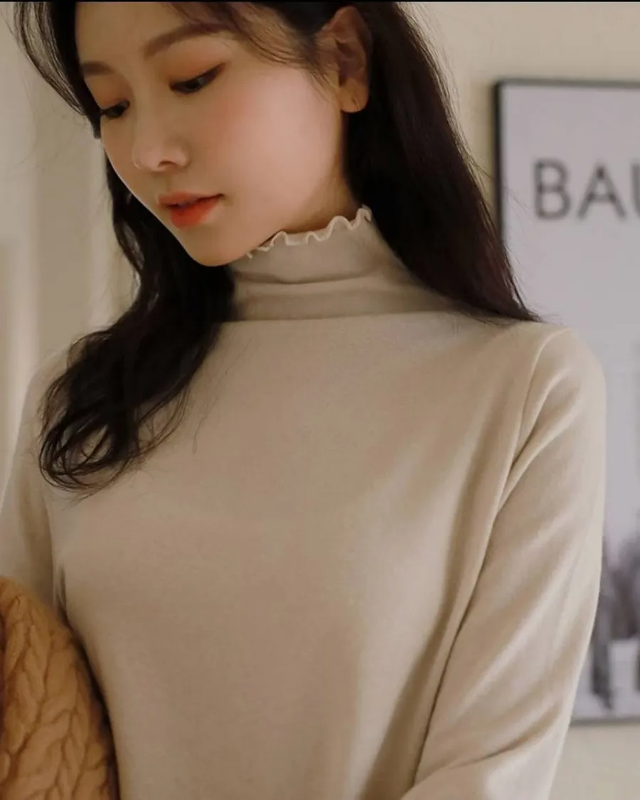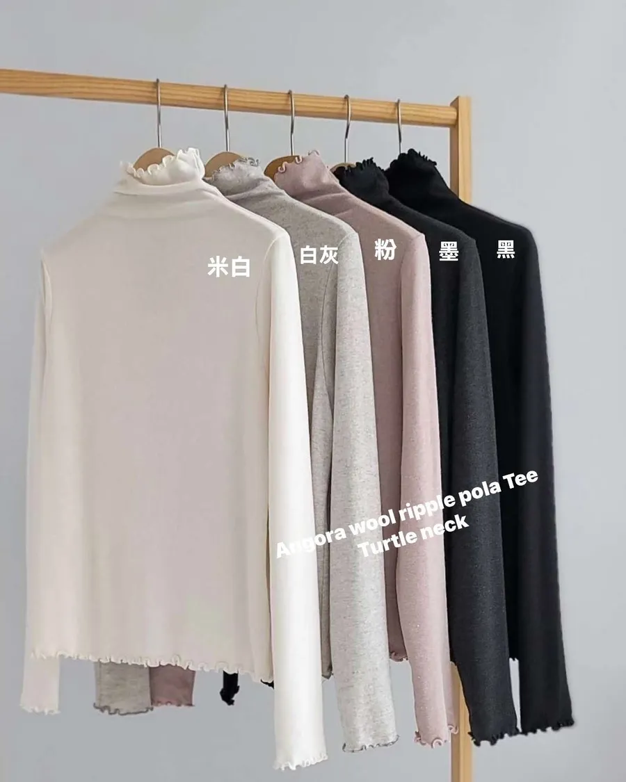 Angora ripple pola Tee 安哥拉毛 波浪紋素面高領踢