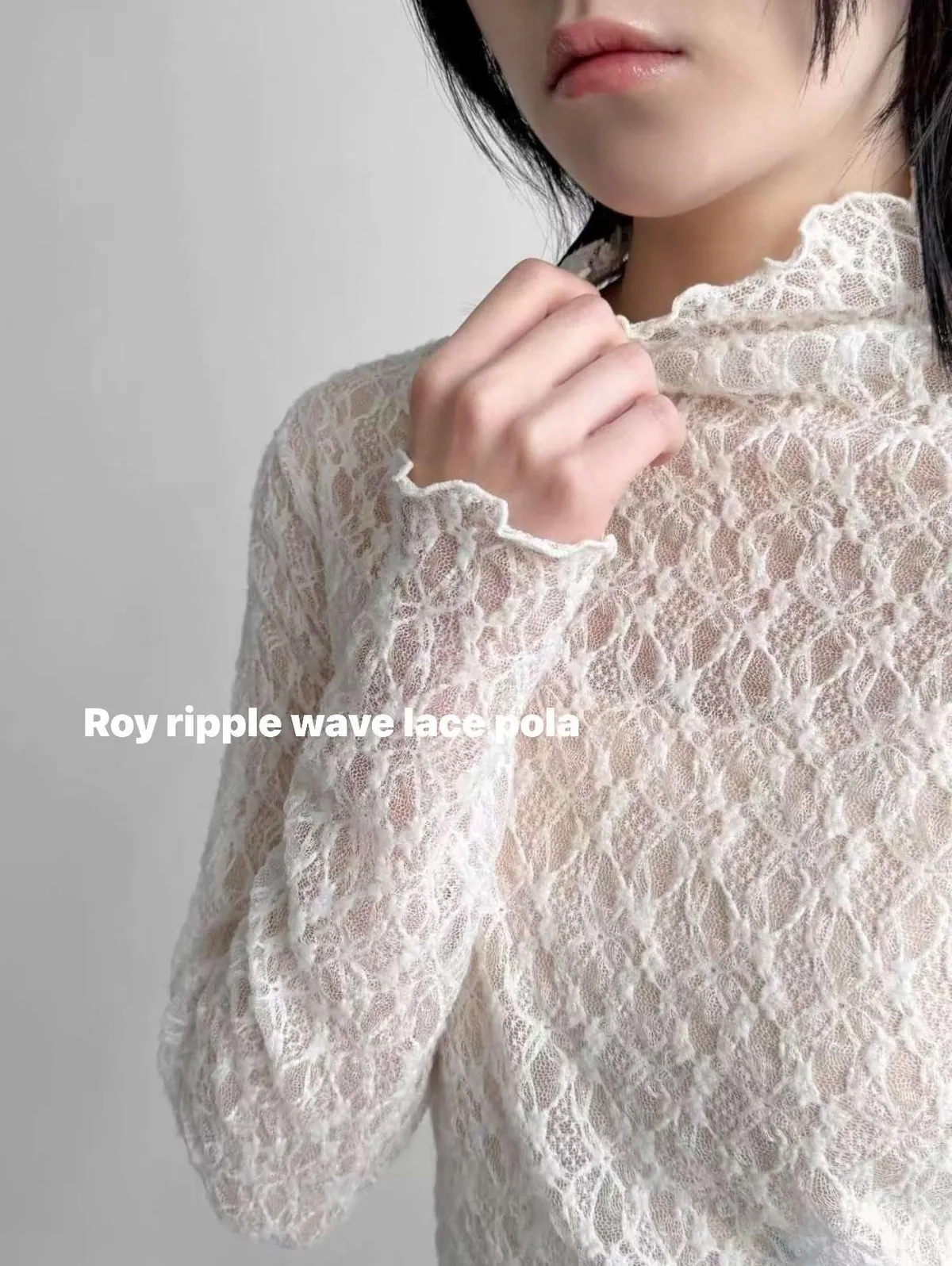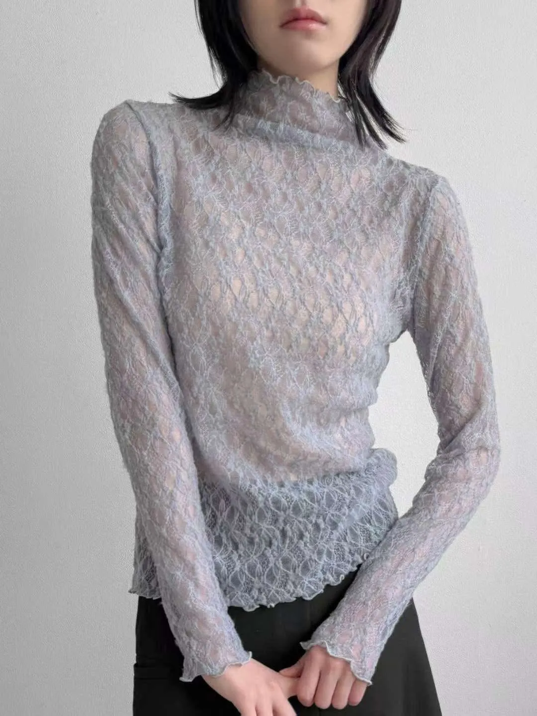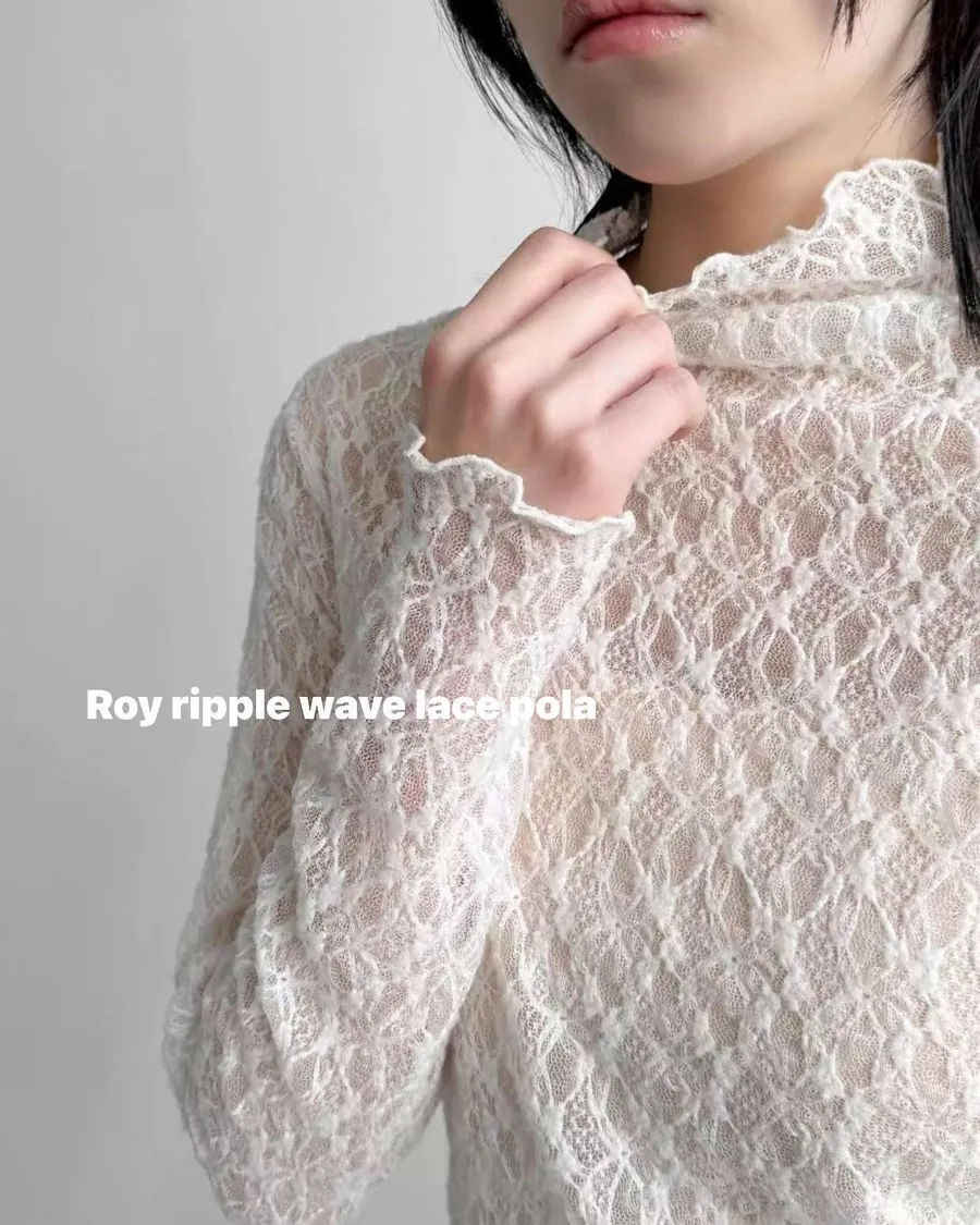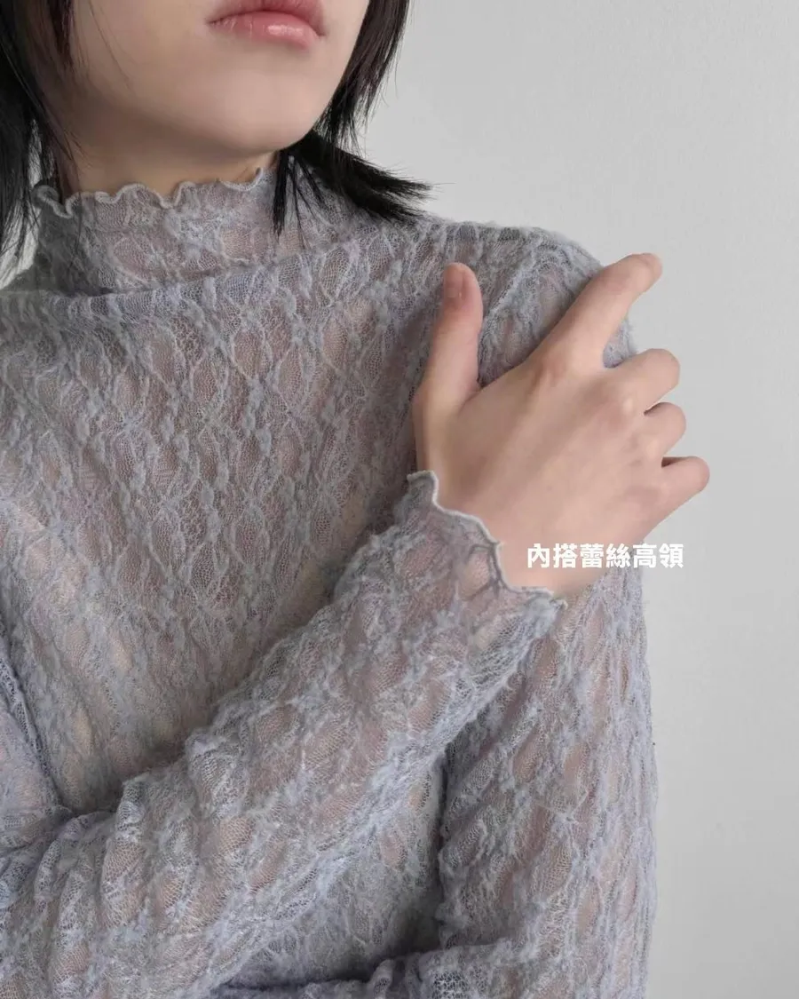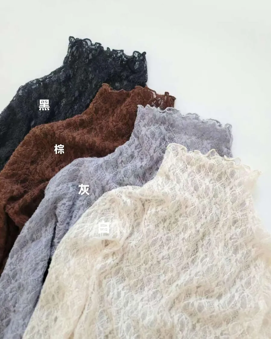波浪邊薄刷毛蕾絲內搭高領