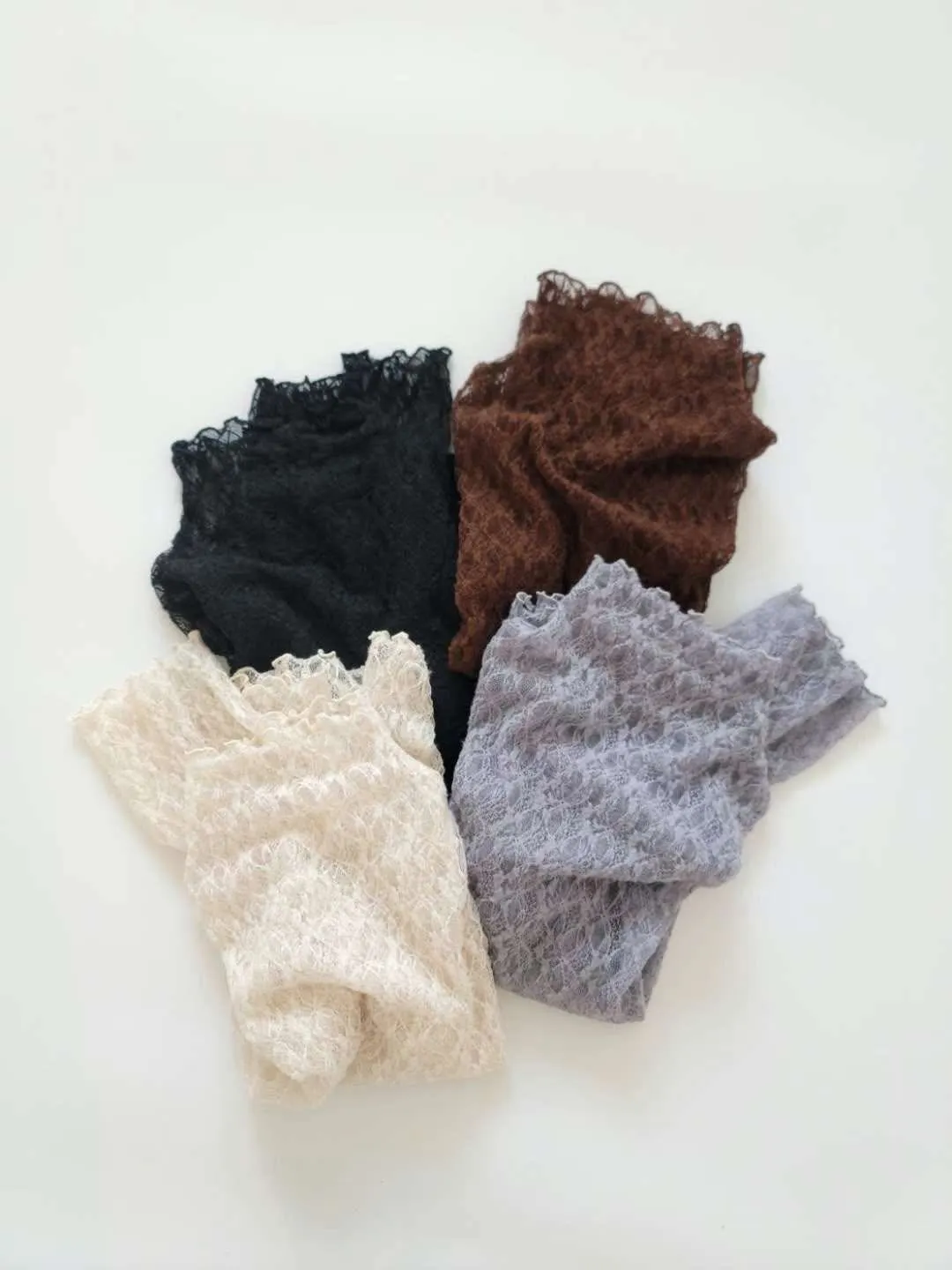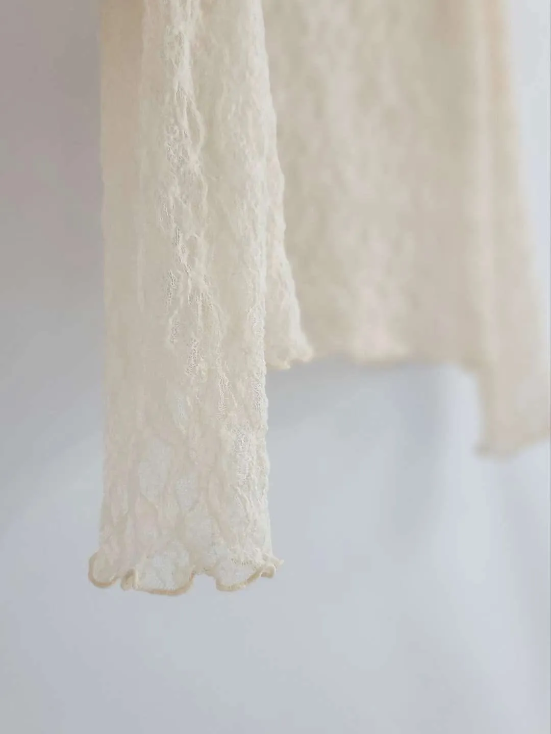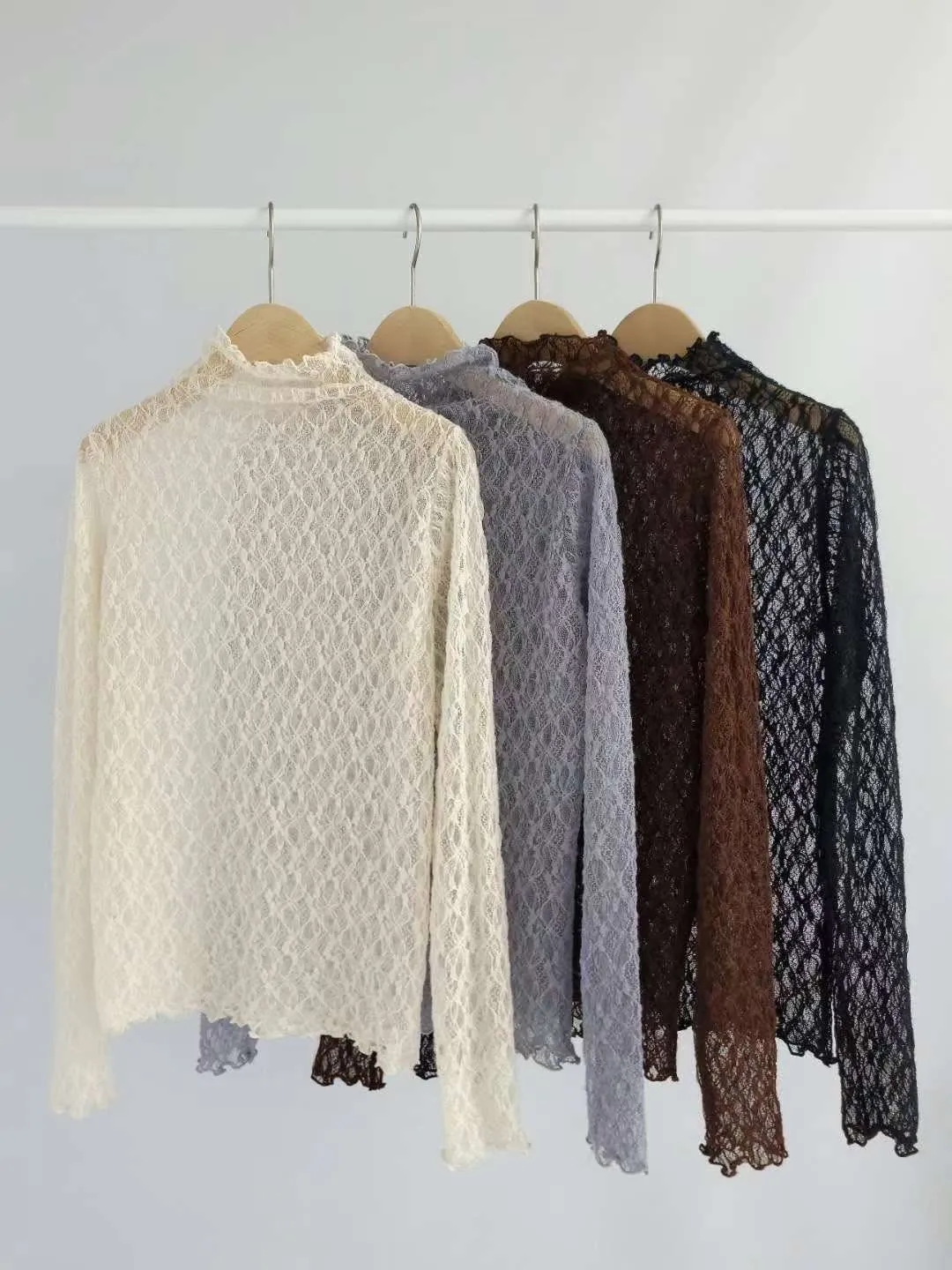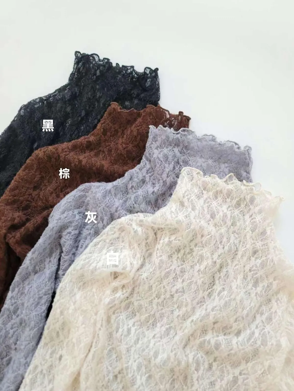 波浪邊薄刷毛蕾絲內搭高領