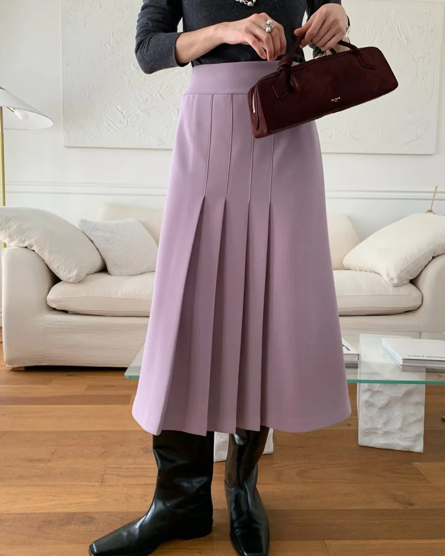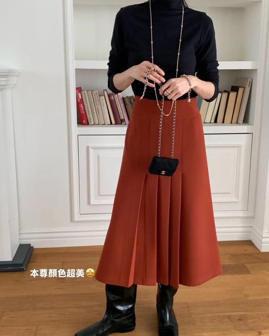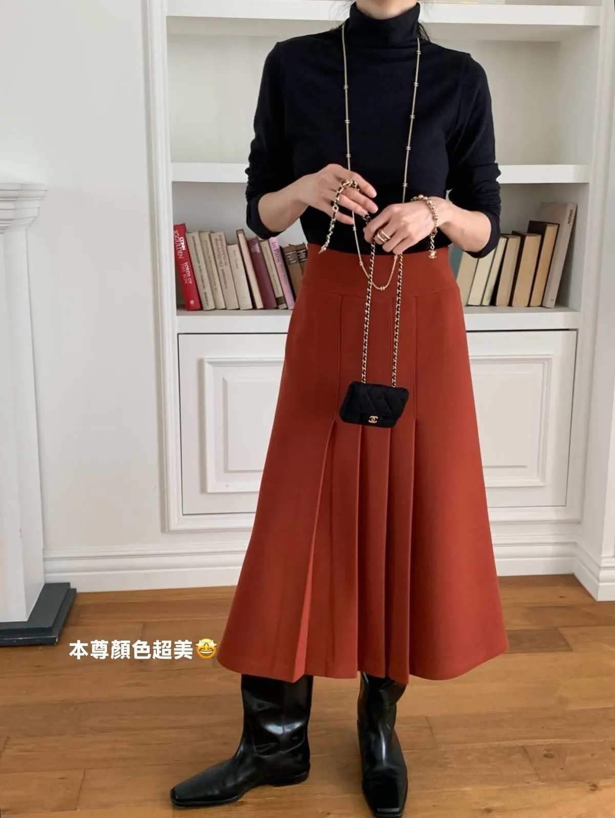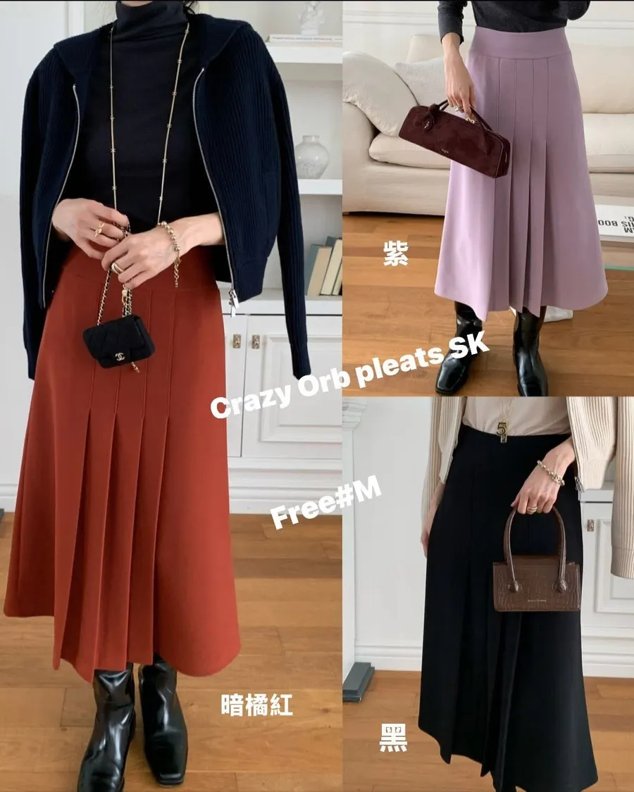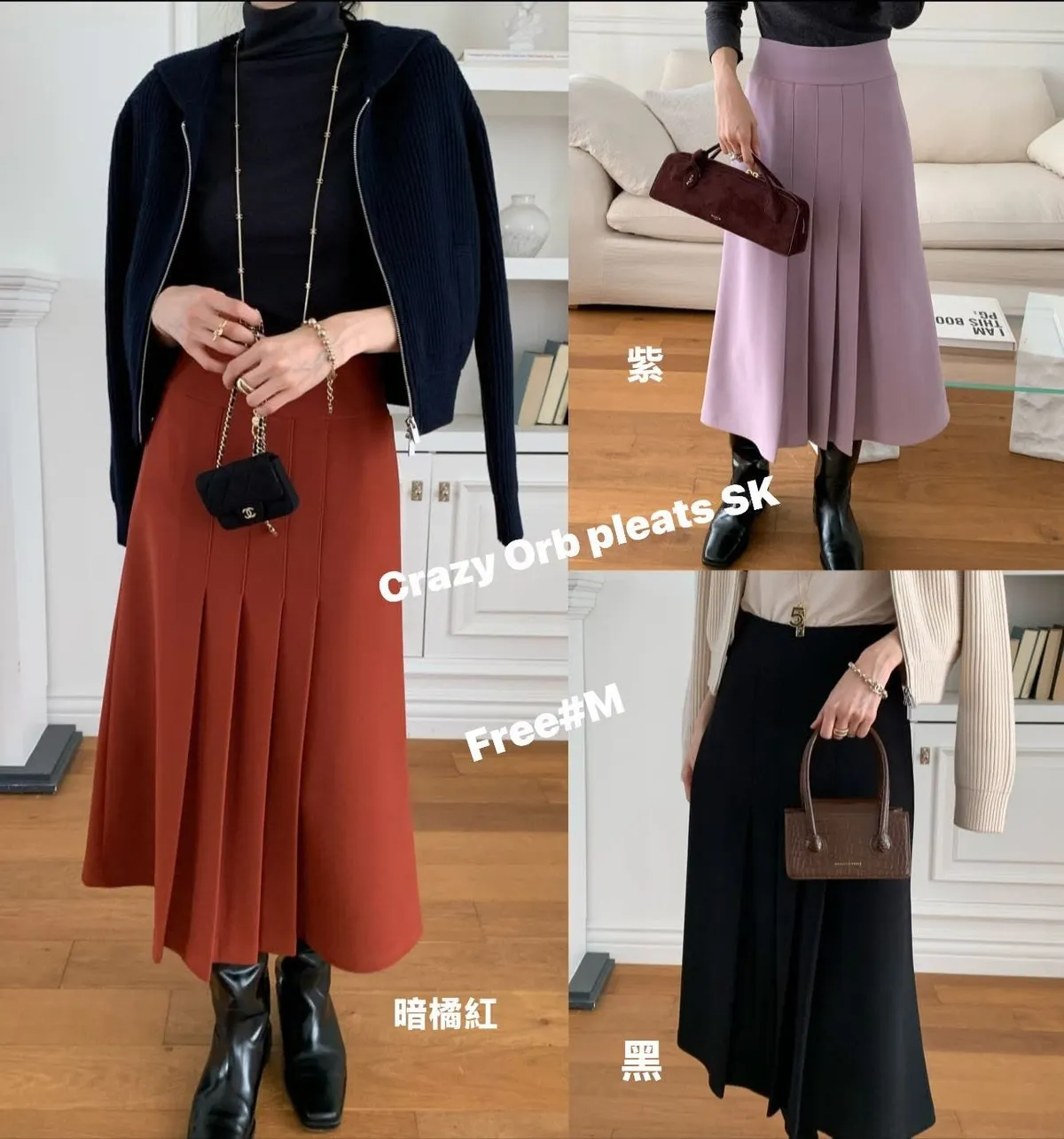 H家 瘋狂彈性系列-前百褶小A line裙秋冬輕磨毛版本優雅經典剪裁 、呈現風姿綽約前百褶小A版型 、修飾身型又顯瘦內薄刷毛保暖不悶熱多款顏色選擇紫:浪漫又高貴的薰衣草紫黑:高貴又百搭的經典黑暗橘紅:低調又耐看的勃根地紅本季歐尼超貼心 有分尺寸Free & MFree :適合S~MM :適合L~XL 空媽168/70 穿M舒服喔~