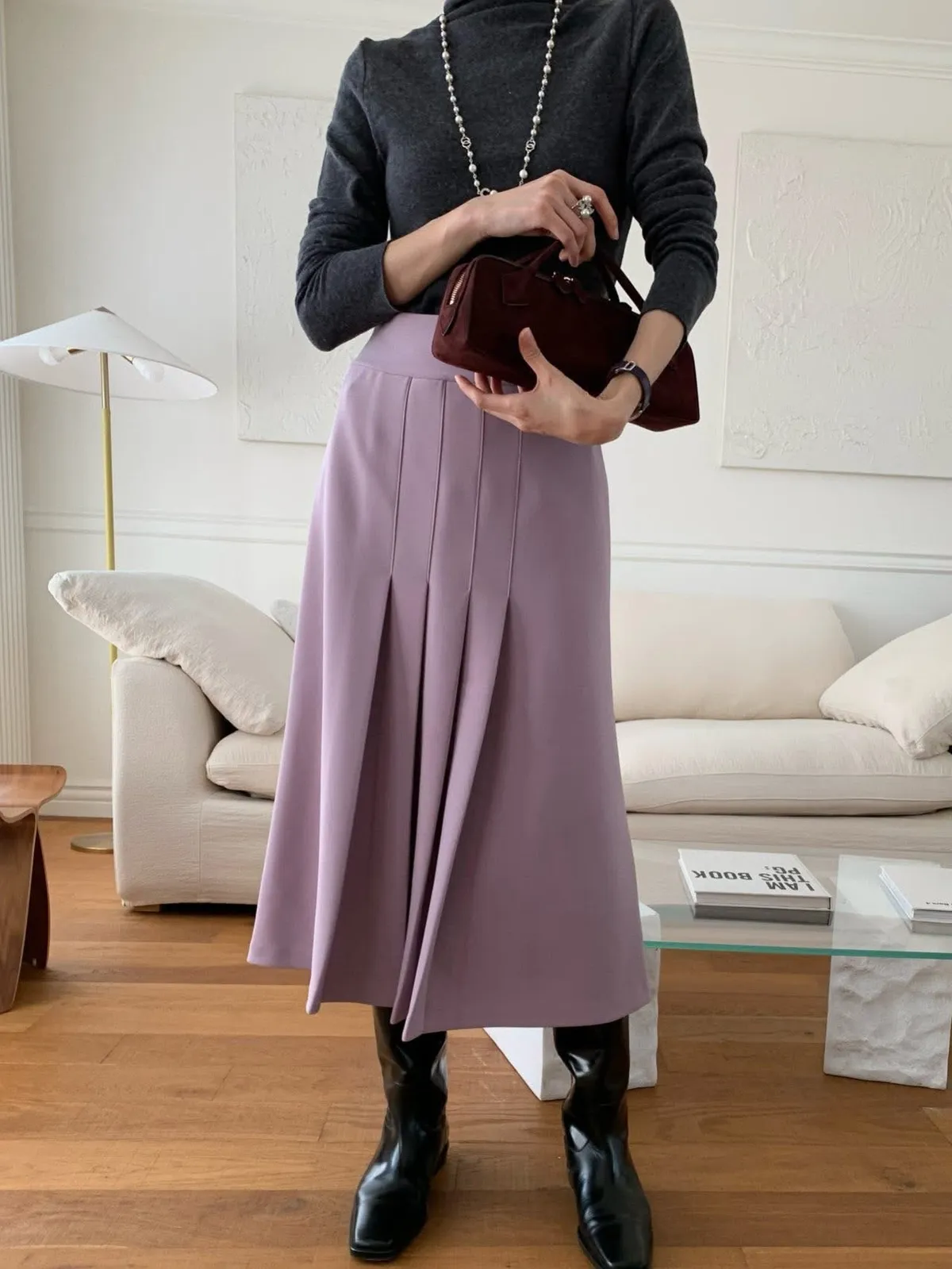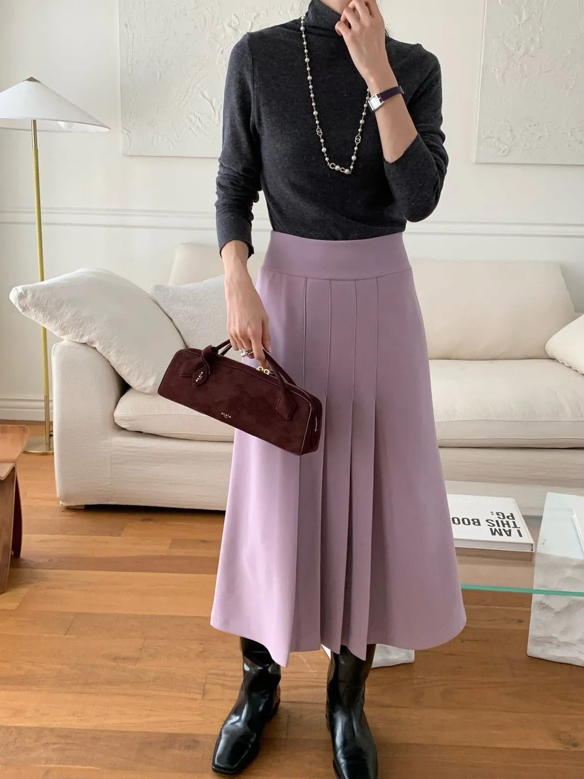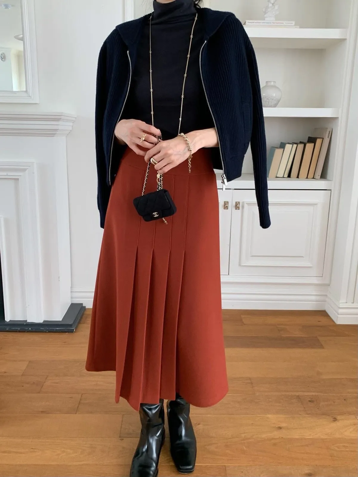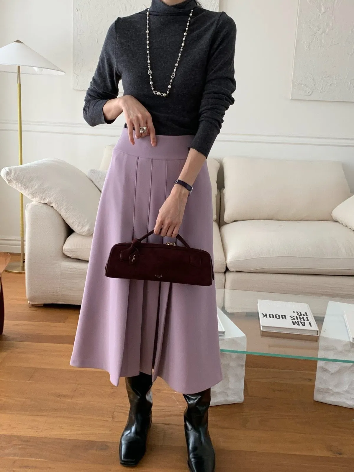 H家 瘋狂彈性系列-前百褶小A line裙秋冬輕磨毛版本優雅經典剪裁 、呈現風姿綽約前百褶小A版型 、修飾身型又顯瘦內薄刷毛保暖不悶熱多款顏色選擇紫:浪漫又高貴的薰衣草紫黑:高貴又百搭的經典黑暗橘紅:低調又耐看的勃根地紅本季歐尼超貼心 有分尺寸Free & MFree :適合S~MM :適合L~XL 空媽168/70 穿M舒服喔~