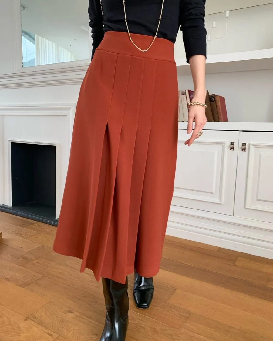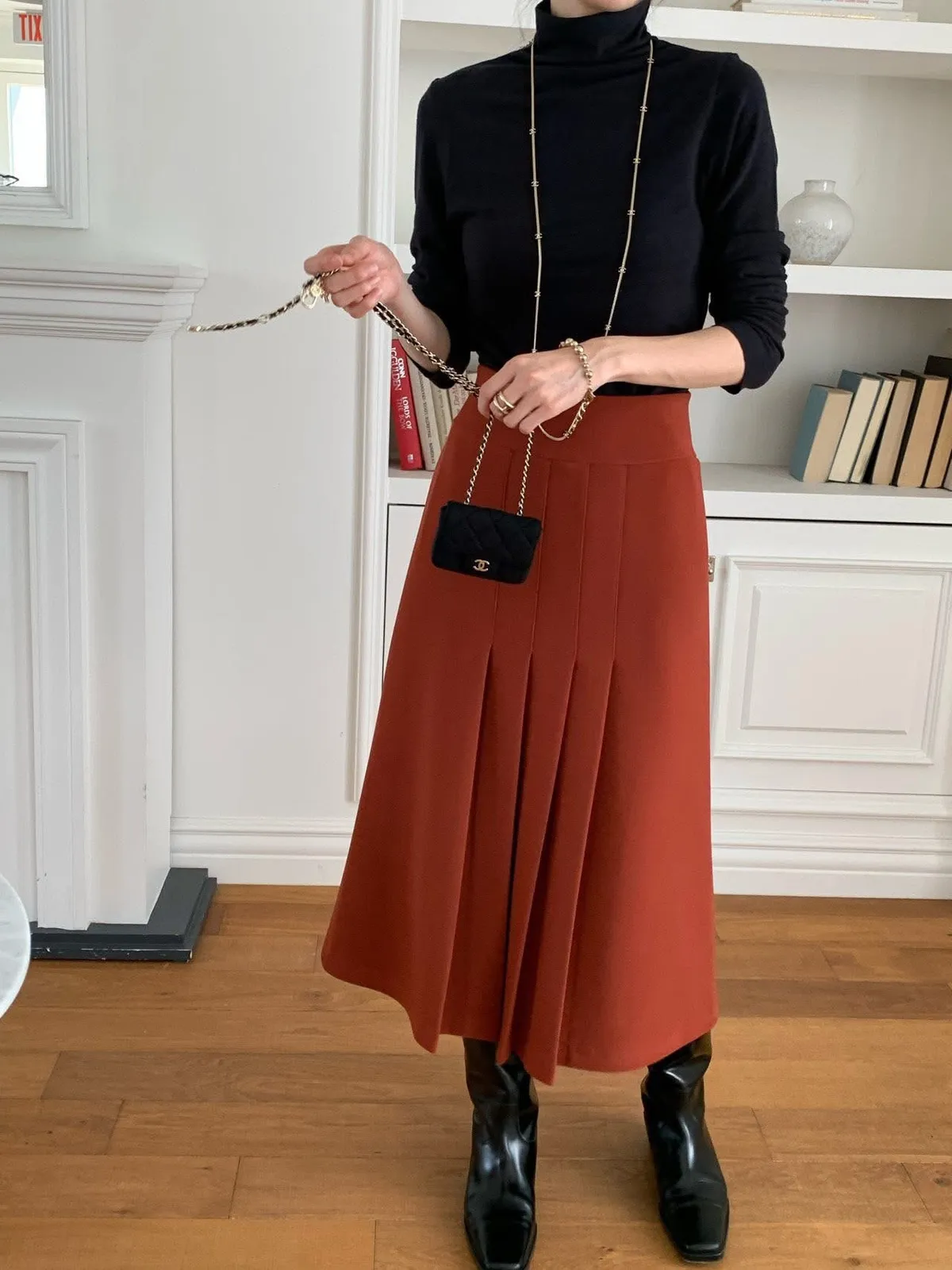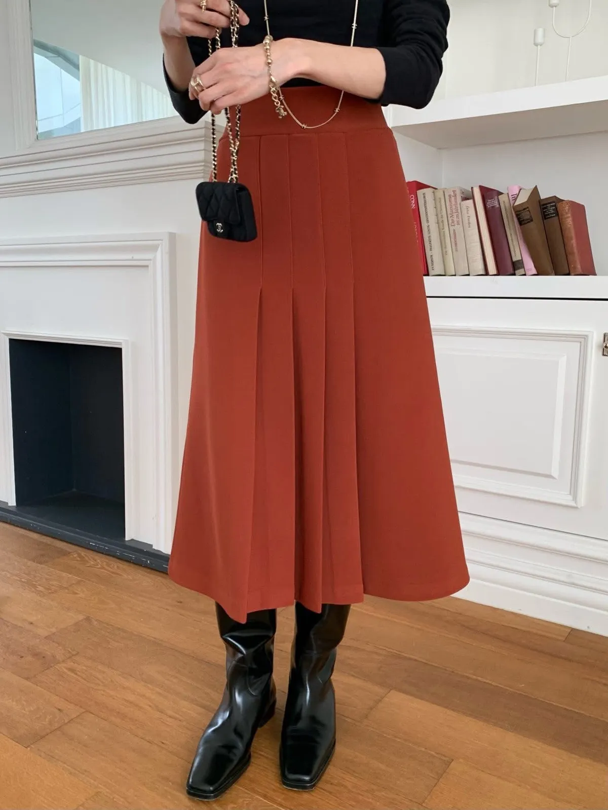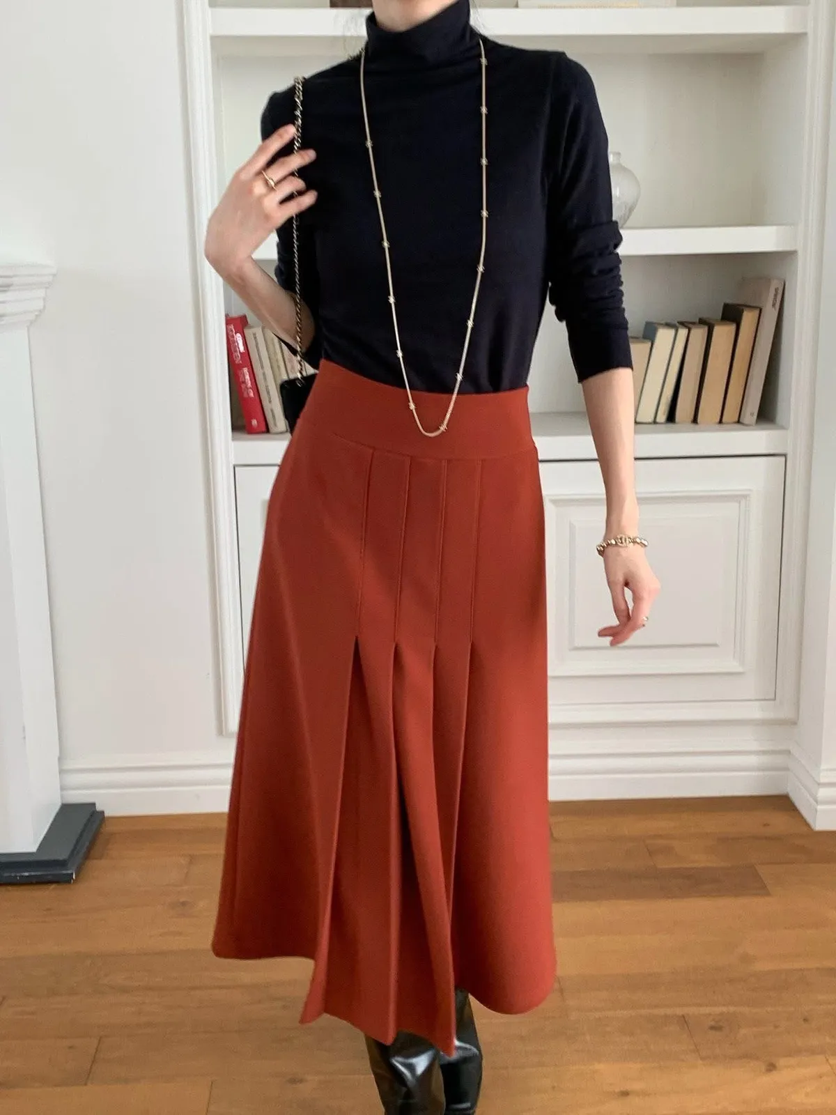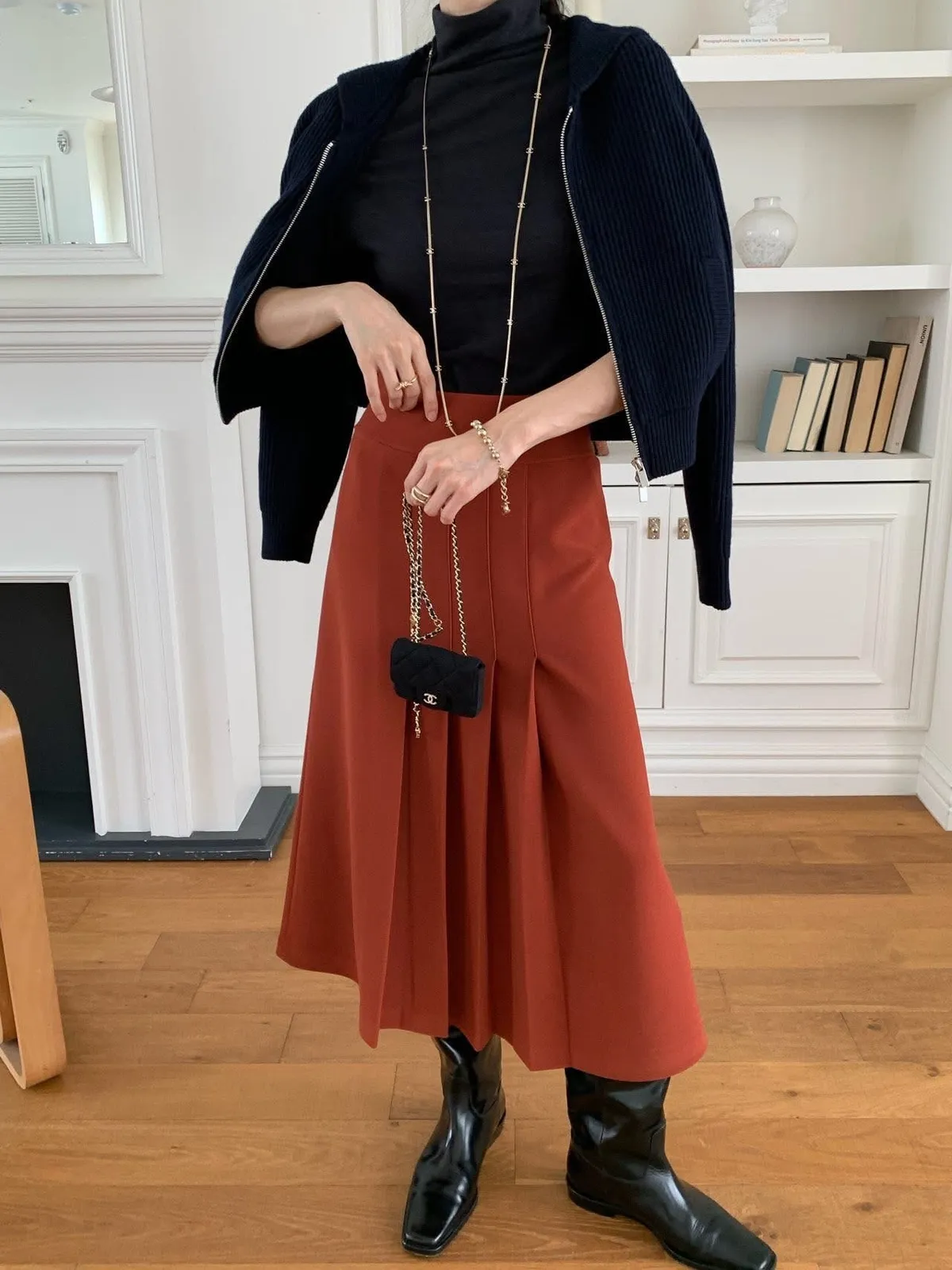 H家 瘋狂彈性系列-前百褶小A line裙秋冬輕磨毛版本優雅經典剪裁 、呈現風姿綽約前百褶小A版型 、修飾身型又顯瘦內薄刷毛保暖不悶熱多款顏色選擇紫:浪漫又高貴的薰衣草紫黑:高貴又百搭的經典黑暗橘紅:低調又耐看的勃根地紅本季歐尼超貼心 有分尺寸Free & MFree :適合S~MM :適合L~XL 空媽168/70 穿M舒服喔~