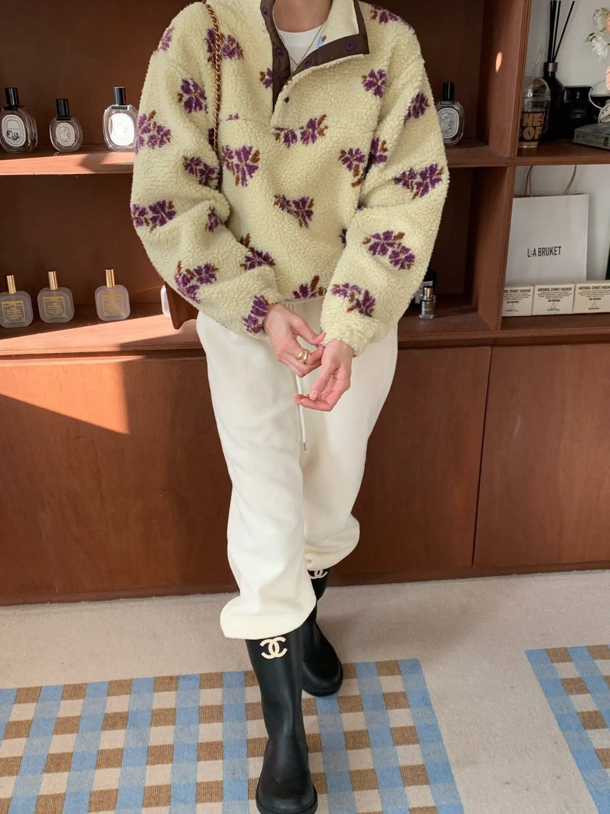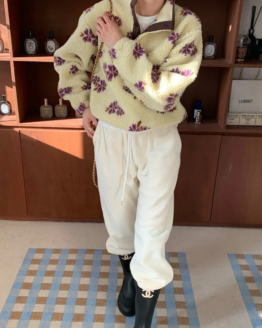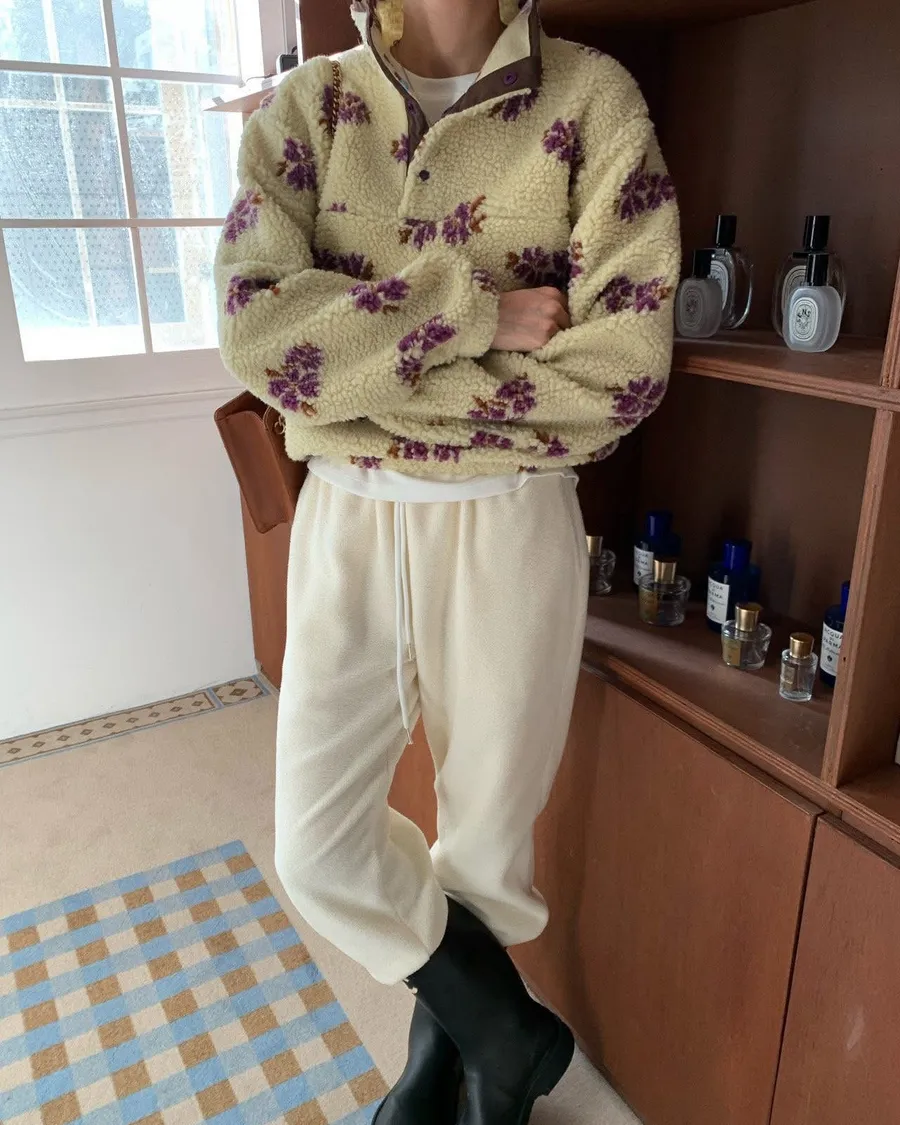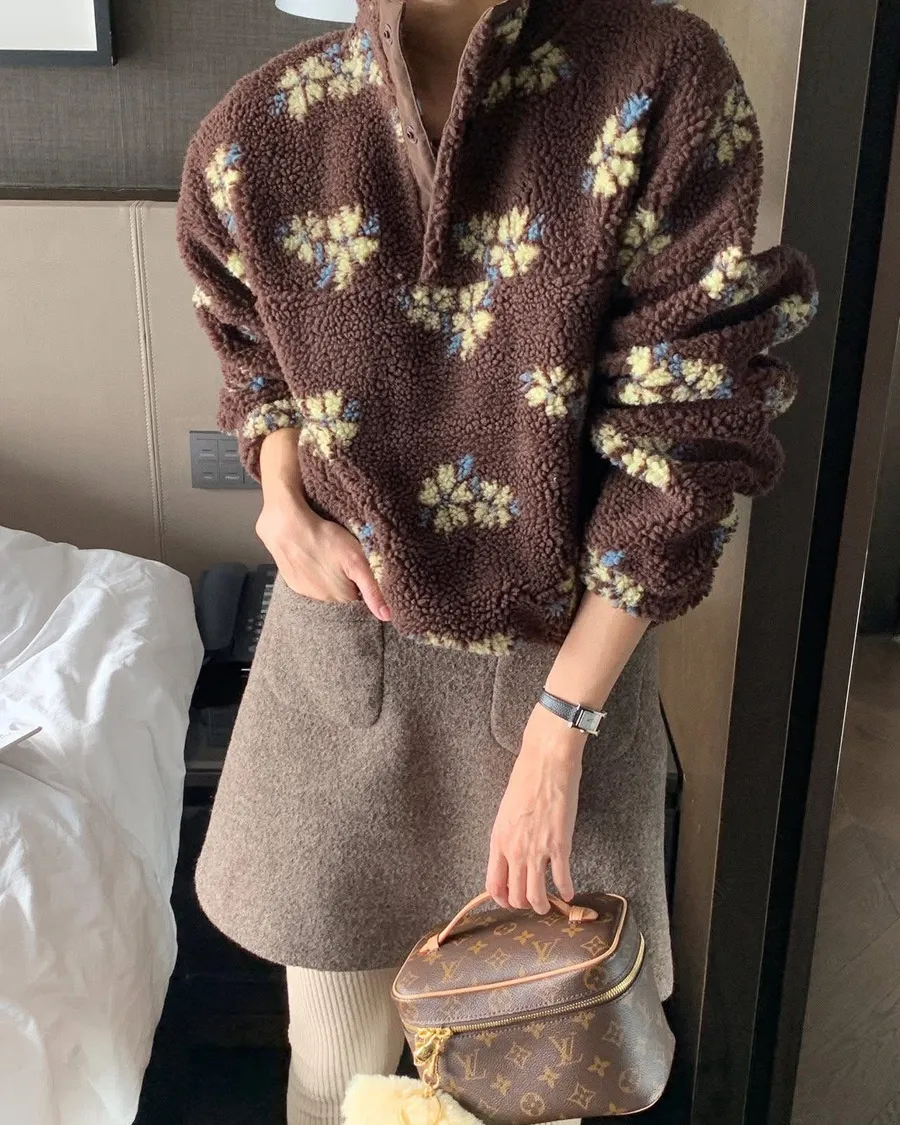 高品質 Fleece 保暖花朵踢 耐看又美麗的花朵Fleece Tee保暖的泰迪毛柔順又膨鬆合身版型、穿著看起來瘦瘦的🤩在冷冷的天氣穿溫暖又時尚尺寸不會很寬鬆 偏合身~所以穿起來不會腫腫的喔合身版型 適合各類下身搭配歐尼配短裙也好好看🤩🤩🤩