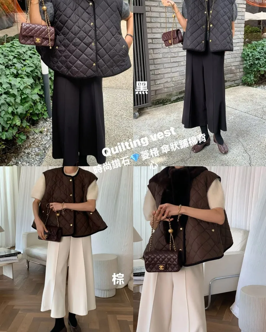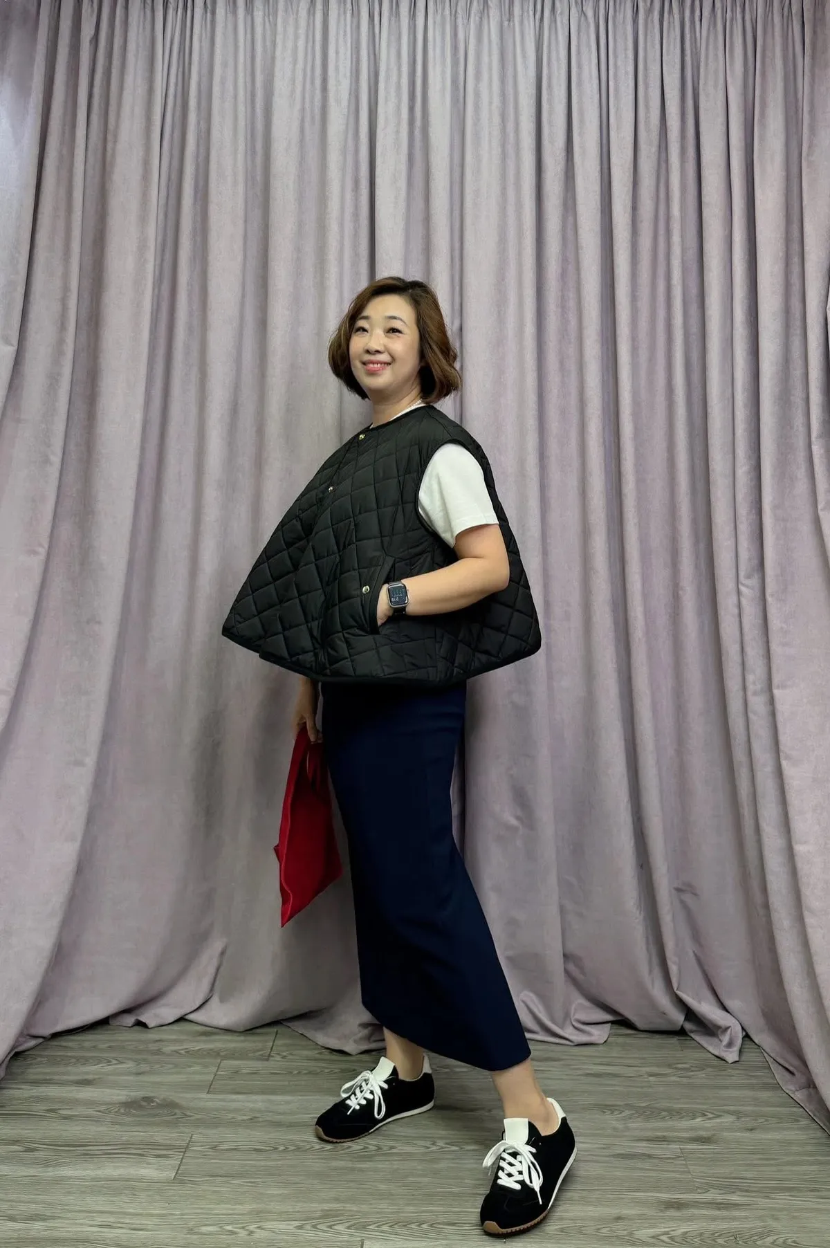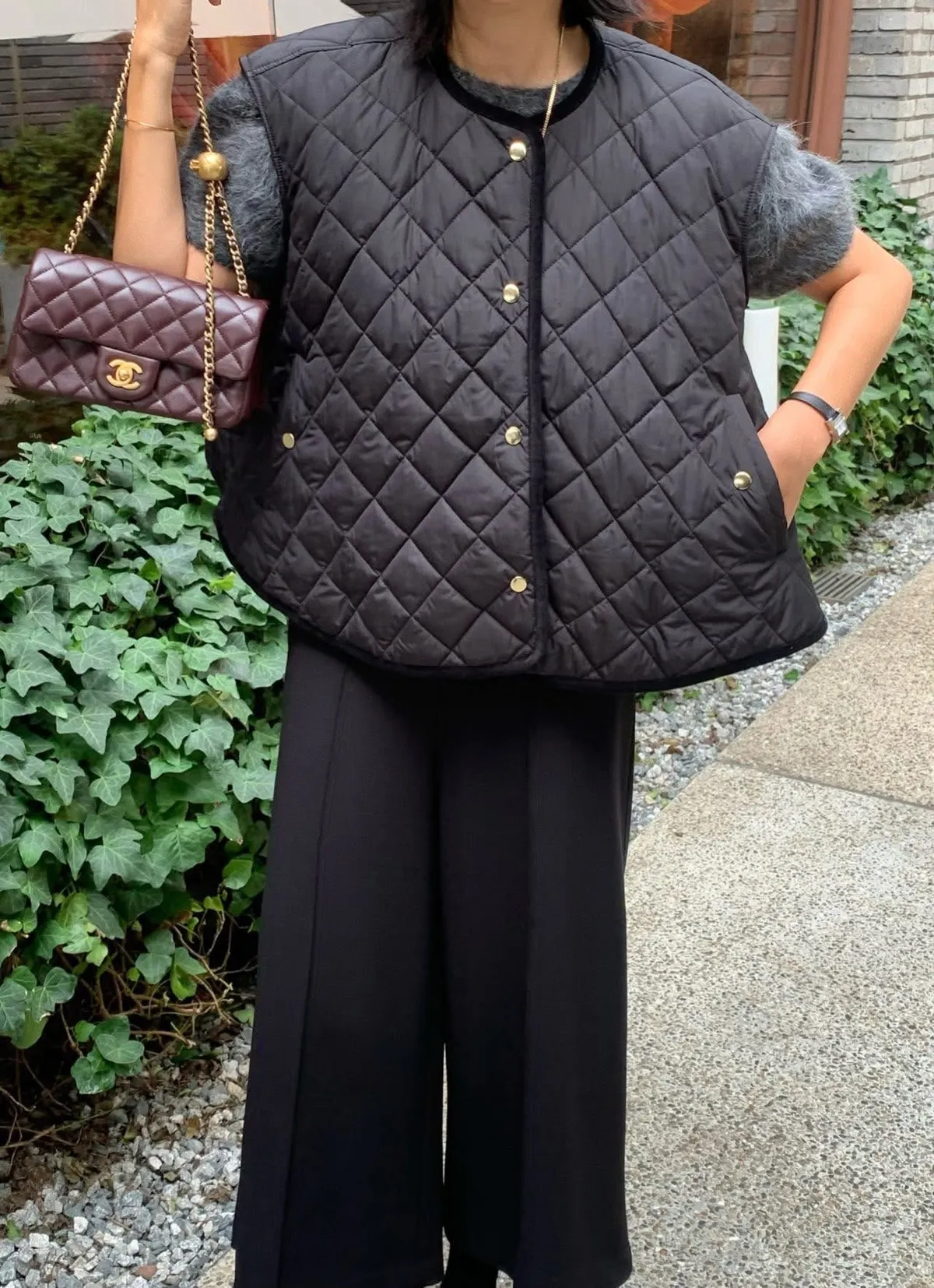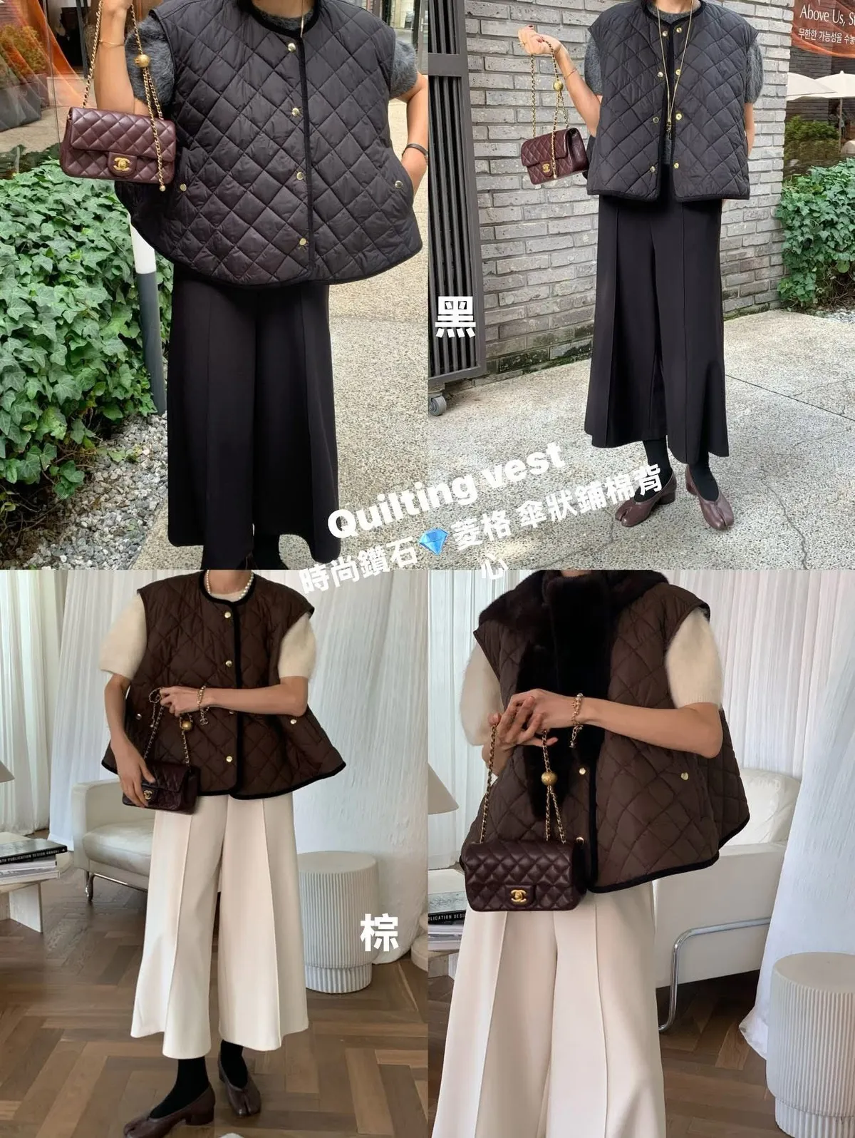造型感極佳的 鑽石💎菱格紋鋪棉背心傘狀設計 Boxy fit 穿出別具一格的時尚品味秋冬最能體現個人時尚風格的單品經典的菱格紋再配上精密的縫線交織在絲滑且具深度的面料上高雅的質感立馬讓妳穿搭上升一個維度不分尺寸限制空媽自留款 ~超喜歡🤩🤩穿上立刻展現個人時尚風格🤩🤩🤩非常簡約大氣的時尚背心夾克