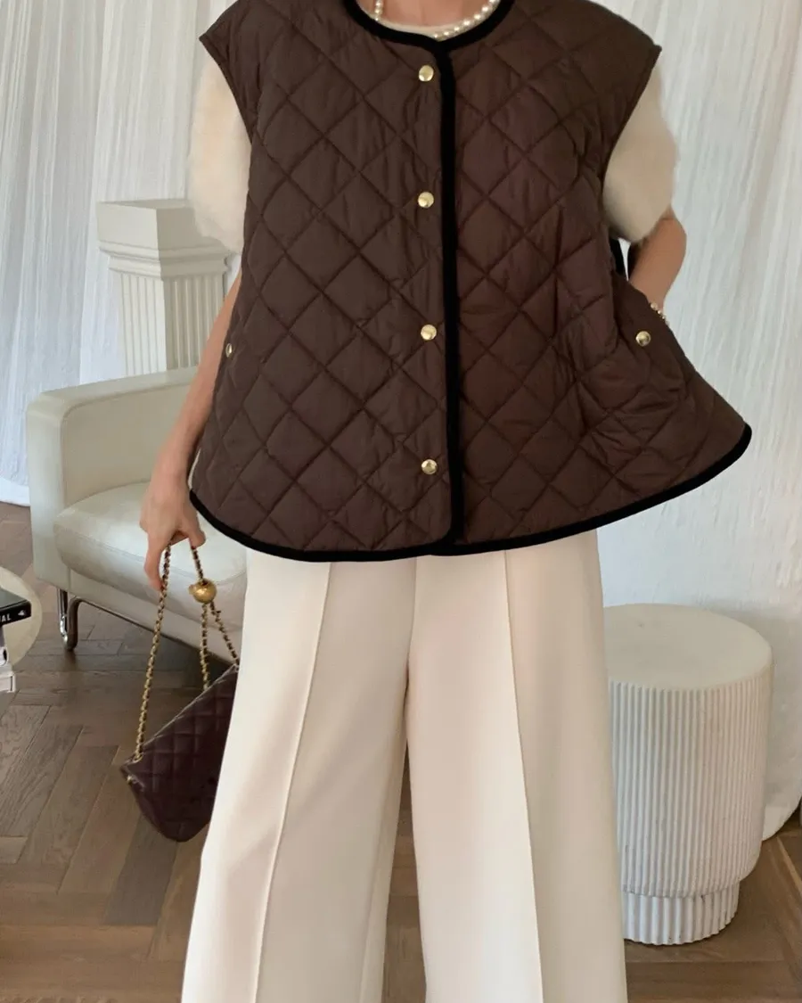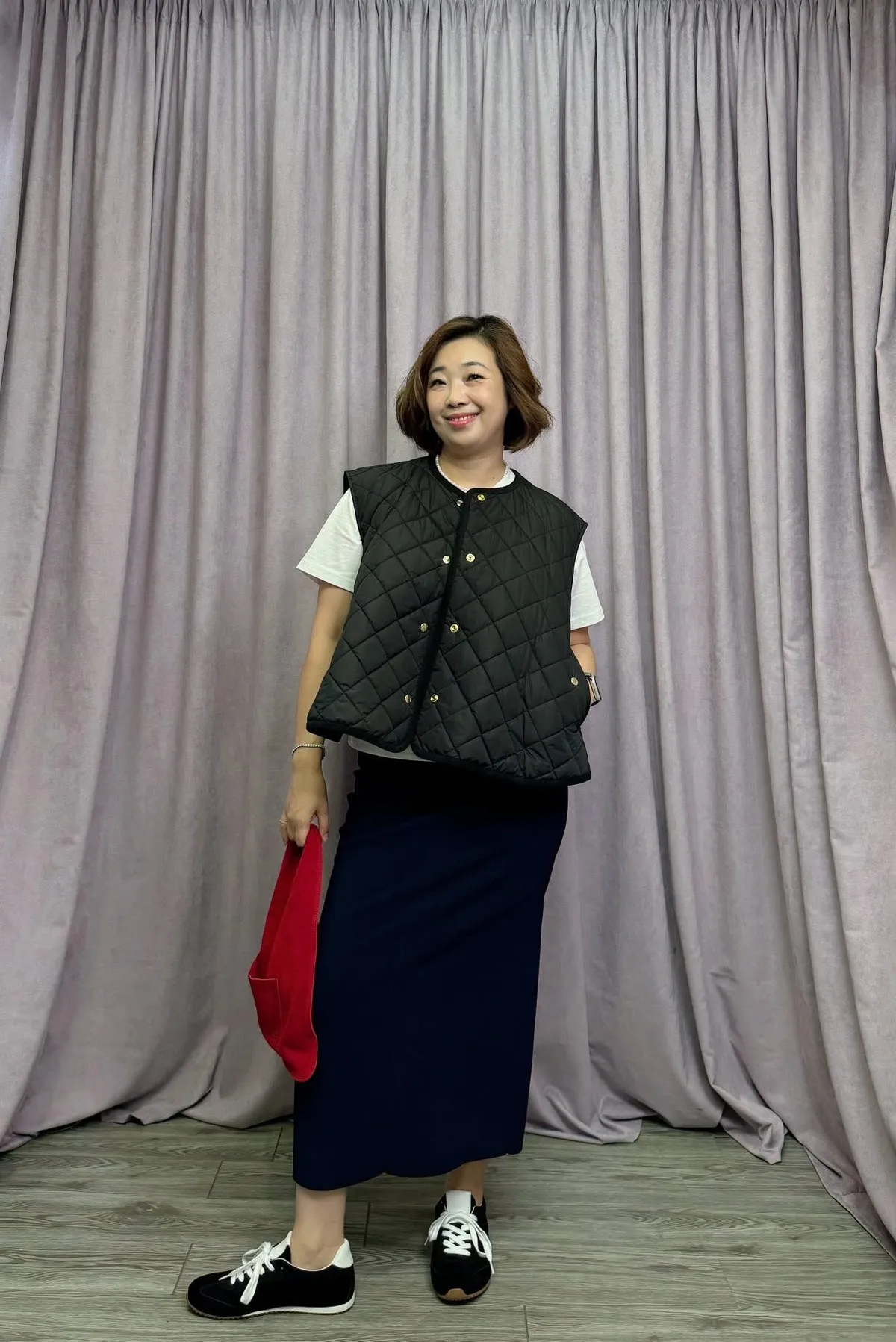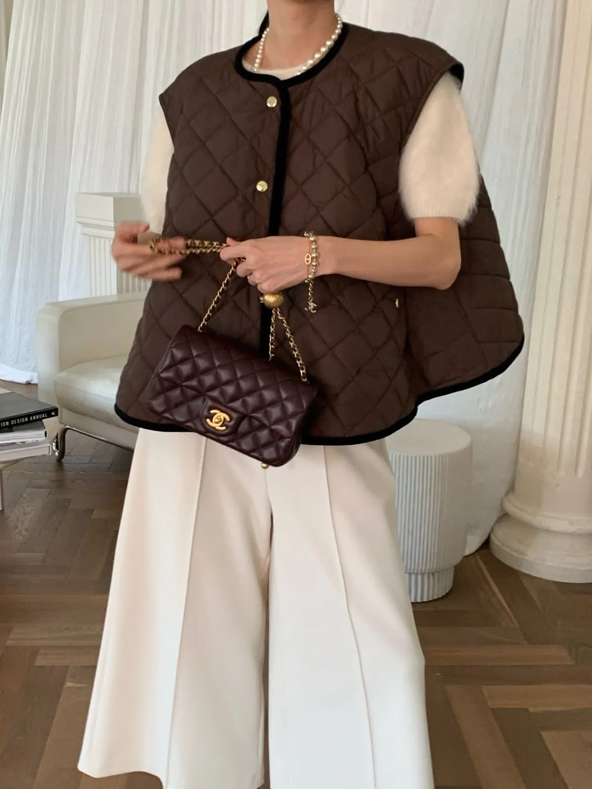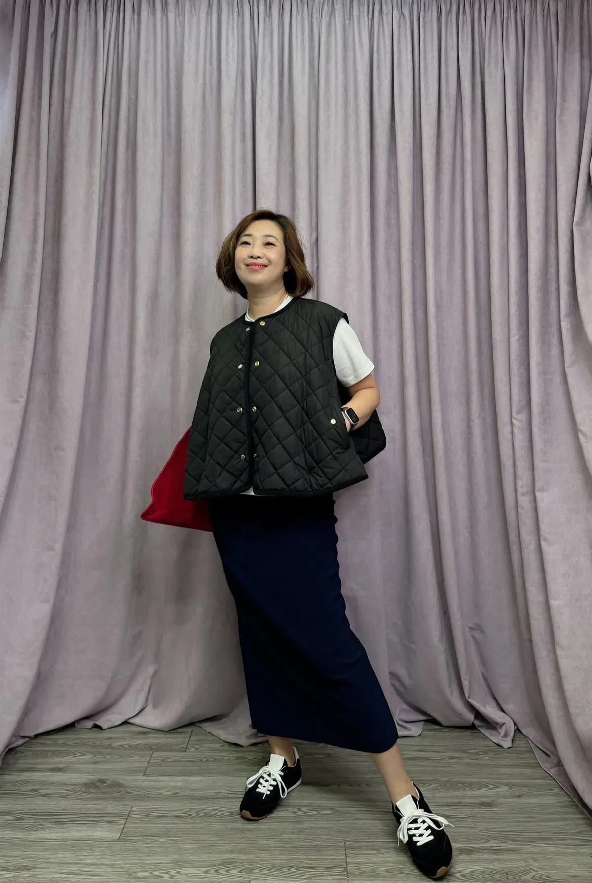 造型感極佳的 鑽石💎菱格紋鋪棉背心傘狀設計 Boxy fit 穿出別具一格的時尚品味秋冬最能體現個人時尚風格的單品經典的菱格紋再配上精密的縫線交織在絲滑且具深度的面料上高雅的質感立馬讓妳穿搭上升一個維度不分尺寸限制空媽自留款 ~超喜歡🤩🤩穿上立刻展現個人時尚風格🤩🤩🤩非常簡約大氣的時尚背心夾克